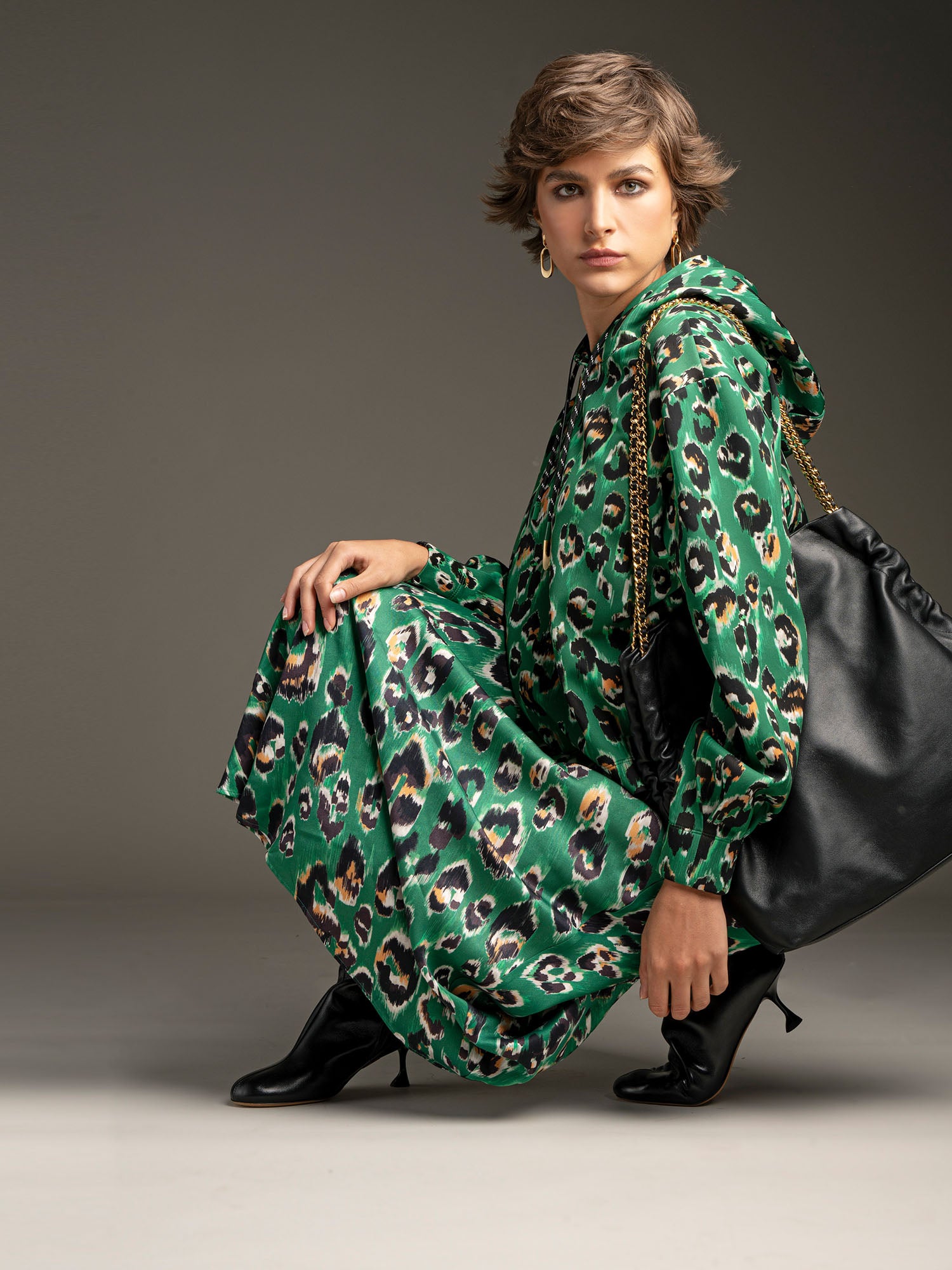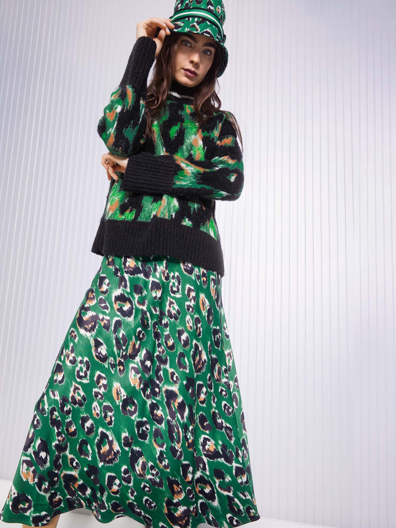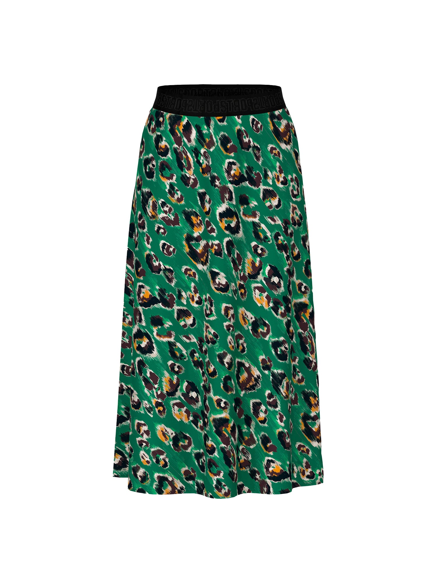 This midi skirt sets trendy accents with its all-over Greo print. It features a silky, shiny material mix from the Rethink Together sustainability label, offering a flowing silhouette. The skirt has a comfortable slip-on design with a contrasting Marc Cain elastic waistband, providing an effortlessly chic, flared look.