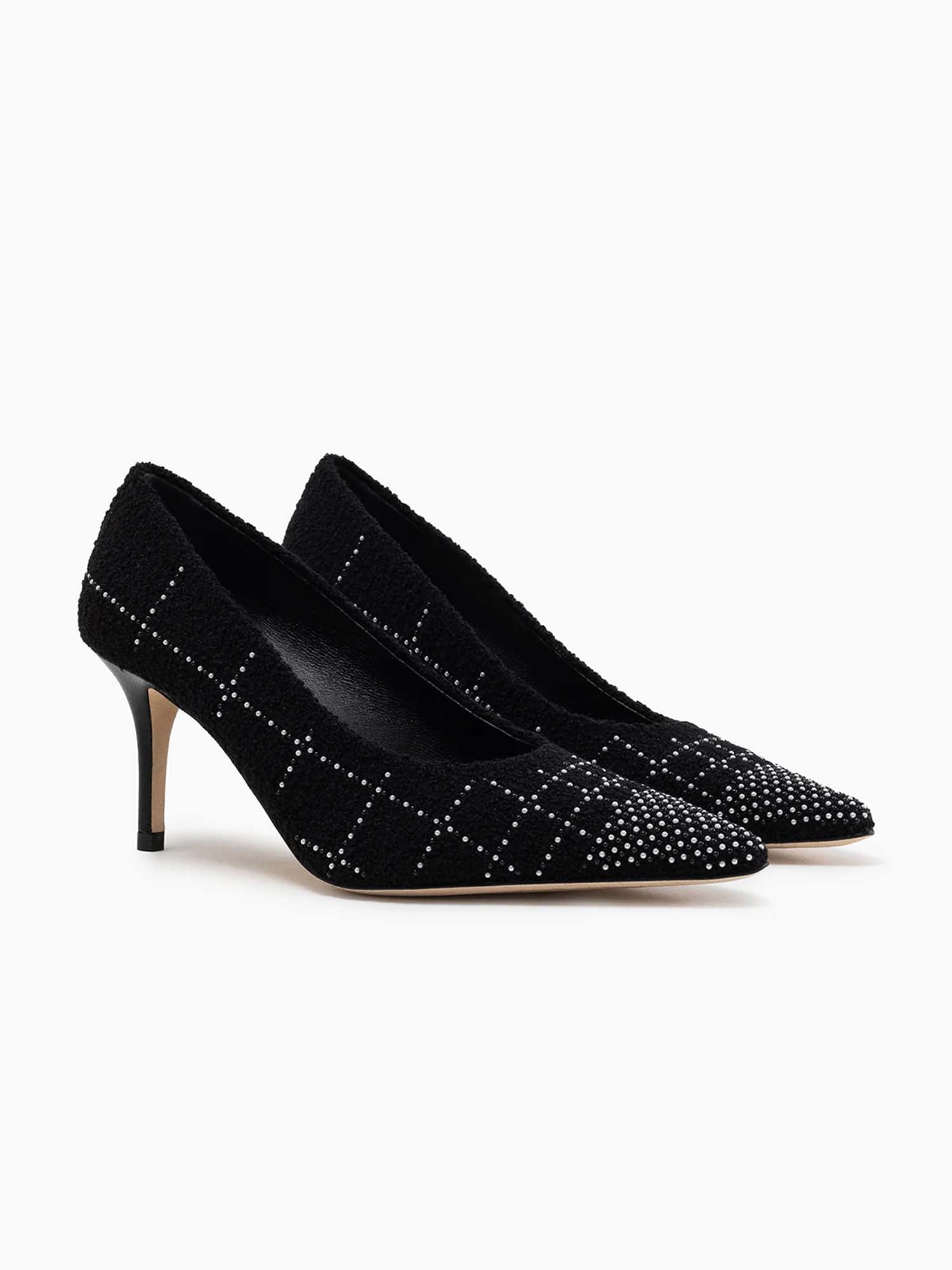 The Perla 75 Pump is a statement of timeless glamour. Made from textured tweed and finished with pearl embellishments, this classic pump is set on a sleek 75mm heel, offering height without compromising elegance.