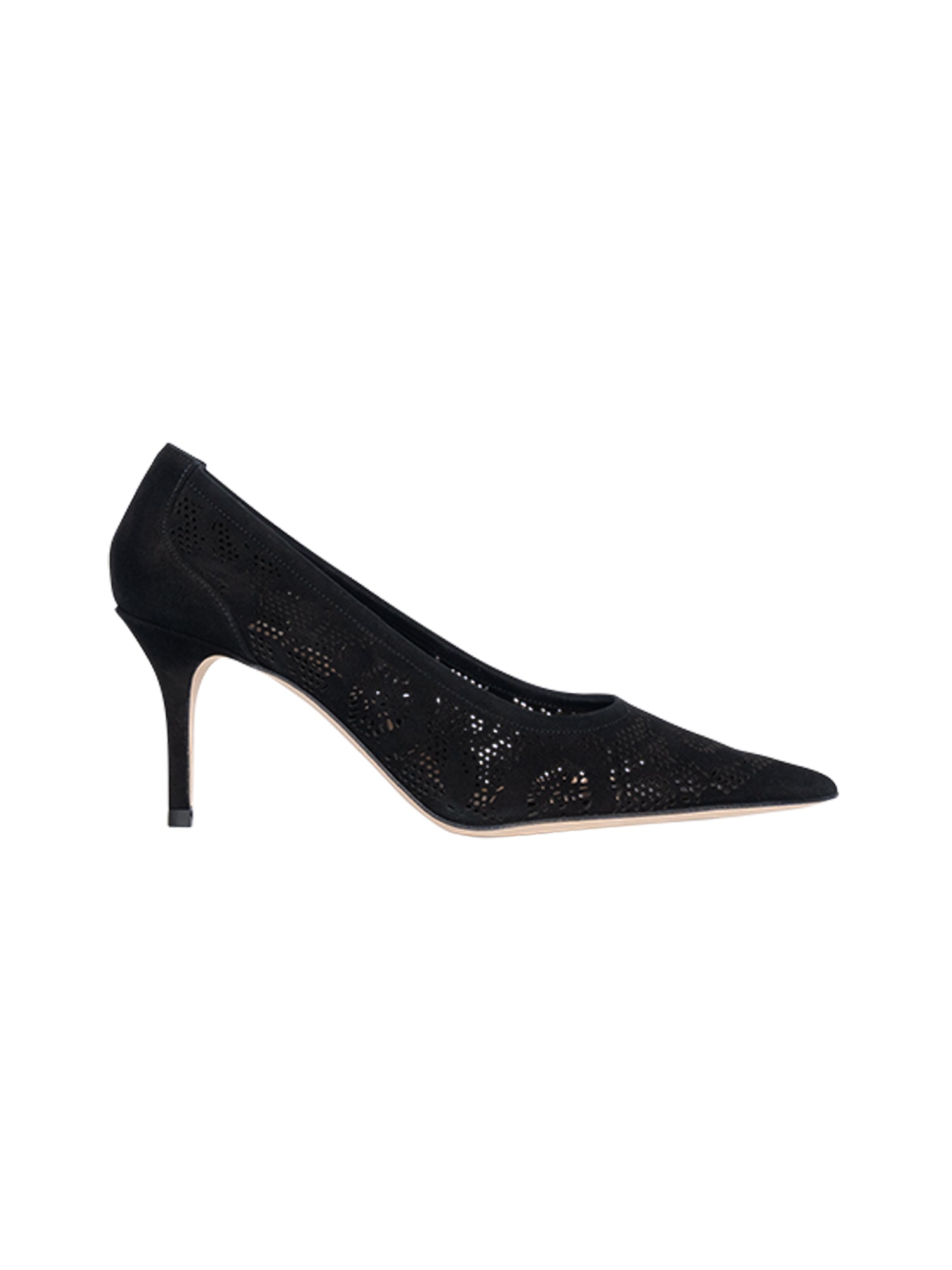 The Thalia 75 Pump Suede pump highlights Italian craftsmanship with a refined suede lace detailing and a leather sole.