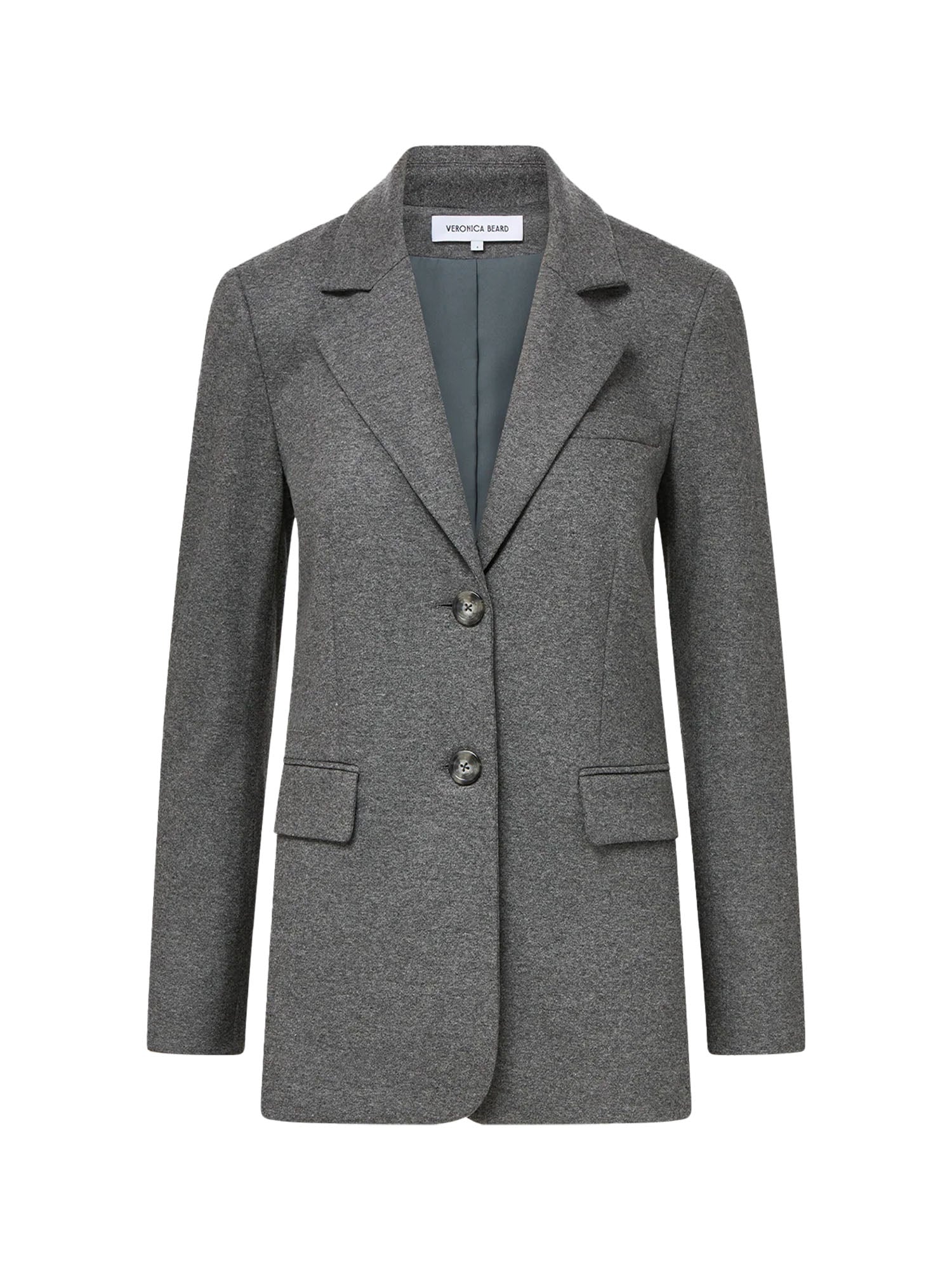 Polished and sleek. Expertly tailored from an Italian stretch-wool jersey, the Ryanne is an elongated blazer that’s fitted through the waist for flattering definition, finished with a curved front hem for a clean, modern feel. A notched lapel, front-flap pockets, and tortoise buttons complete the look. Style this heather grey jacket with the coordinating Marbeau pant for a full tailored look.