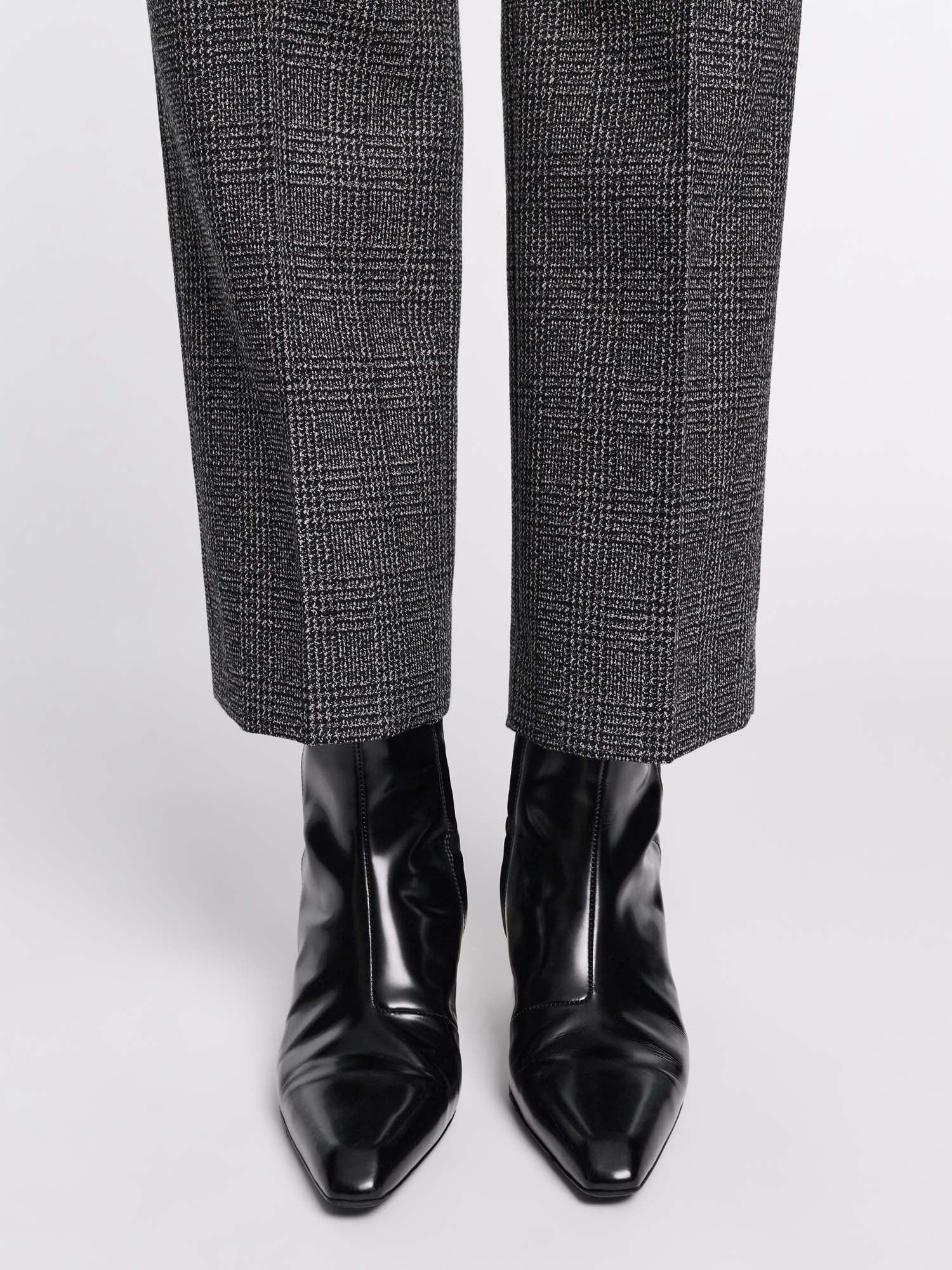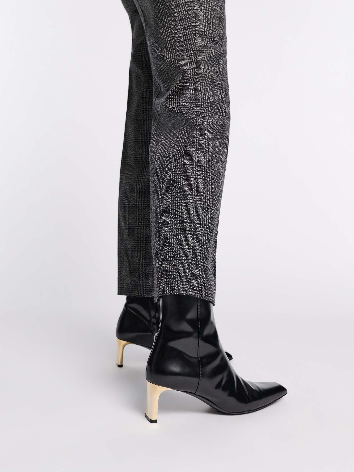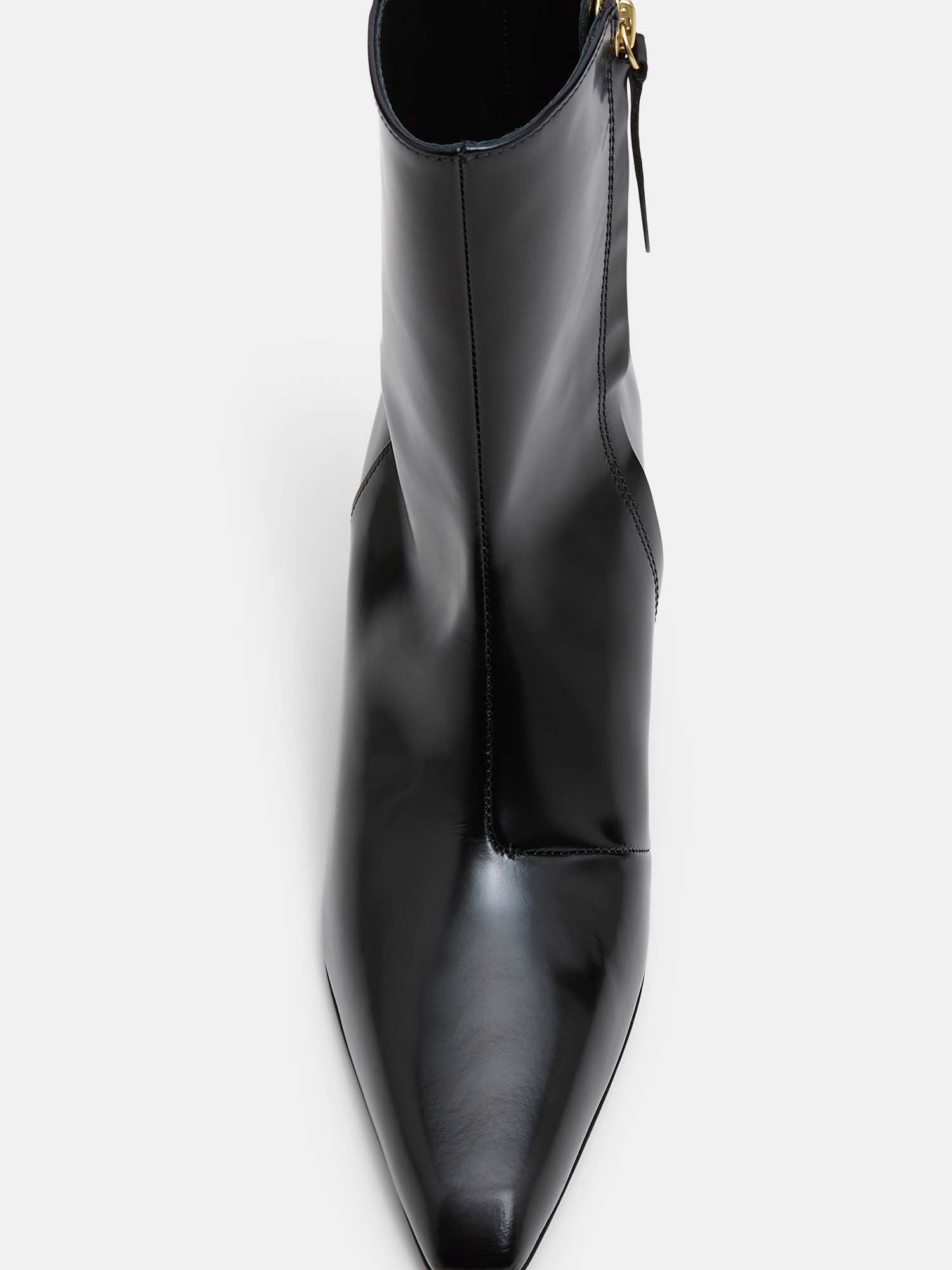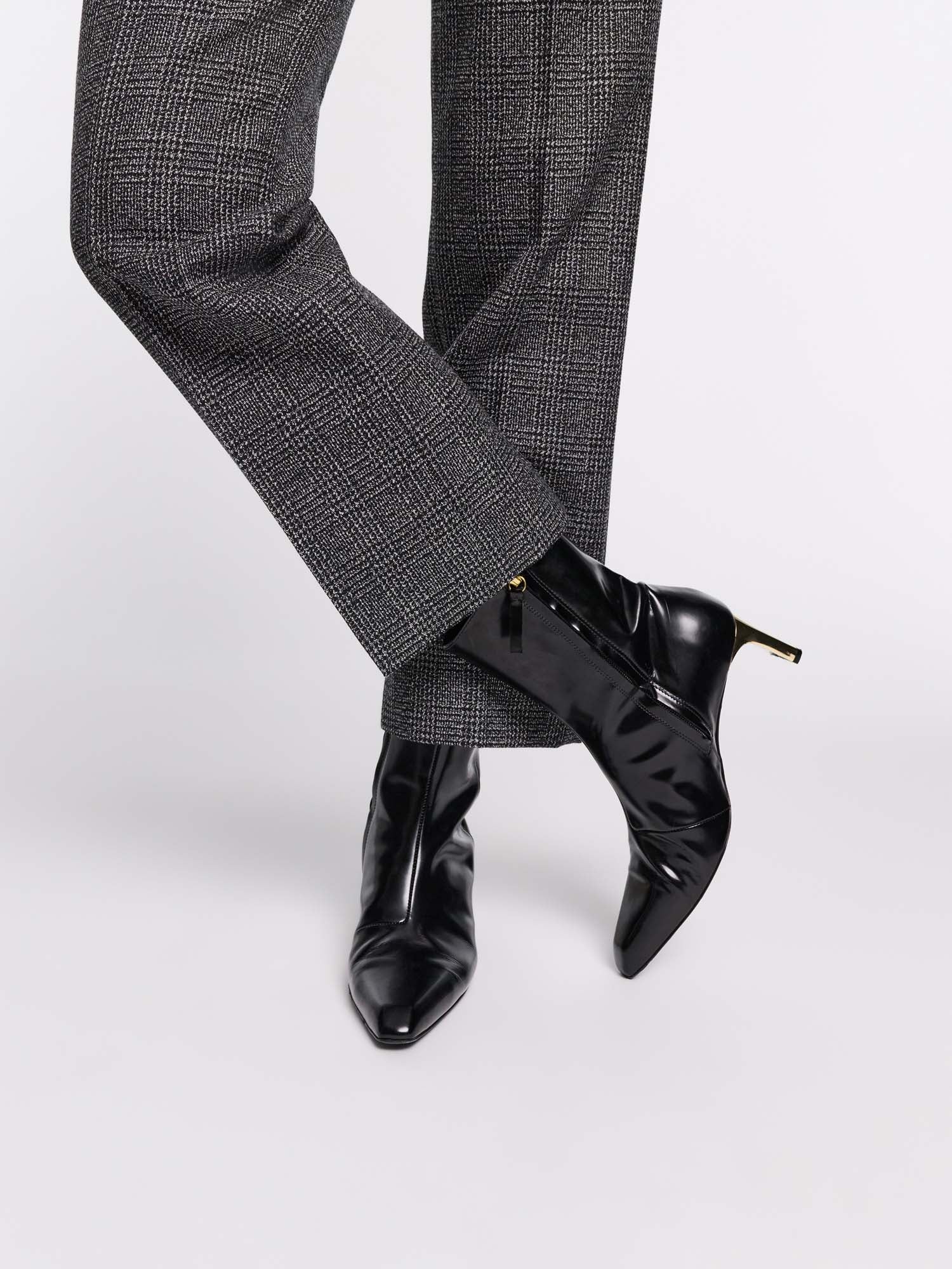 Dress it up, dress it down: Shoes set the styling mood. The mid-length boots pumps are crafted in mid-shine calfskin and have a chiseled toe. The set-back heels are golden and have a slim, rectangular shape.