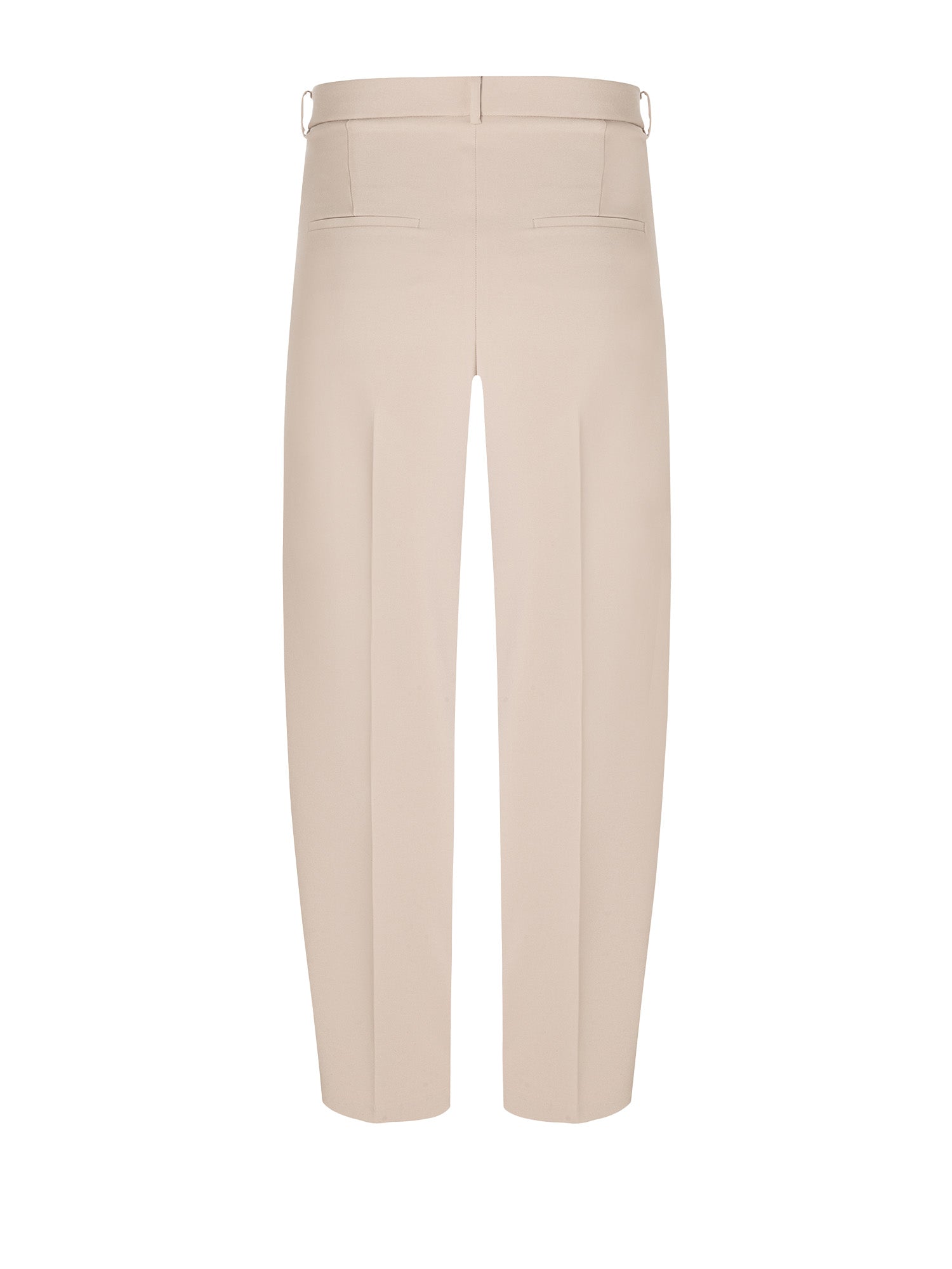 The EMILIE model combines modern comfort with stylish sophistication. These trousers impress with their soft feel and flowing drape. The cropped length and beige colour scheme give them a versatile look. The double pleat at the front emphasizes the relaxed width of the O-shaped silhouette, while side pockets underscore the casual look.