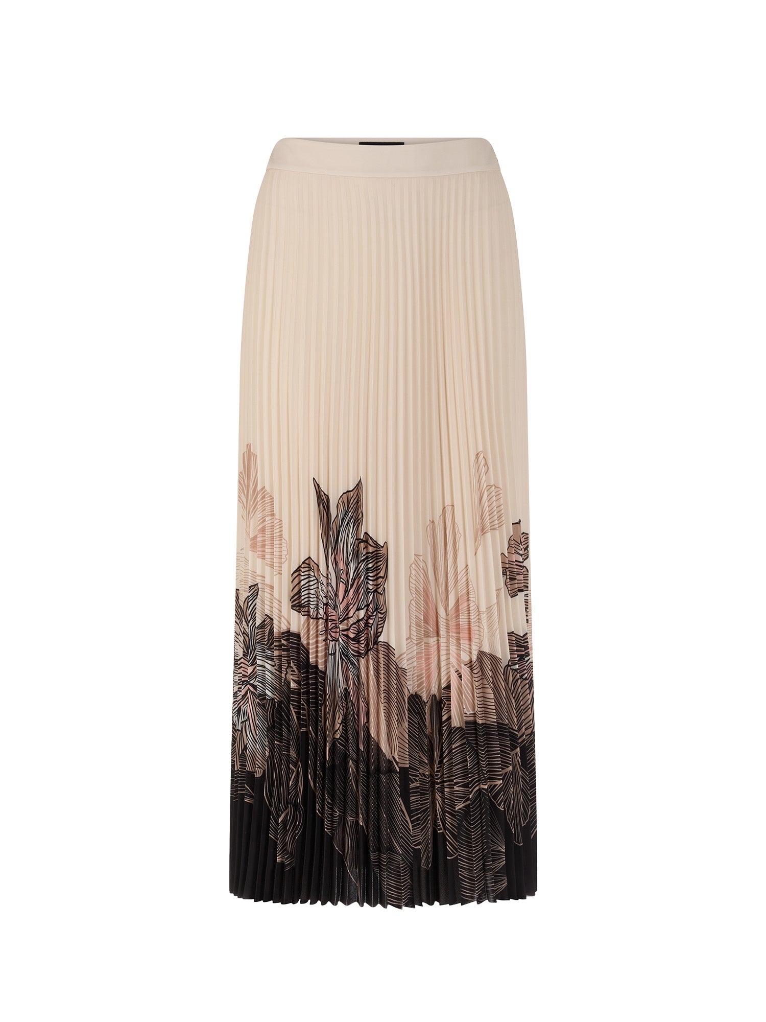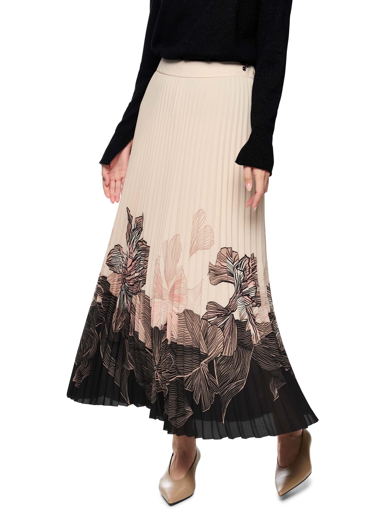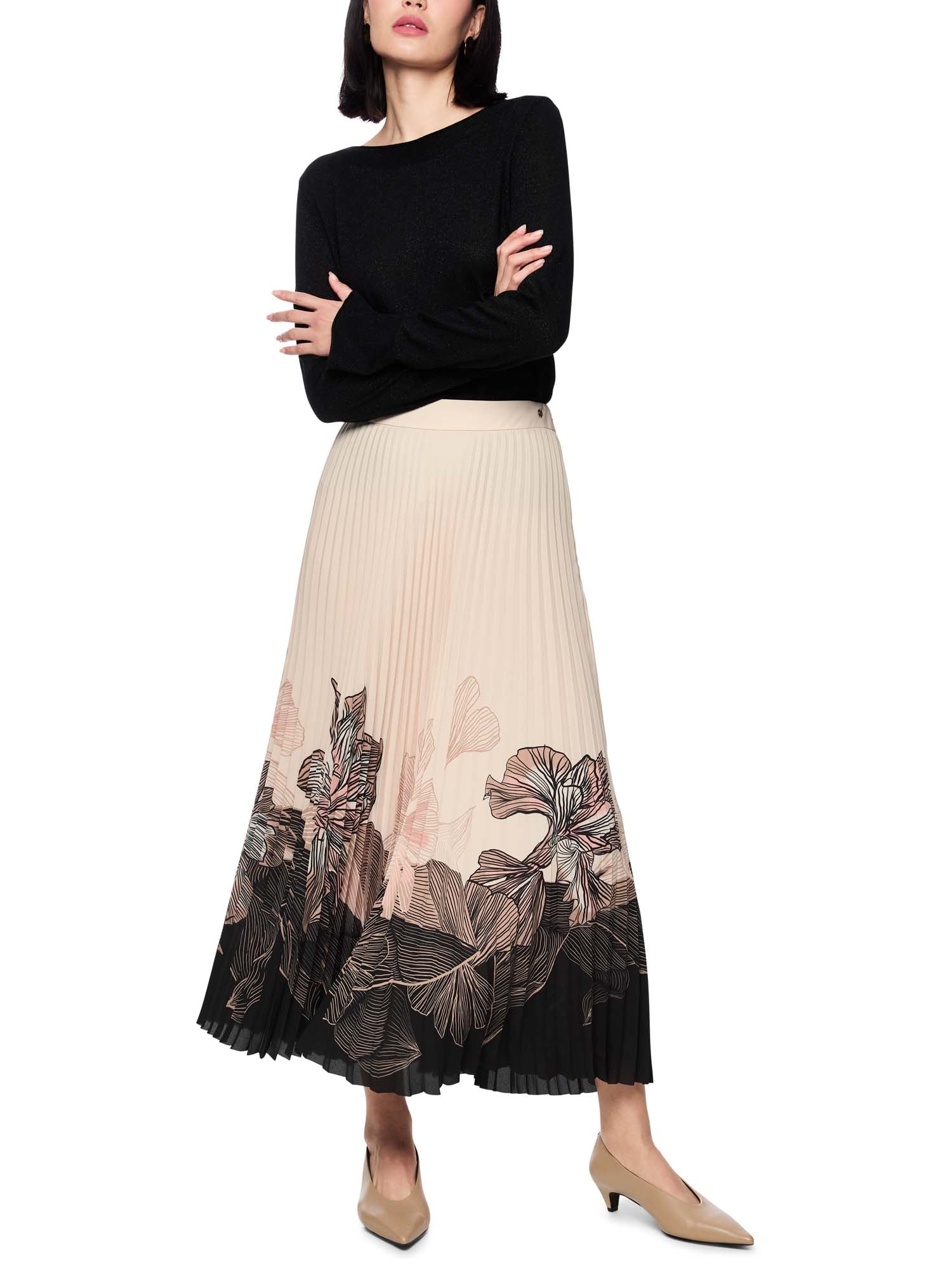 ‘Rethink Together’ pleated midi skirt. The midi-length skirt captivates with its fine pleats and delicate floral print at the hem. It fastens at the side with a discreet zip. The integrated underskirt ensures optimum comfort and a beautiful drape. Ideal for feminine, stylish looks for everyday wear and the office. This skirt is from the ‘Rethink Together’ sustainability label.