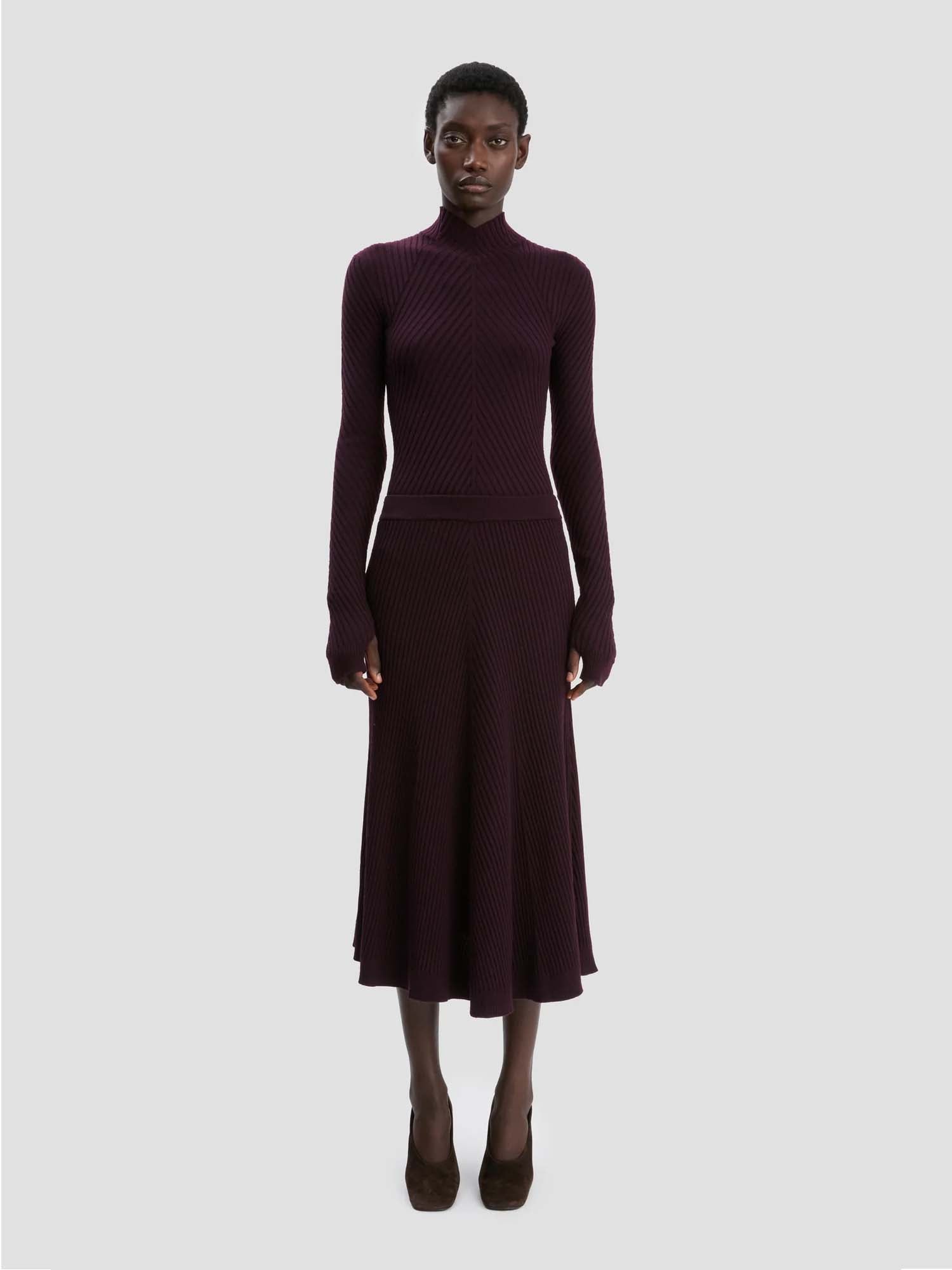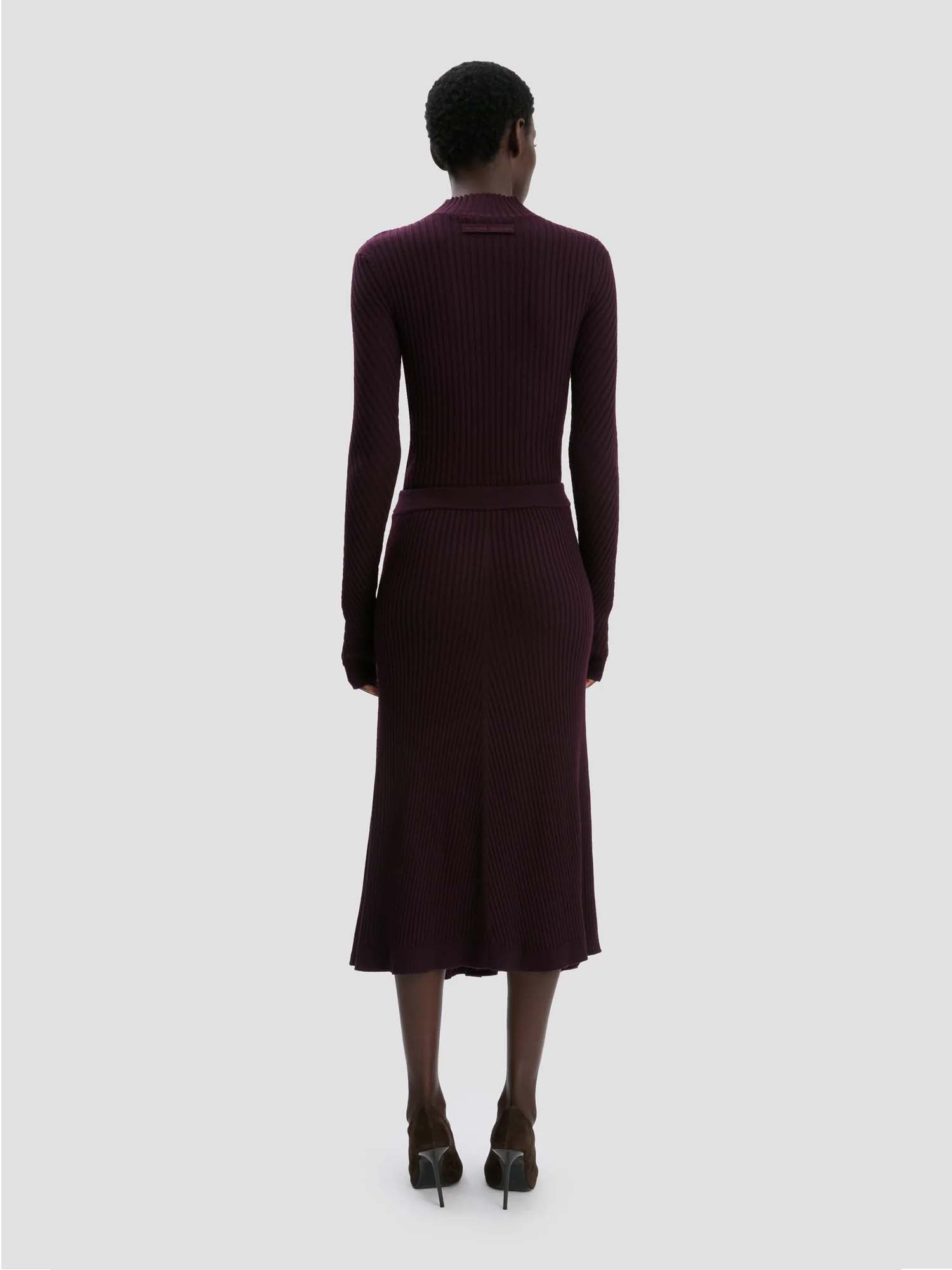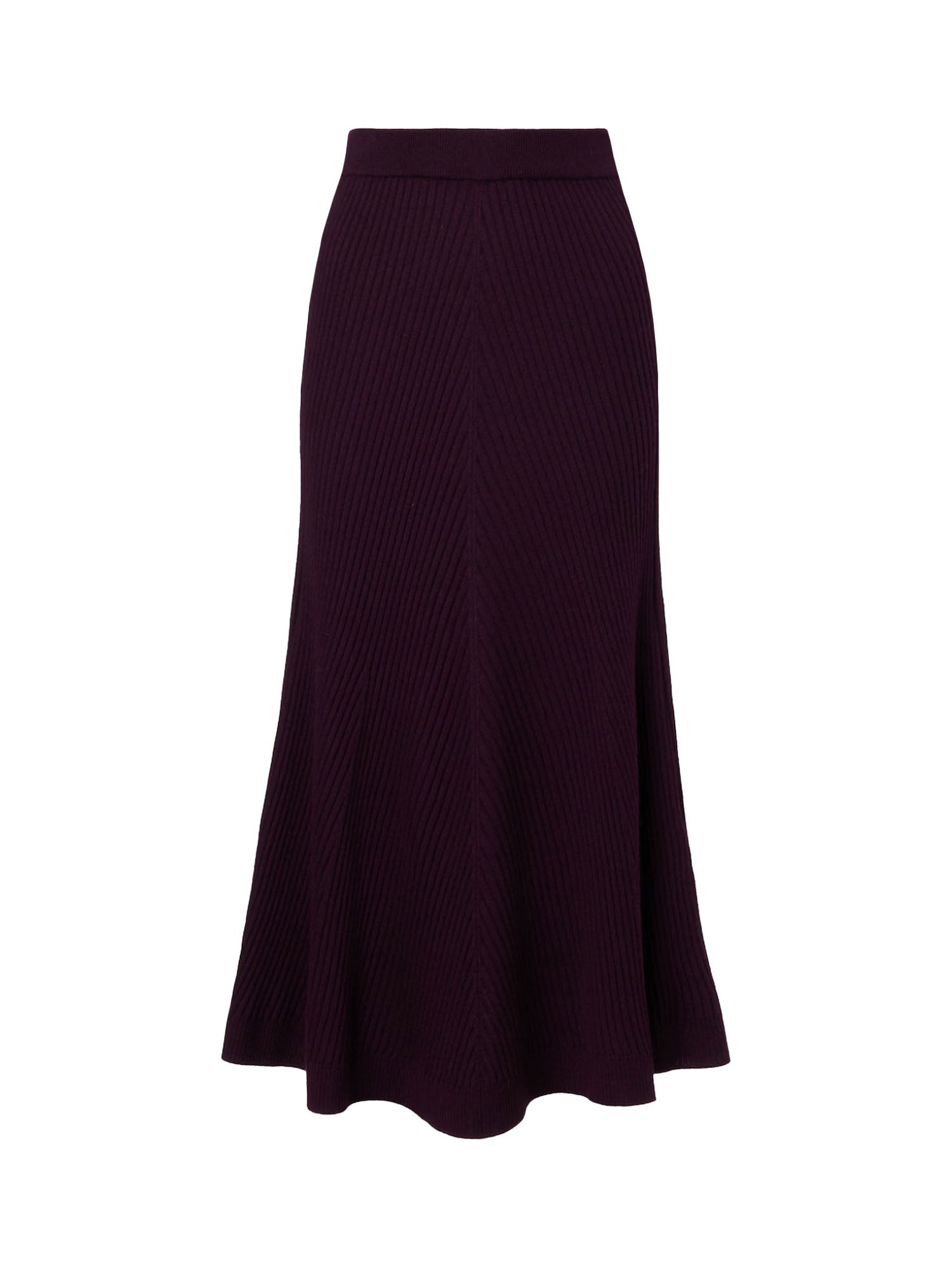 A polished piece of everyday wear, the Ribbed Midi Skirt in Merlot exudes the house’s signature unstudied elegance. Crafted from soft merino wool in a fine gauge ribbed finish, it has an elasticated waist for comfort and ease and a distinctive curved hemline, dipping longer at the front for a directional finishing touch.