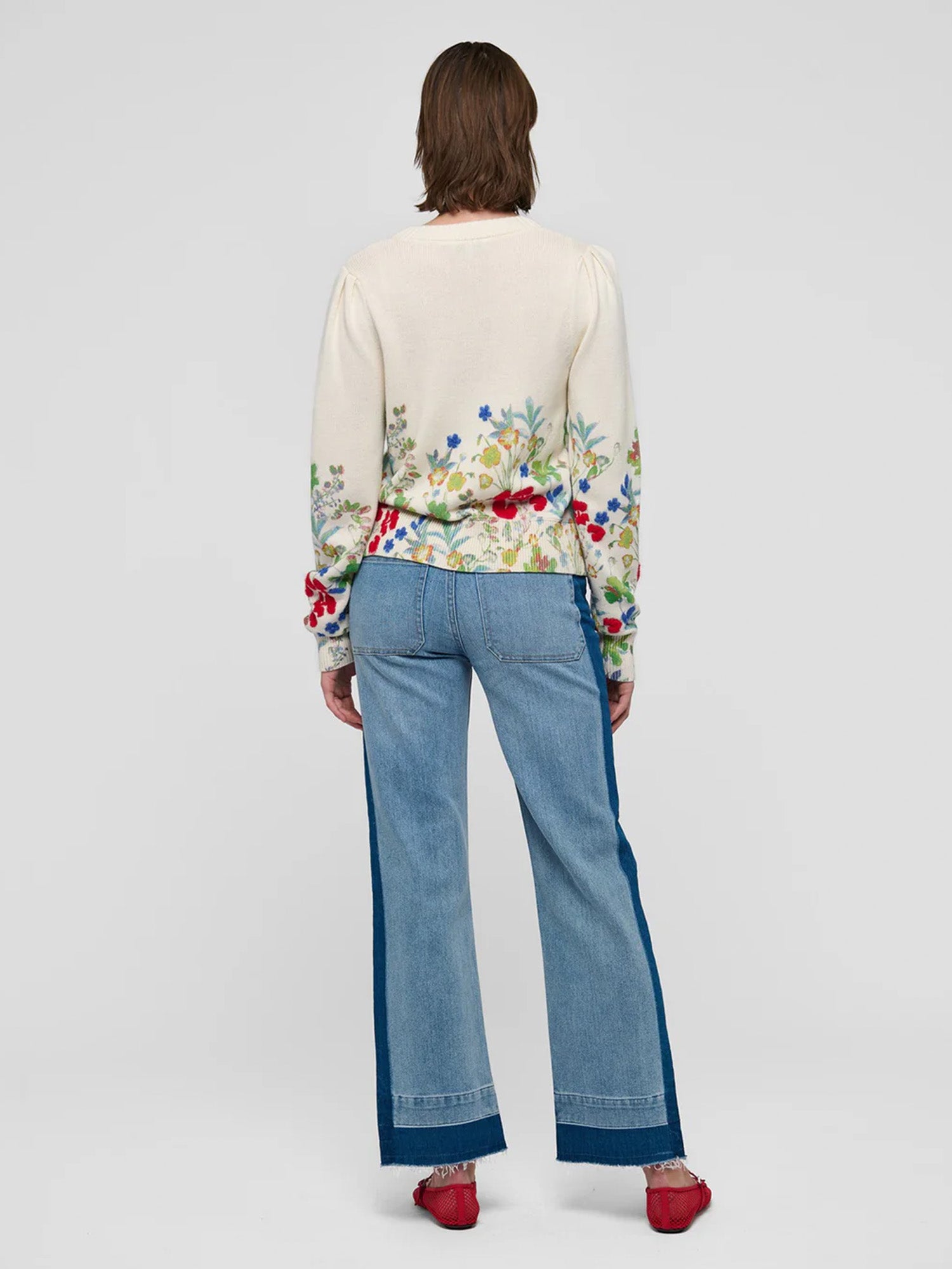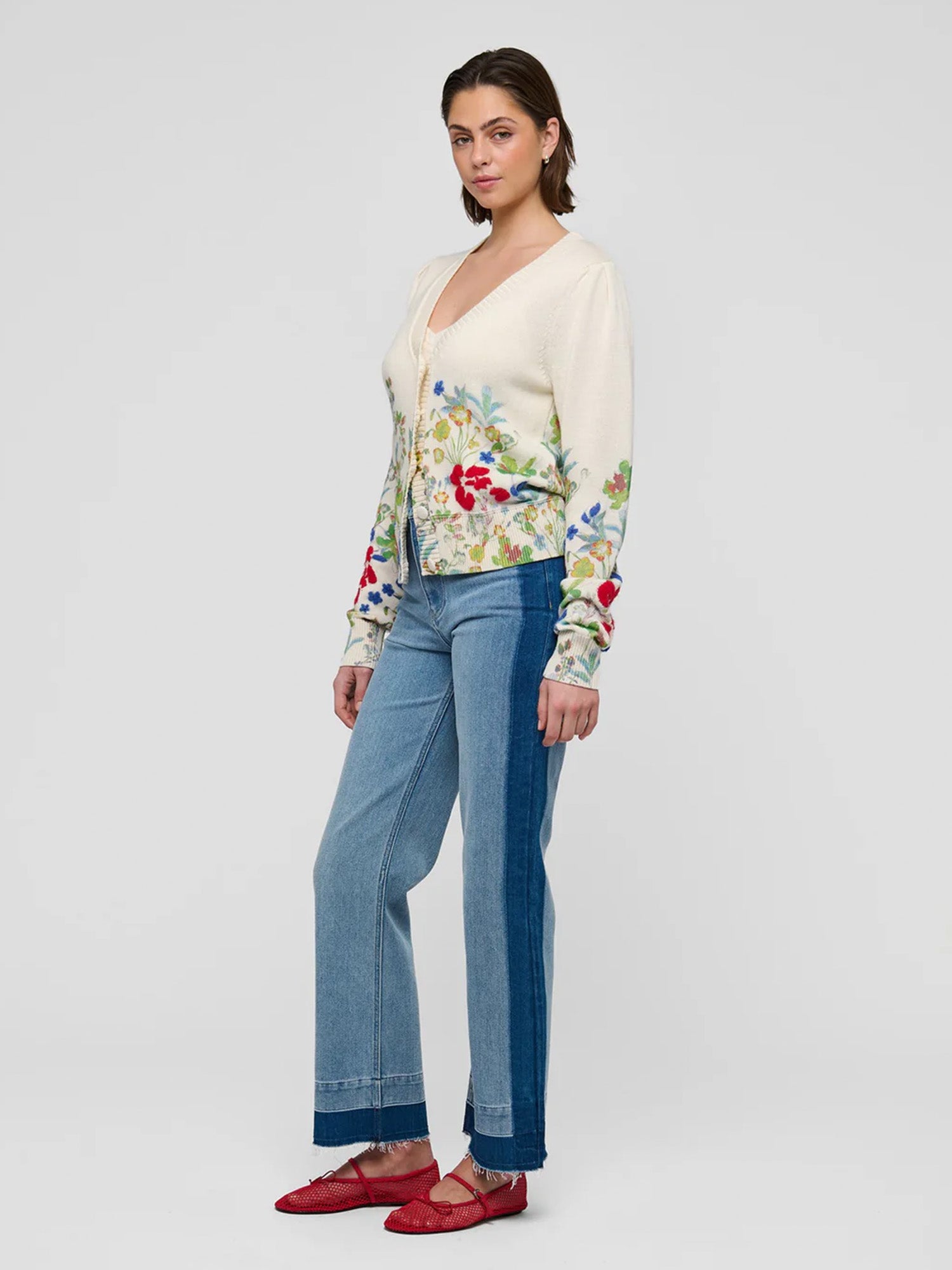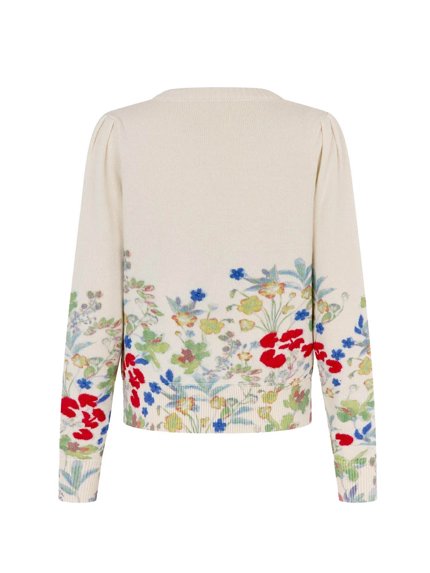 Painterly spring flowers blossom along the border of this printed cotton blend cardigan. Feminine as well as cosy, it is perfect for a chilly day worn with jeans or more dressed up in the evening with a skirt.