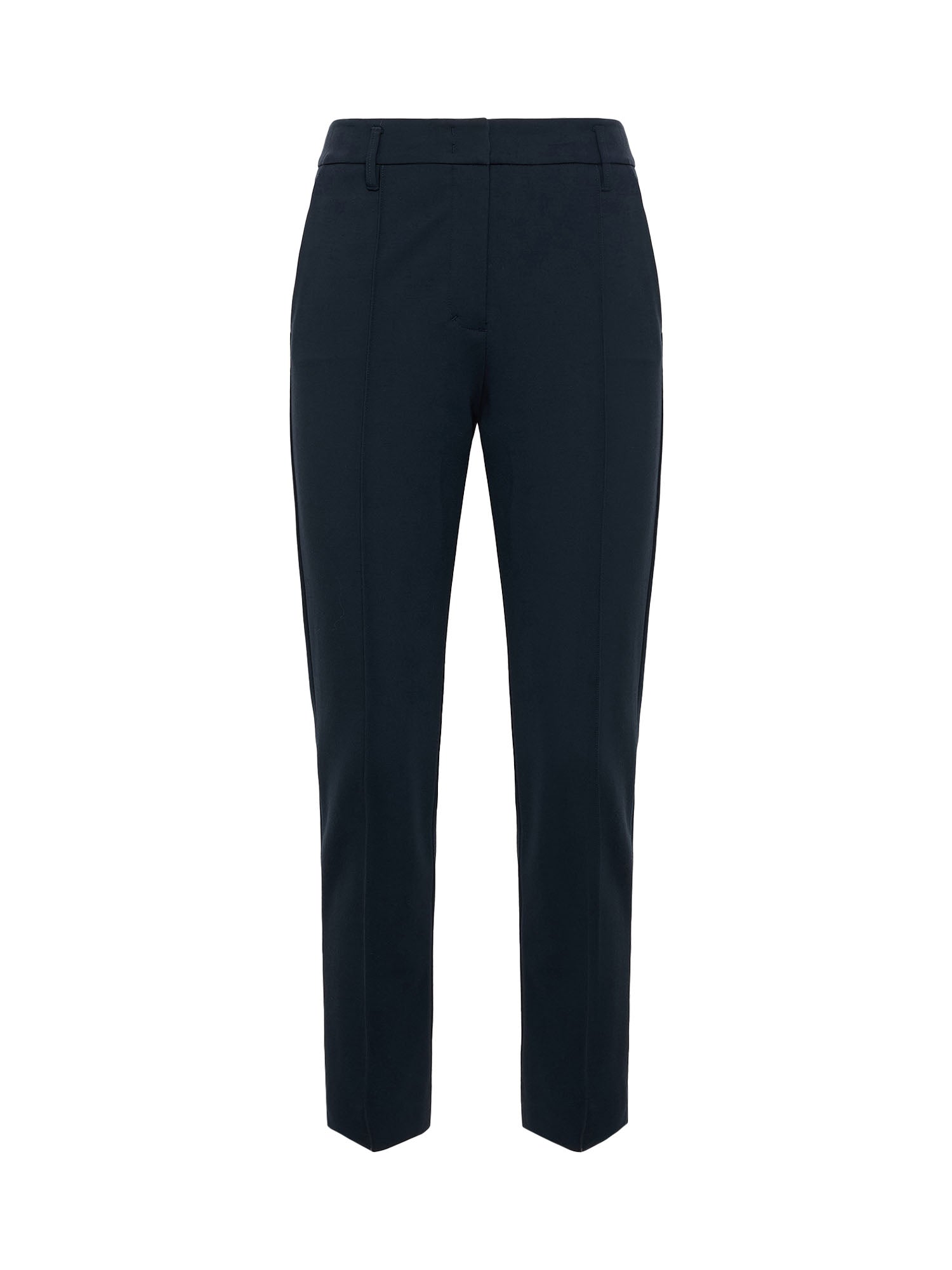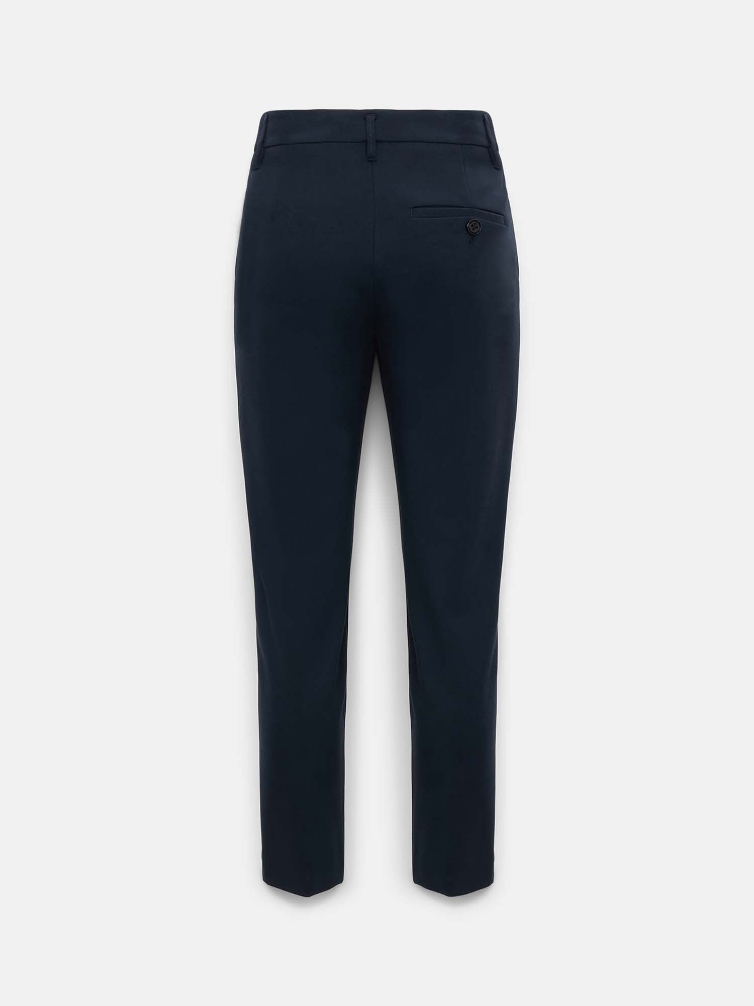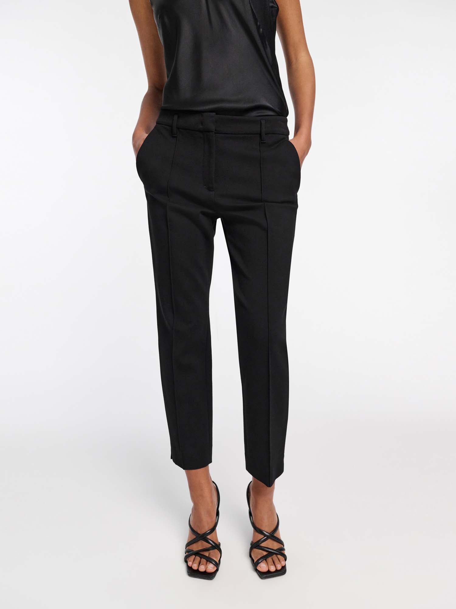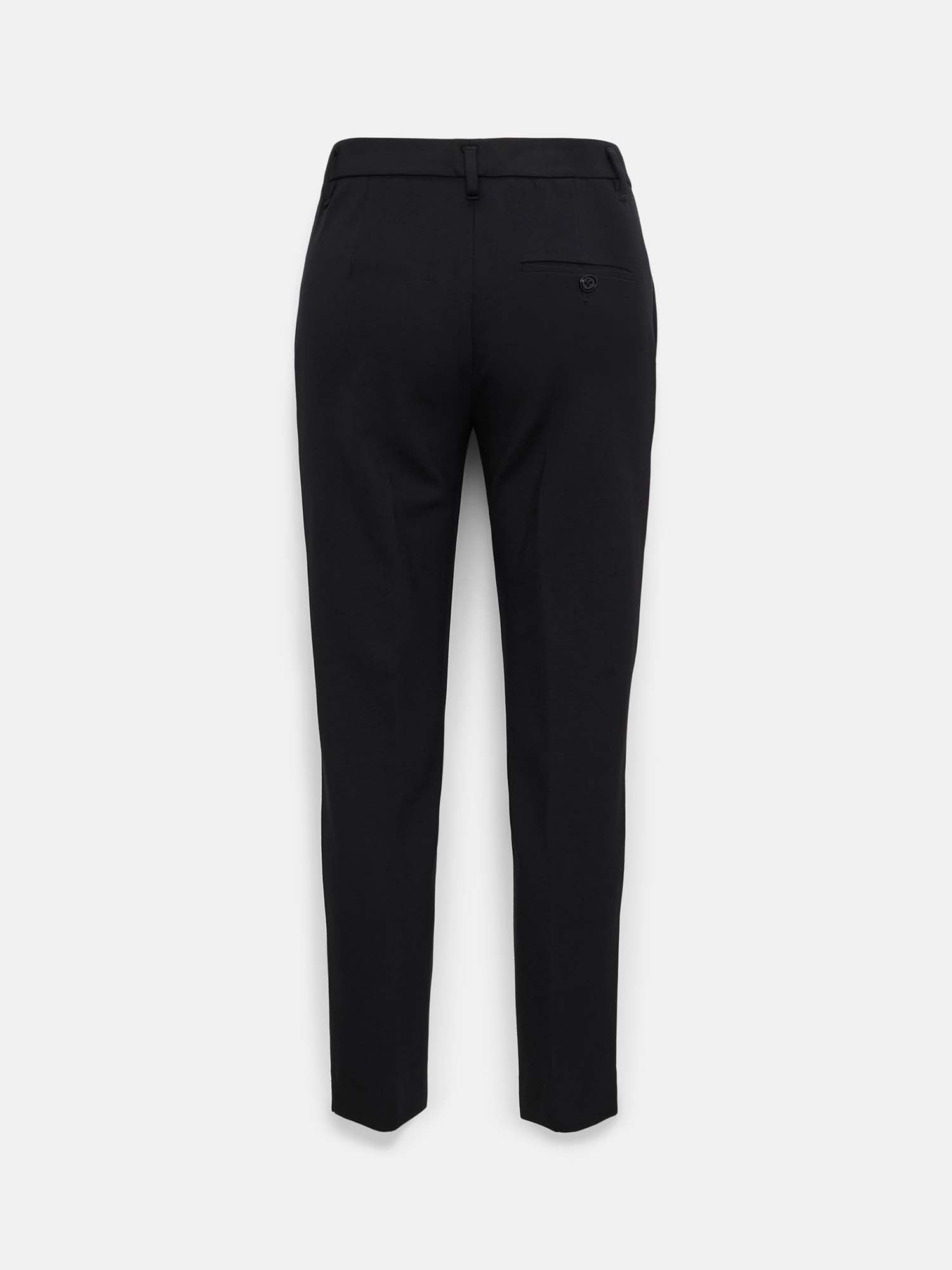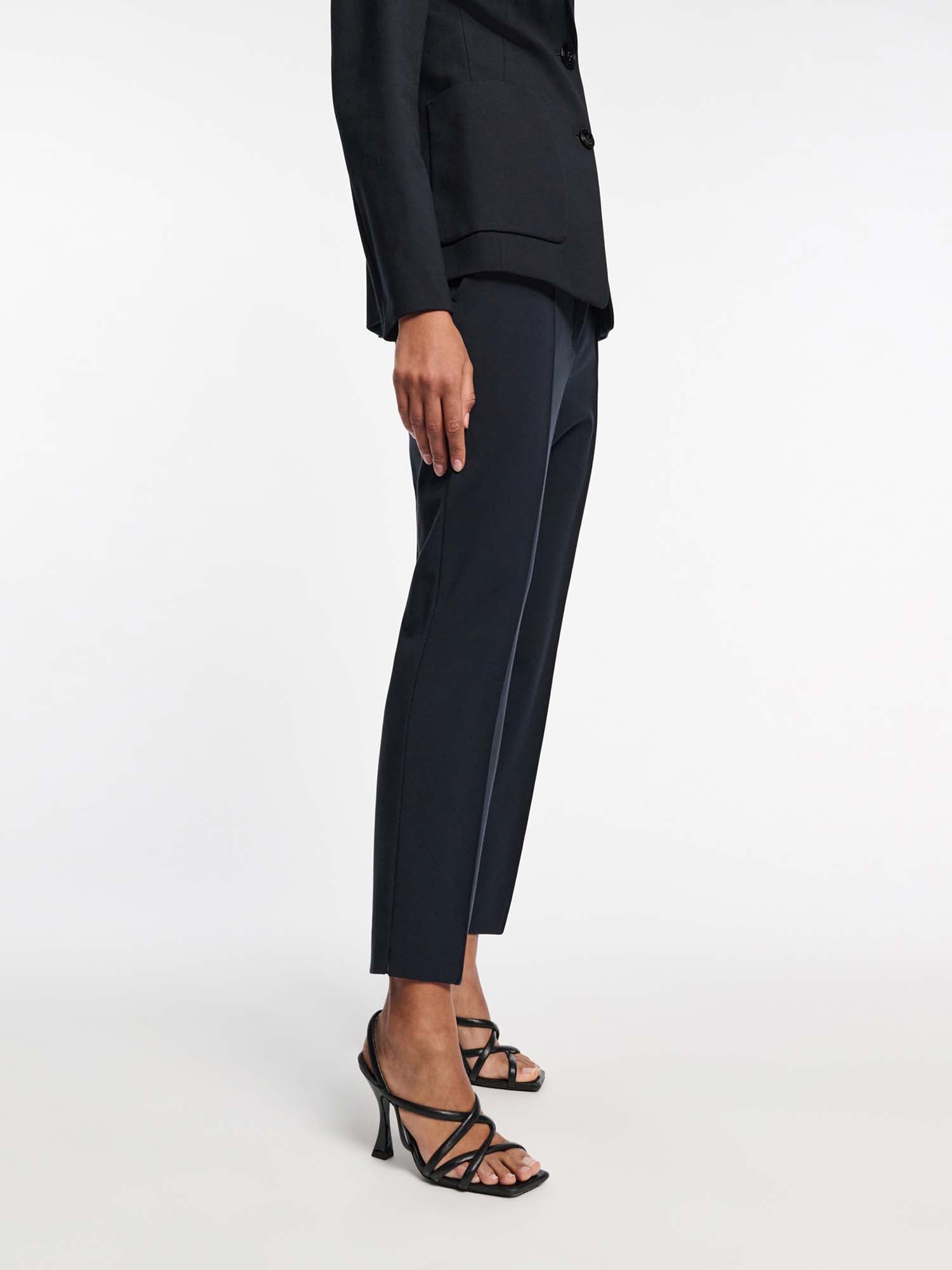 The cigarette pants are crafted in Punto Milano and have a cropped length. The trousers have a hidden top closure and topstitched pressed front pleats. The pants can be worn as a suit with a matching Punto Milano blazer.