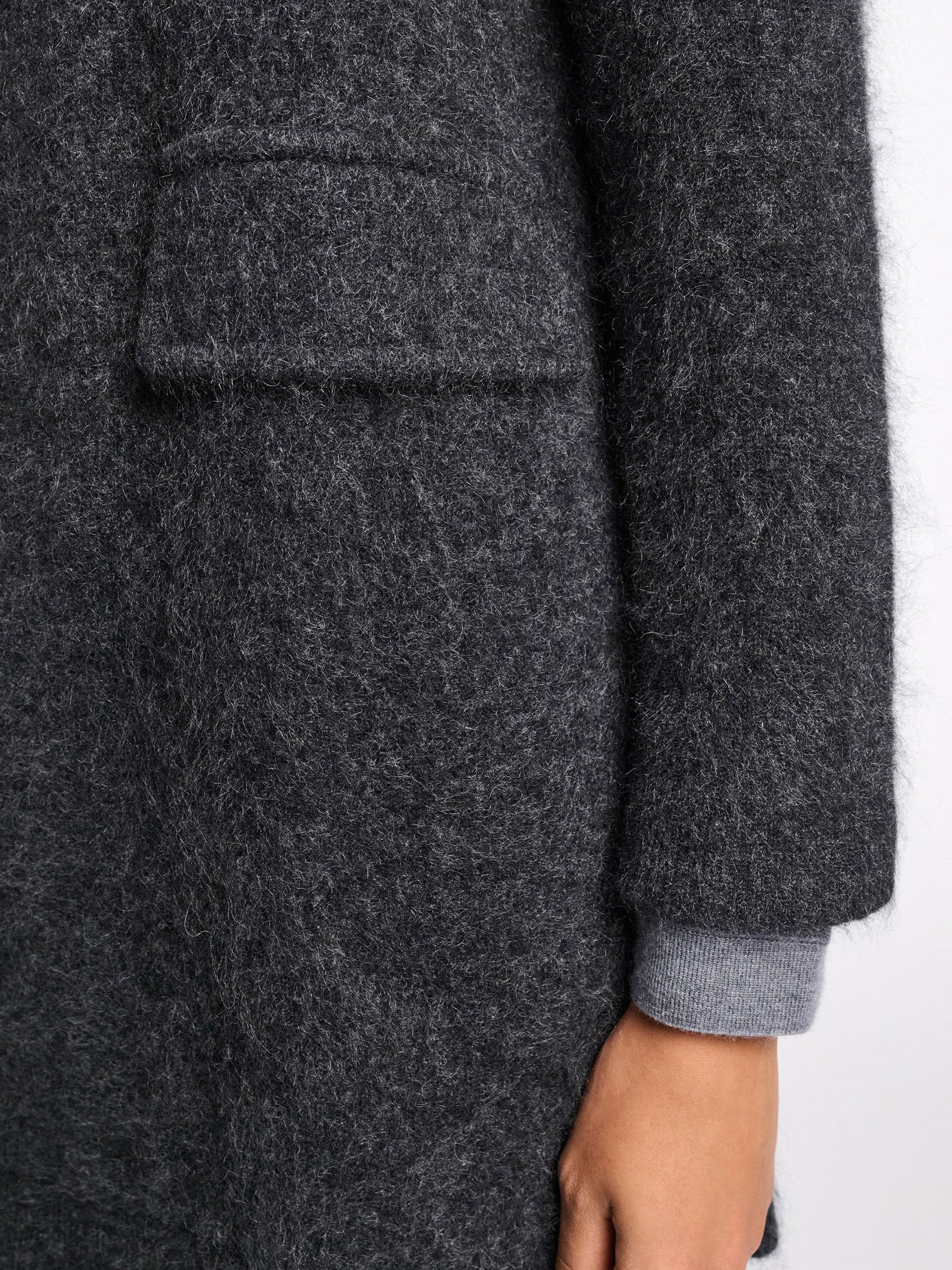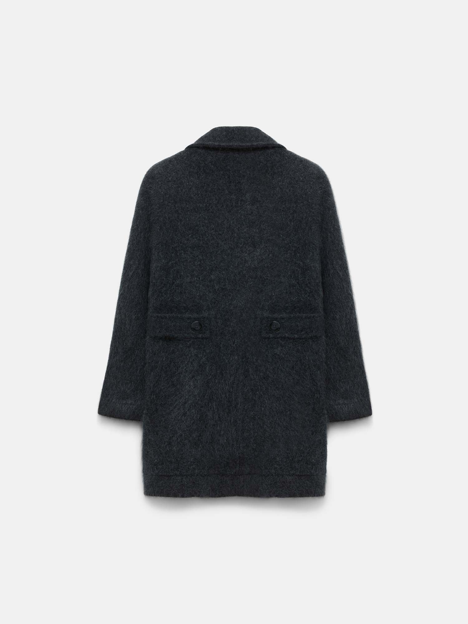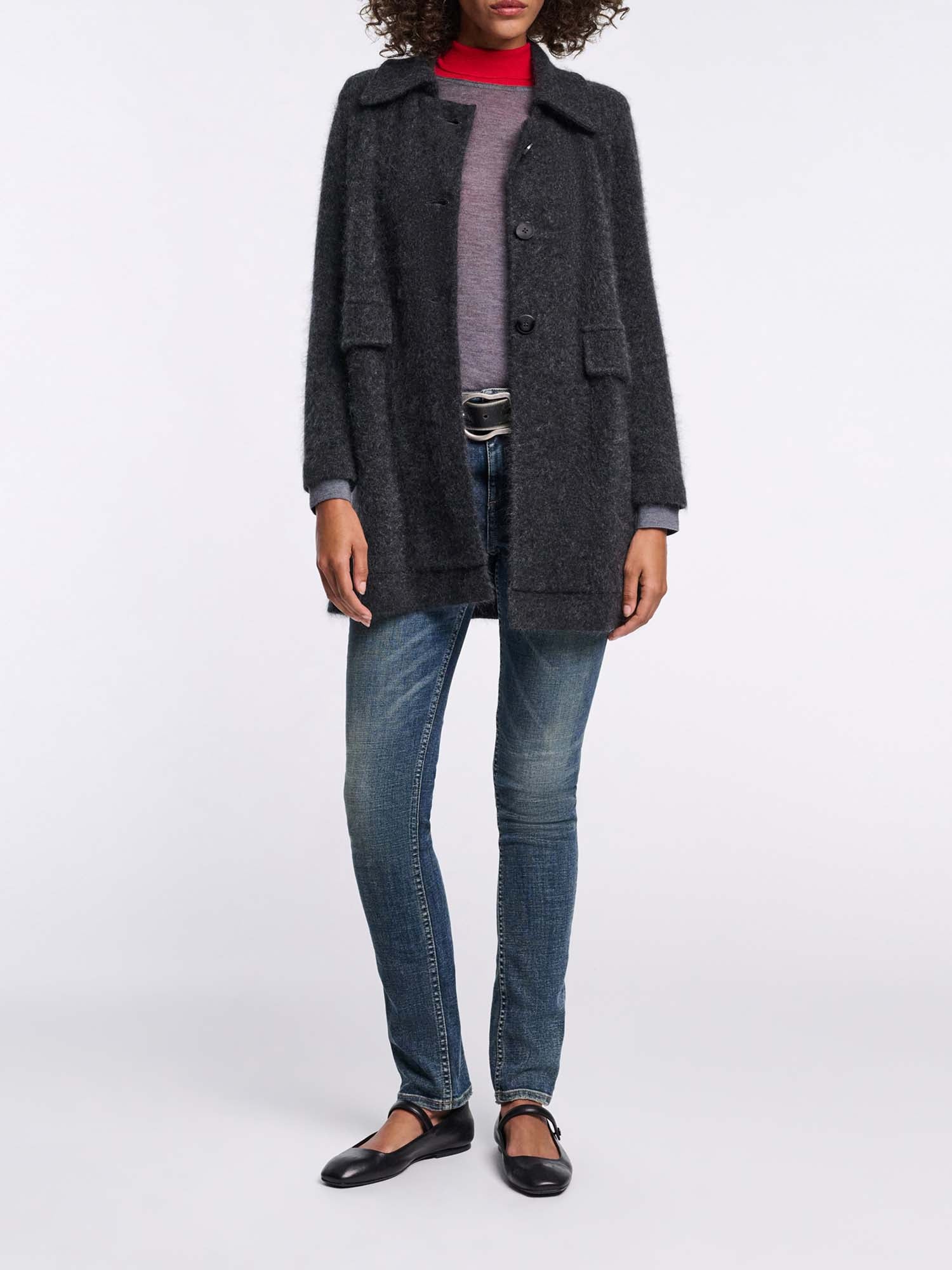 Cozy comes to mind: The coat has a wide collar and is knit in a soft cashmere-Merino wool mix. The fluffy wash gives the loosely fitted style an extra soft feel.