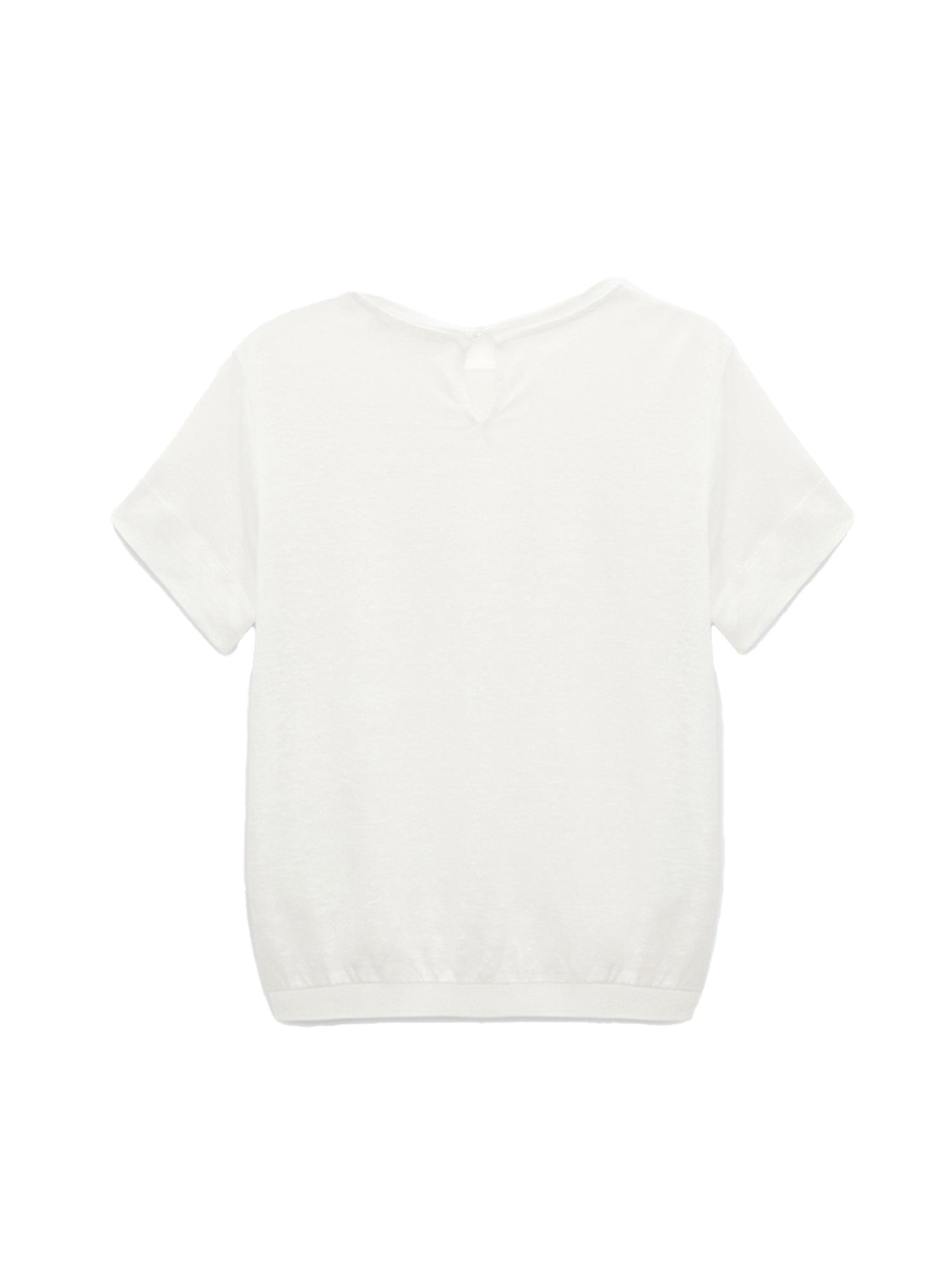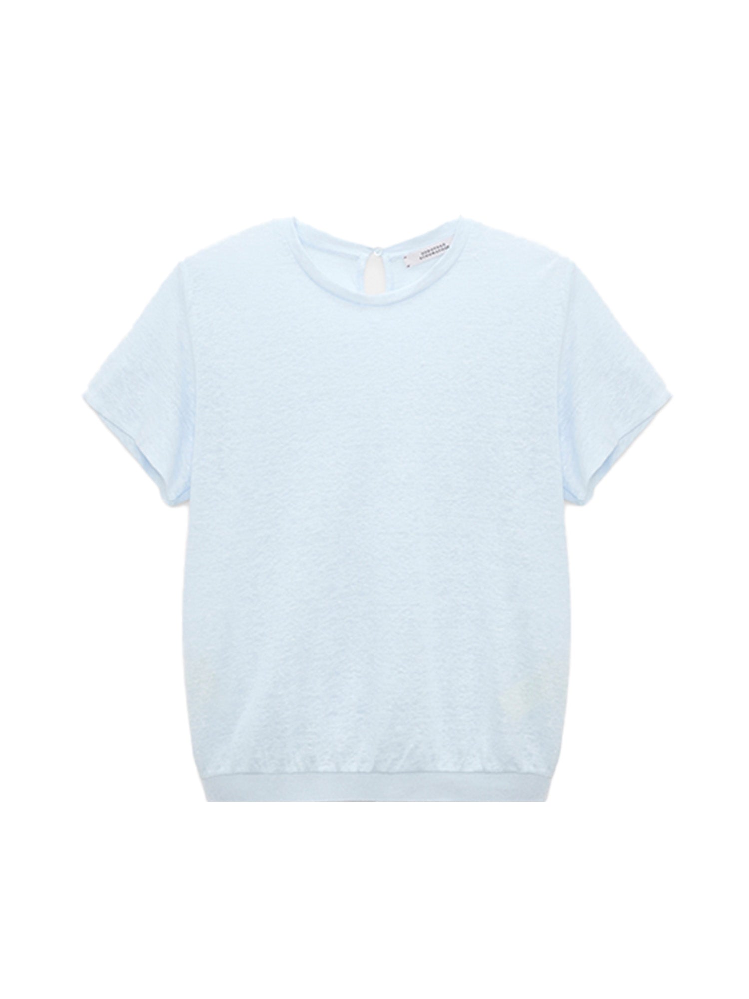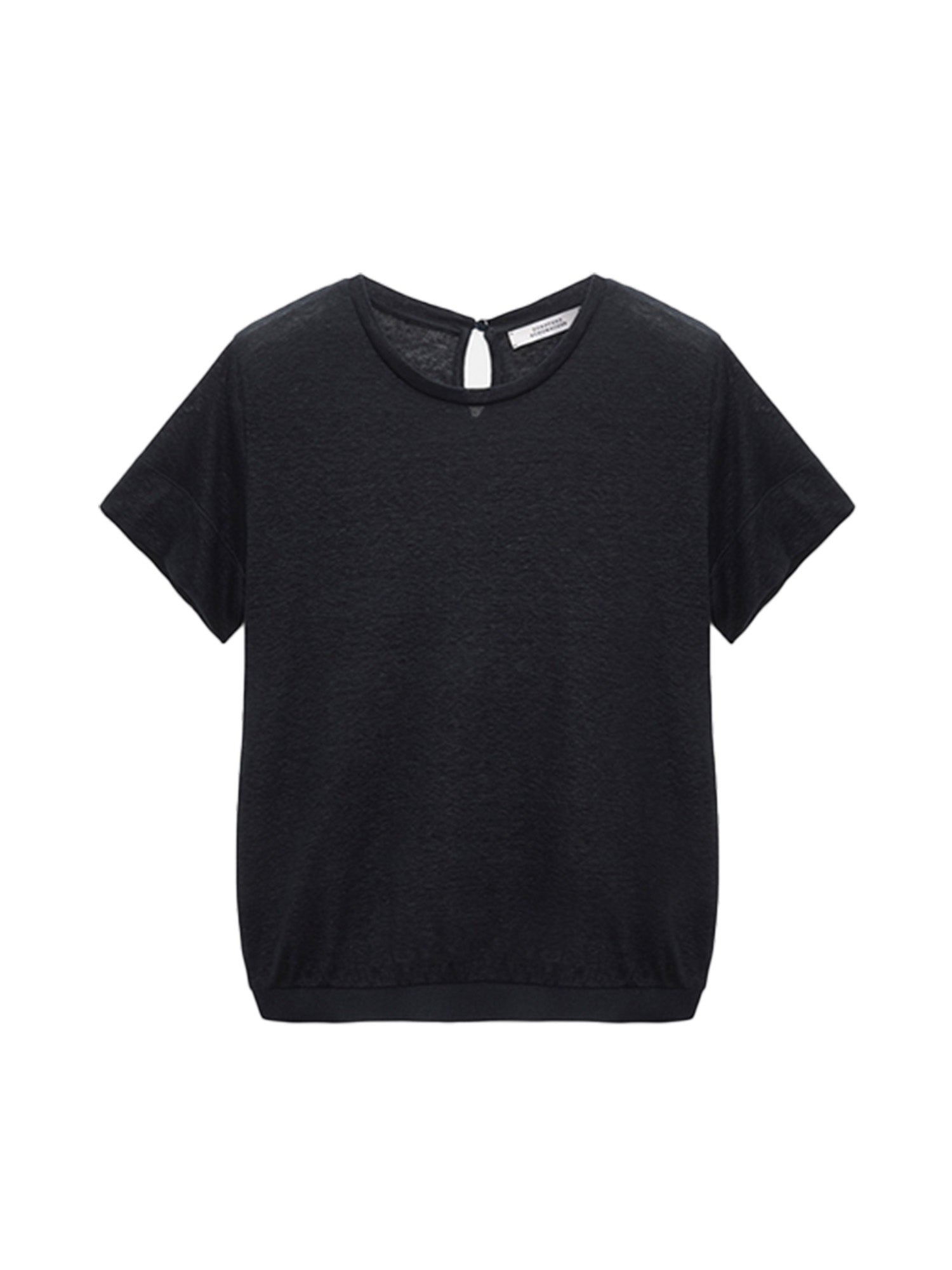 The T-shirt-style top is made from hemp and features a heathered finish. The top has tonal knit trim in rayon.