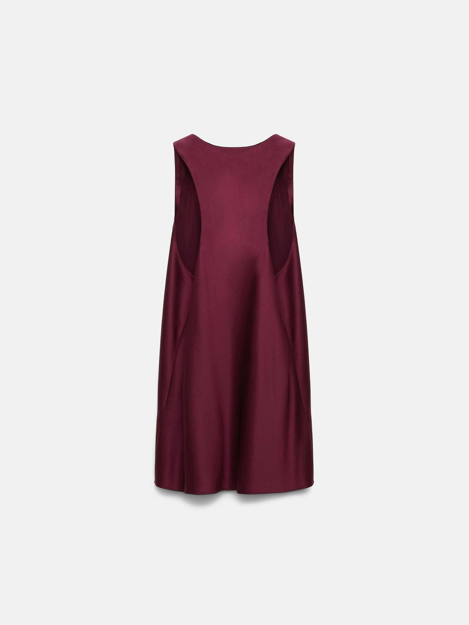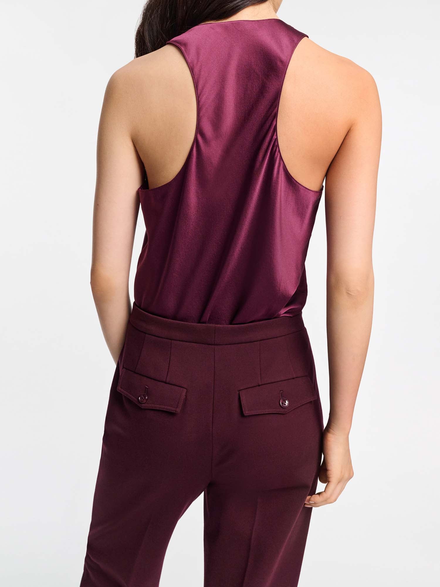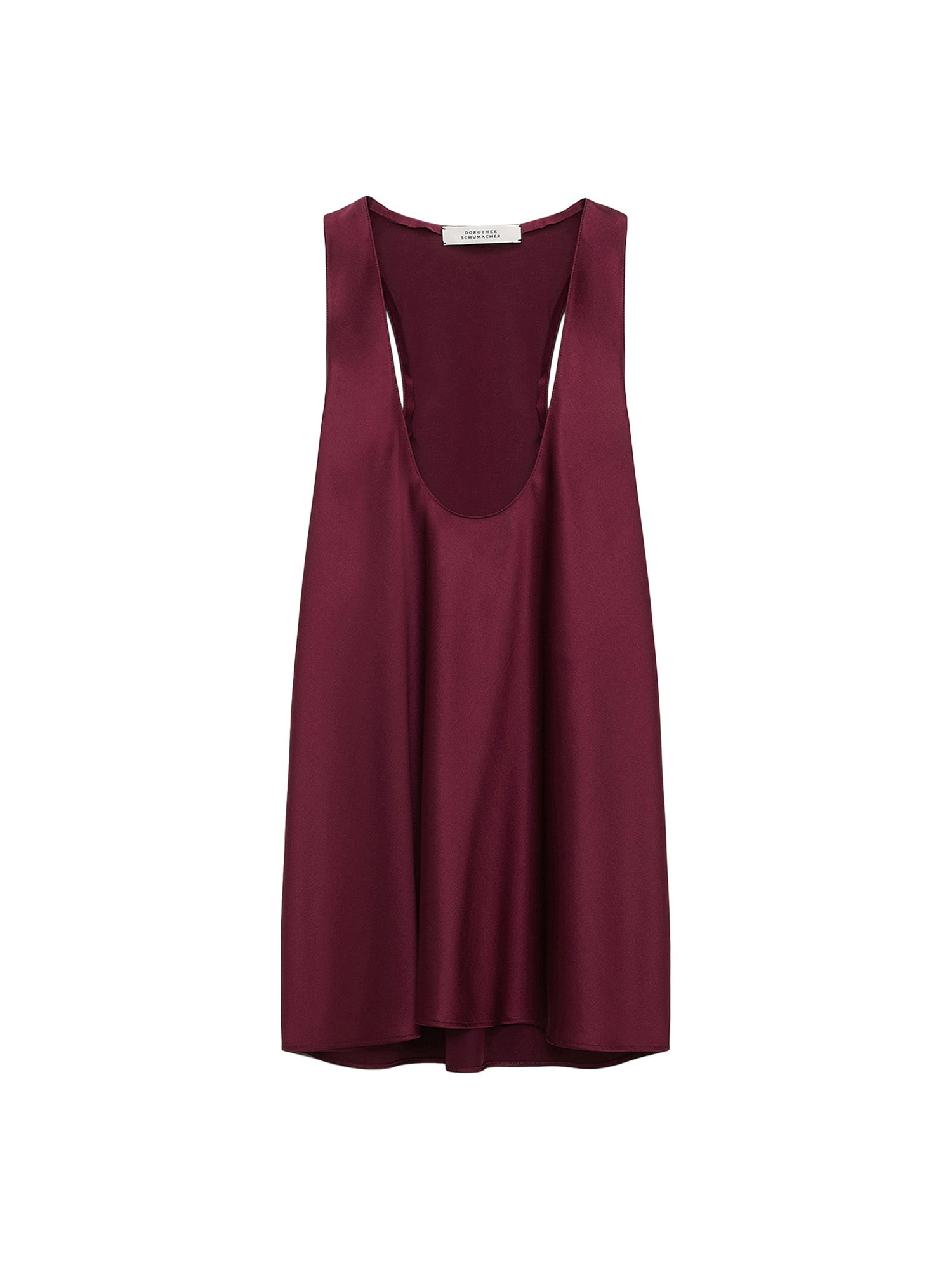 The silk-satin tank top has a deep scoop neckline and medium-width straps. The tank top is cut on the bias and has a racerback.