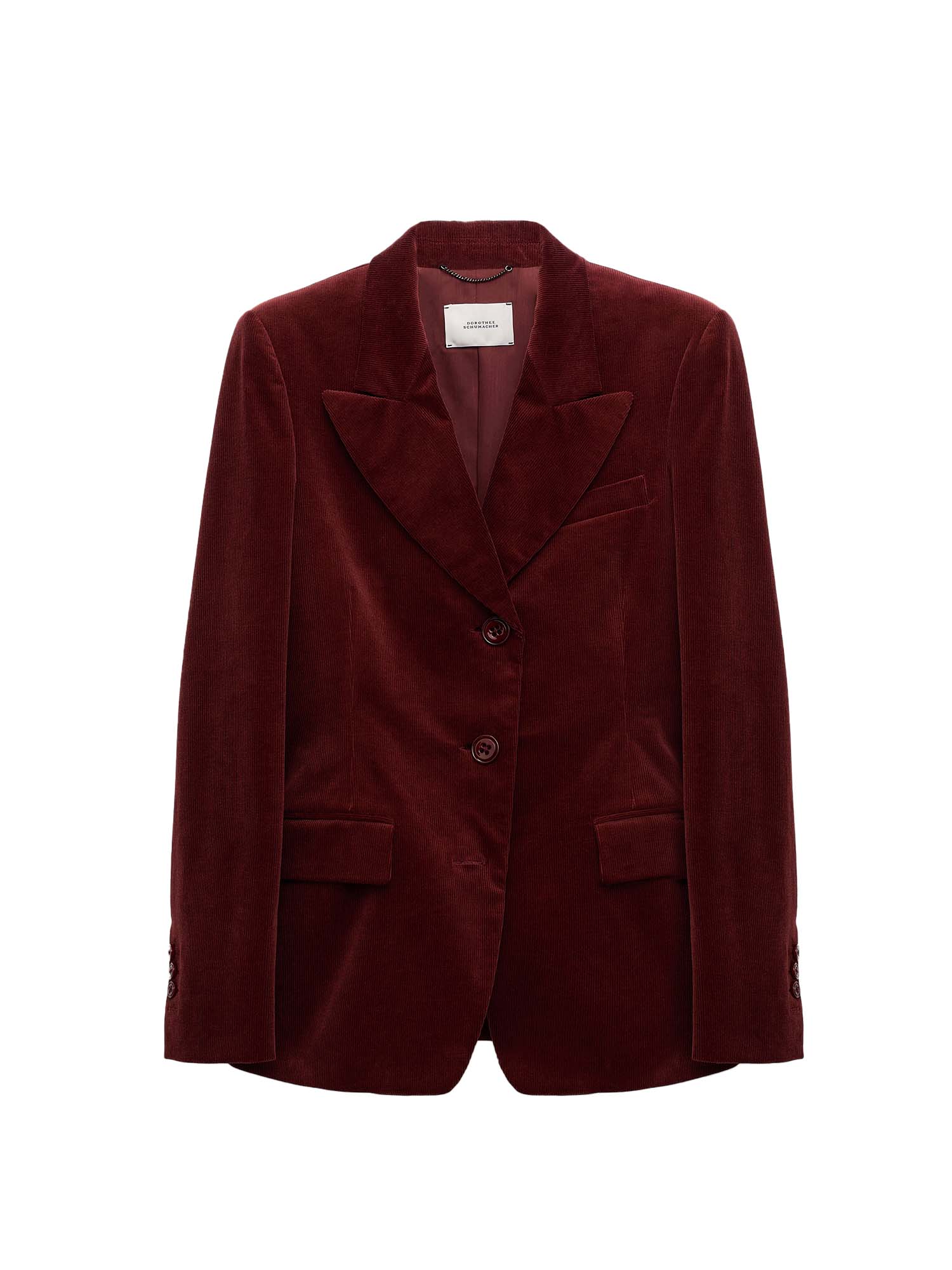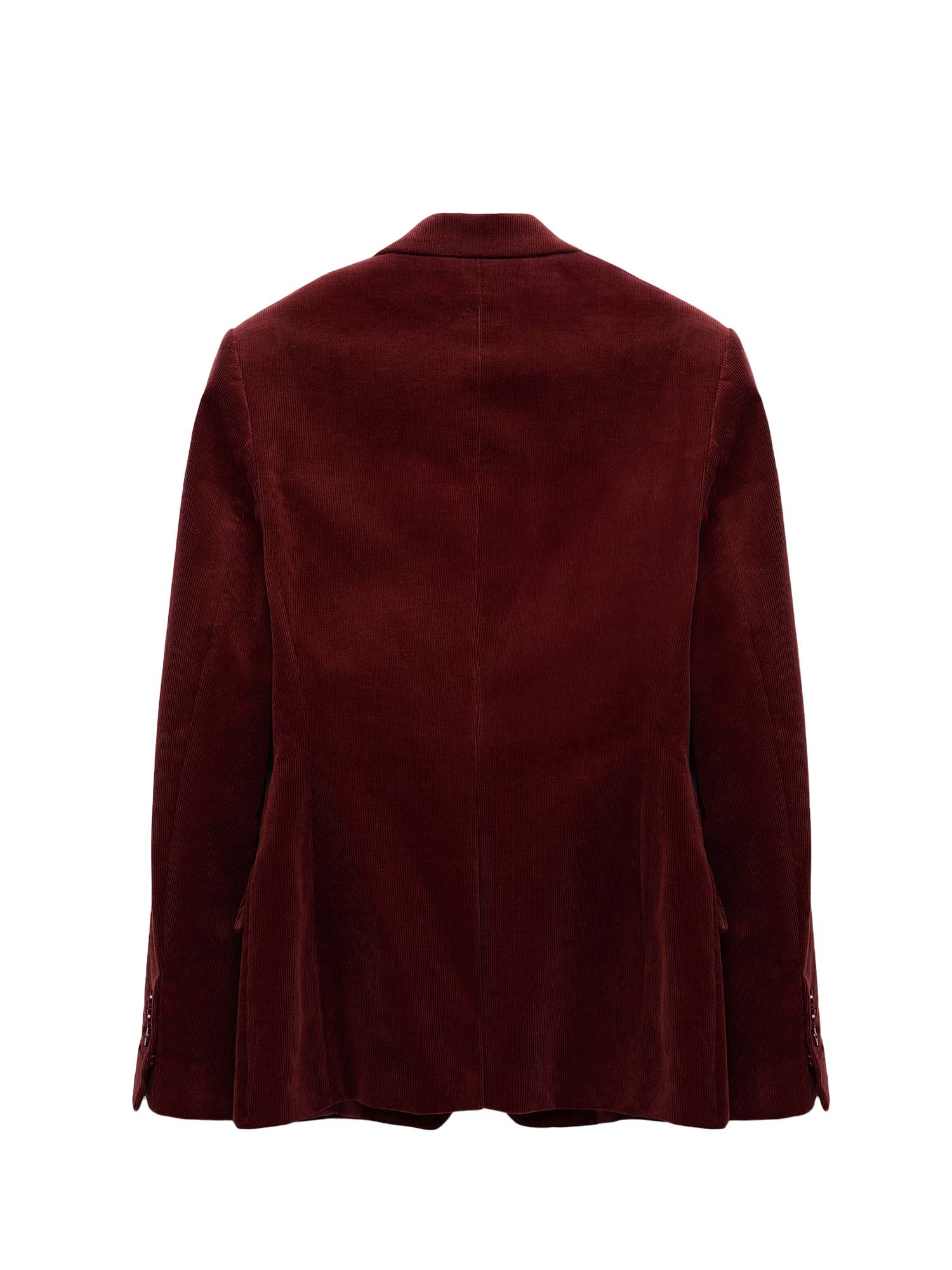 The slim tailored blazer has a peaked lapel and is detailed in a soft cotton corduroy mix.
