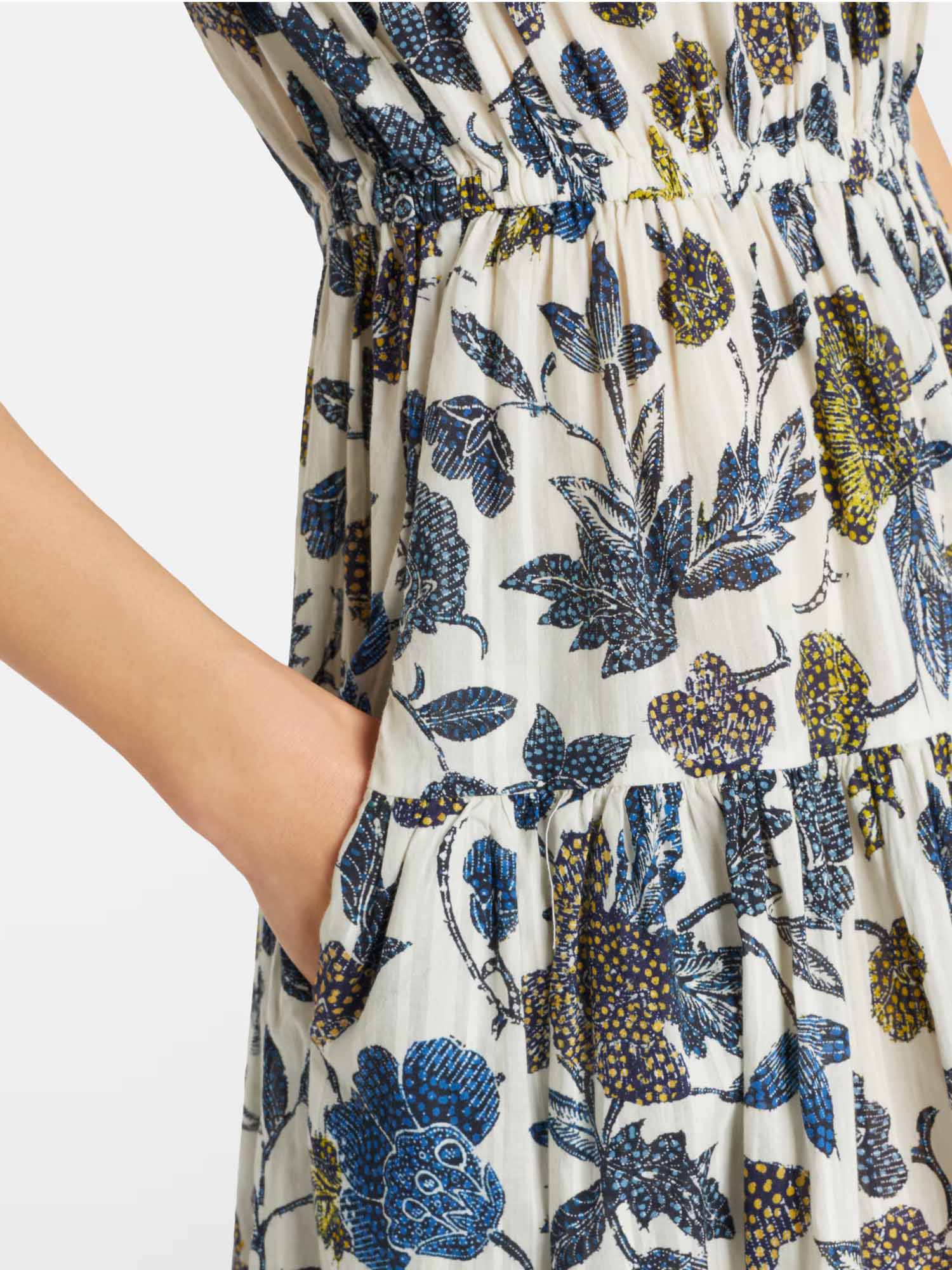The Kairi Dress personifies wear-everywhere elegance on sun-filled days. This multicoloured dress is made from cotton-blend with a melding of batik florals atop soft stripes, and it walks with soft, easy movement.