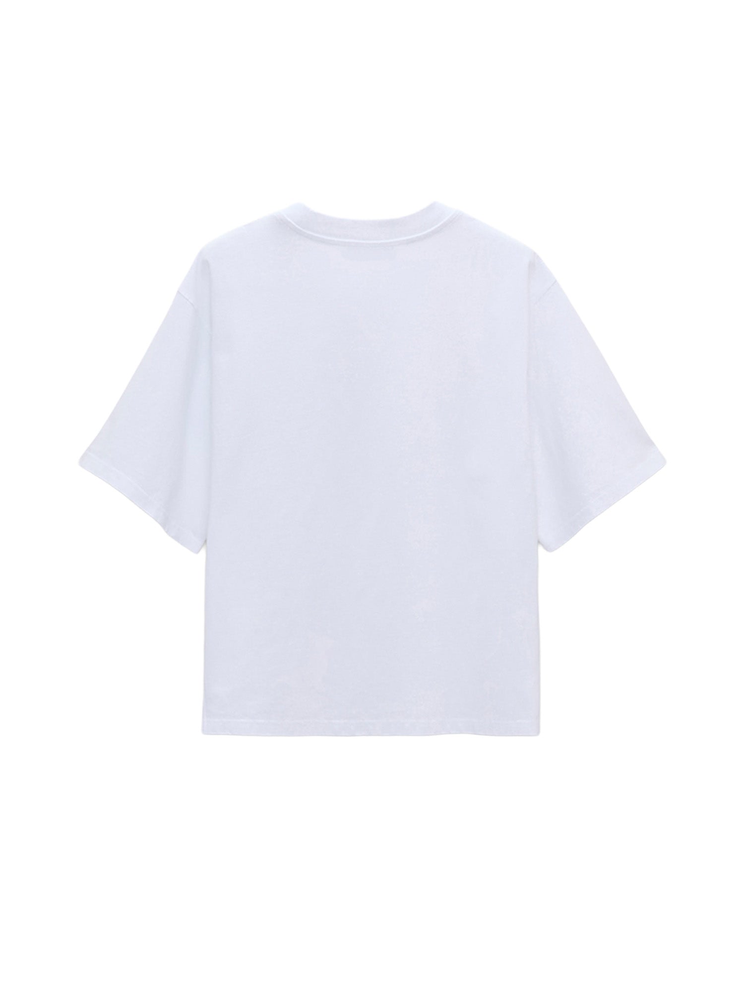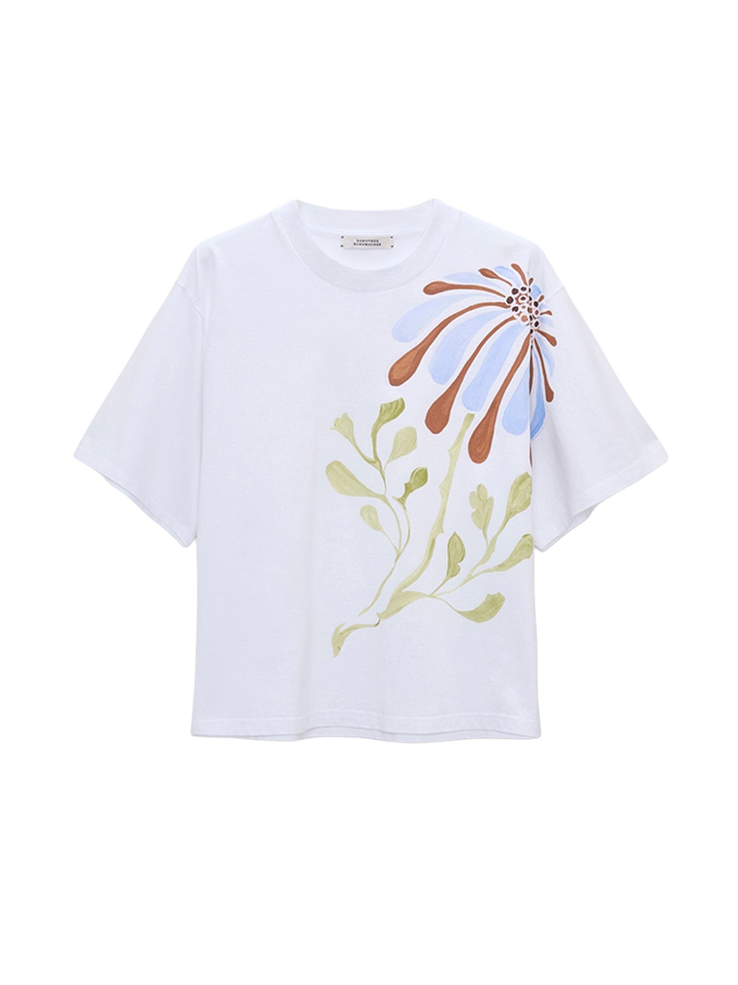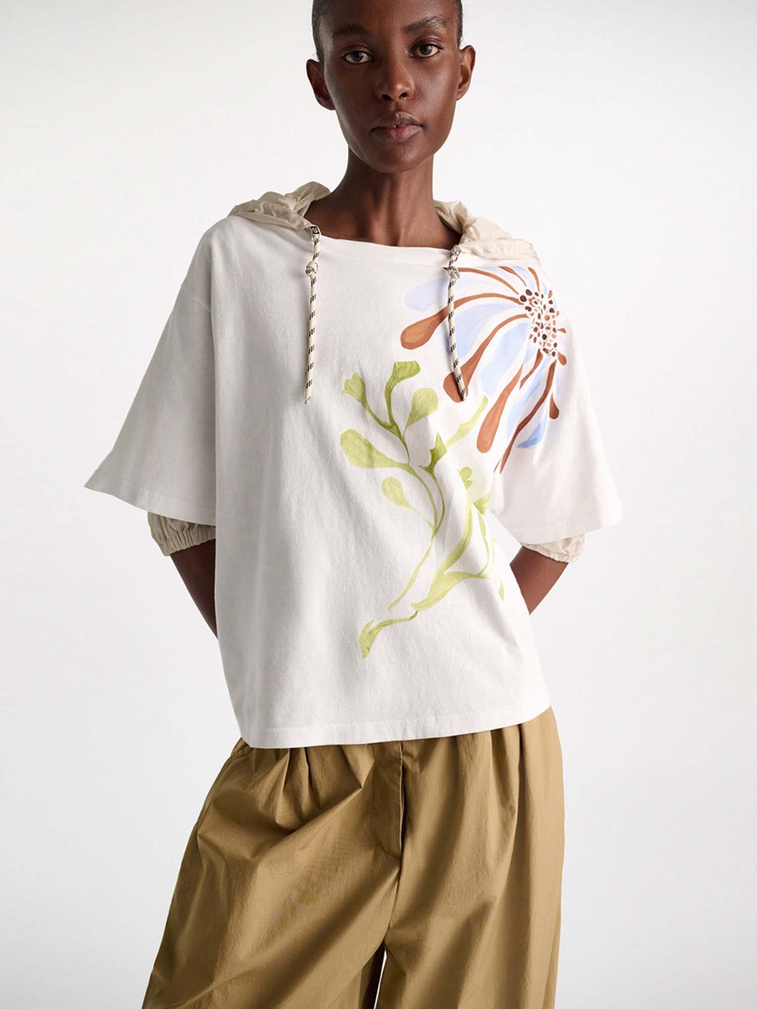 The relaxed cotton T-shirt has dropped, and the shoulders feature our signature floral print.