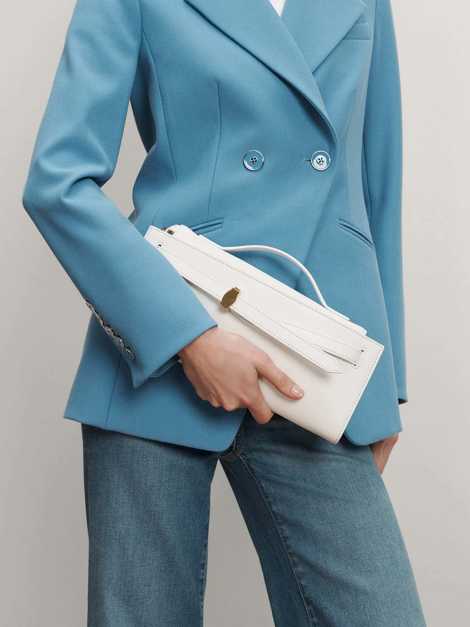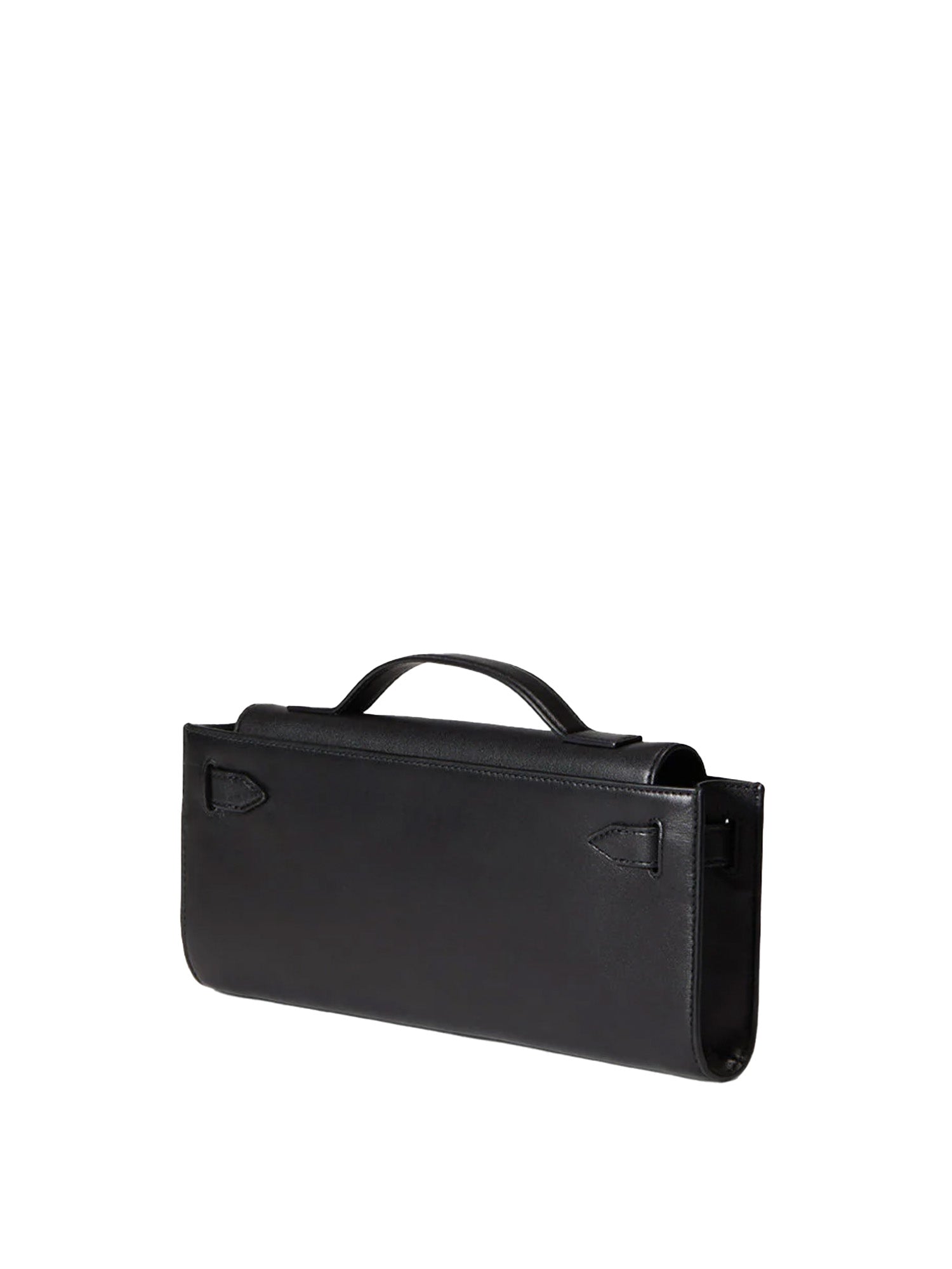 Our popular Dash bag, now in a clutch. Made from smooth, supple black leather, it carries the essentials you need—including the largest iPhone—featuring a slim top handle. An interior zip pocket keeps cash and credit cards organized and secure in your new go-to clutch bag.