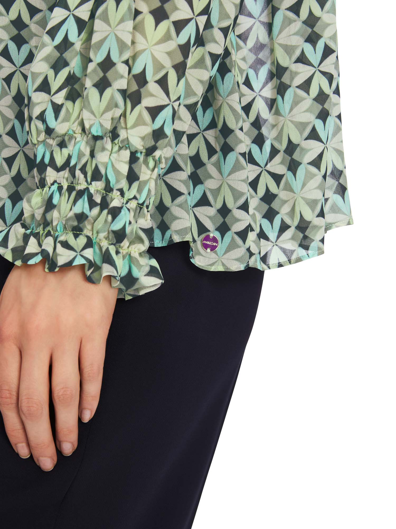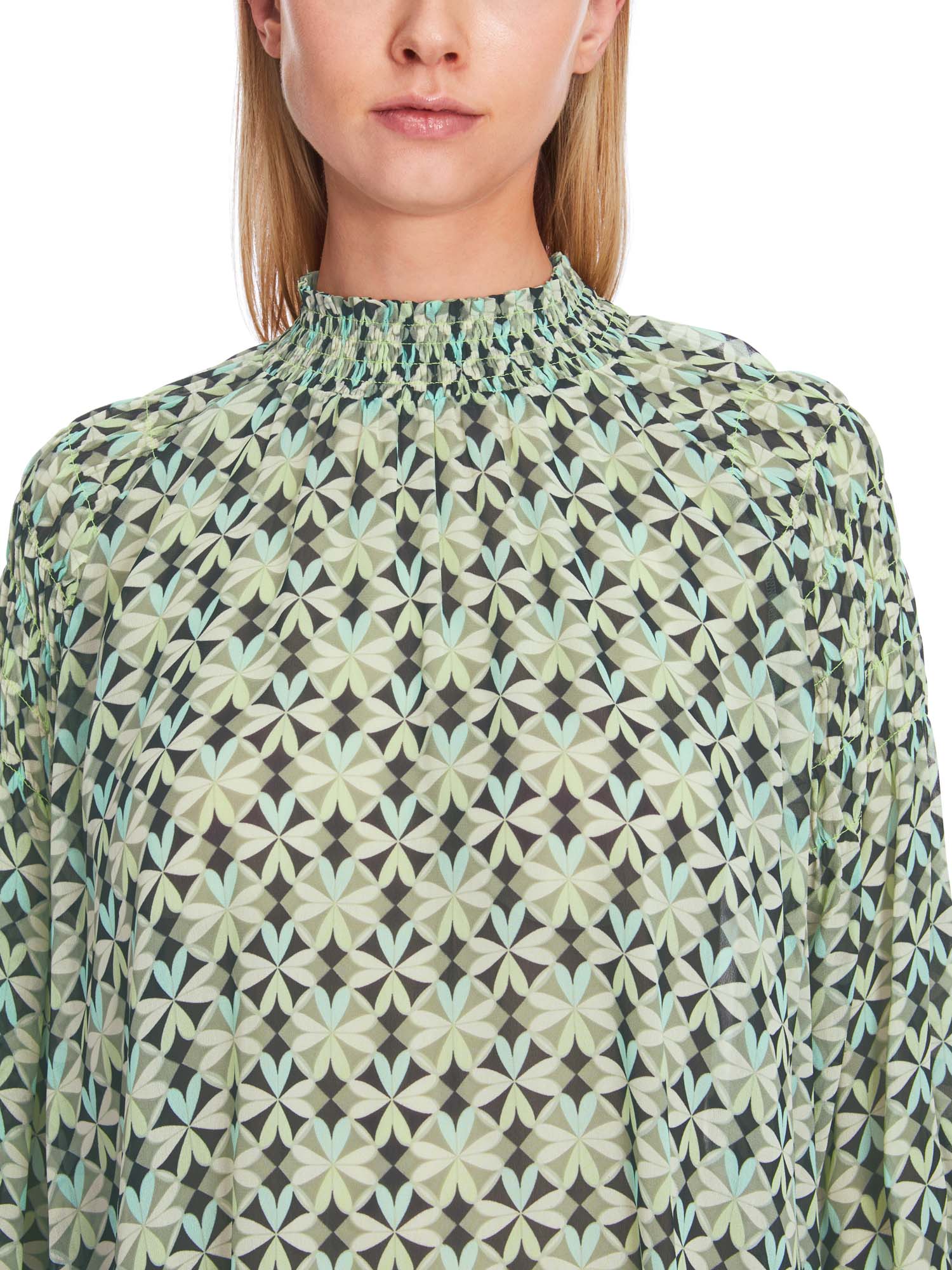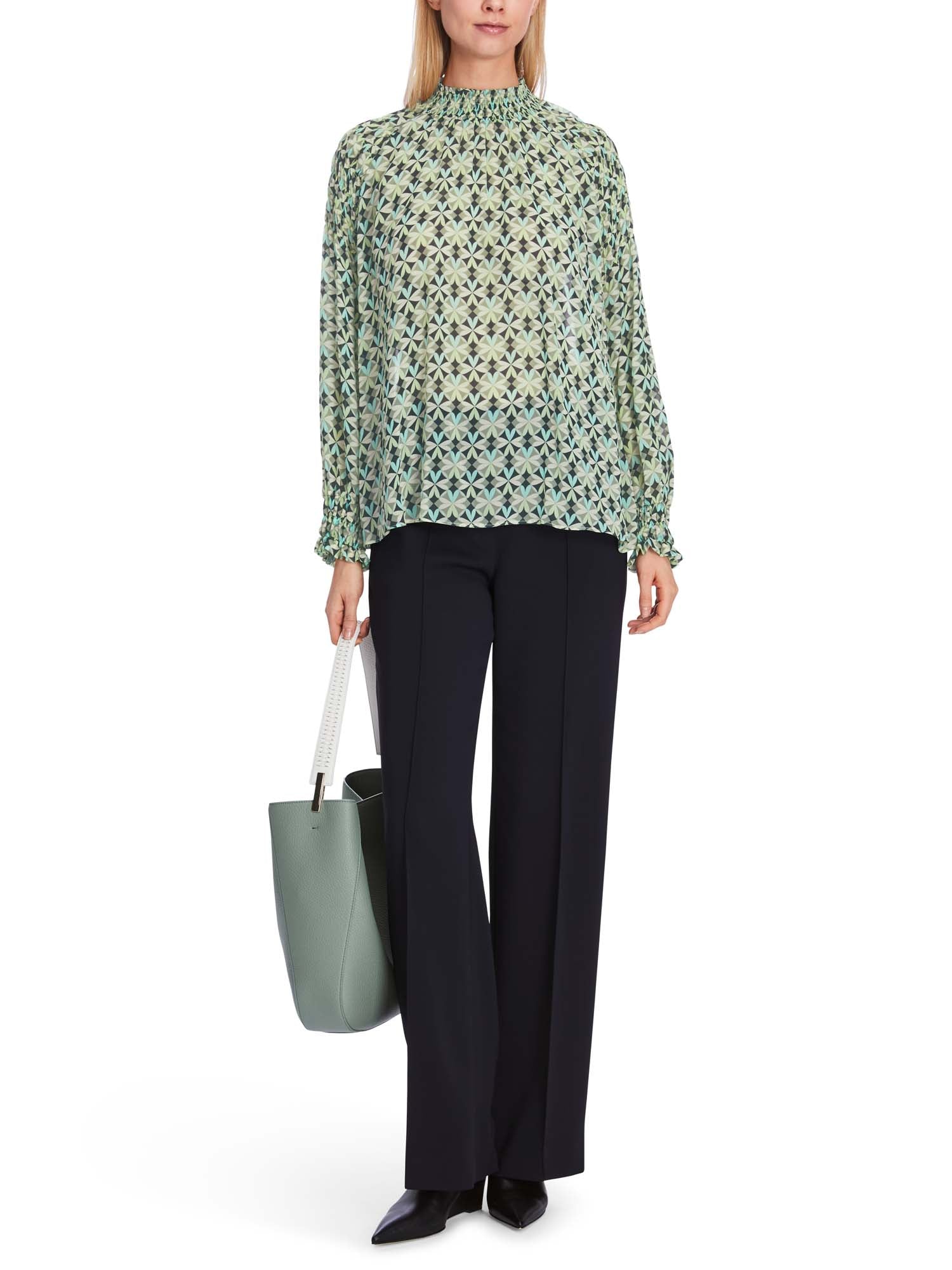 The smocked inserts on the stand-up collar, shoulders and cuffs give this blouse its special style. The look is complemented by a floral-inspired graphic pattern. The blouse has a wide cut. The soft, flowing viscose rounds off the feminine design.