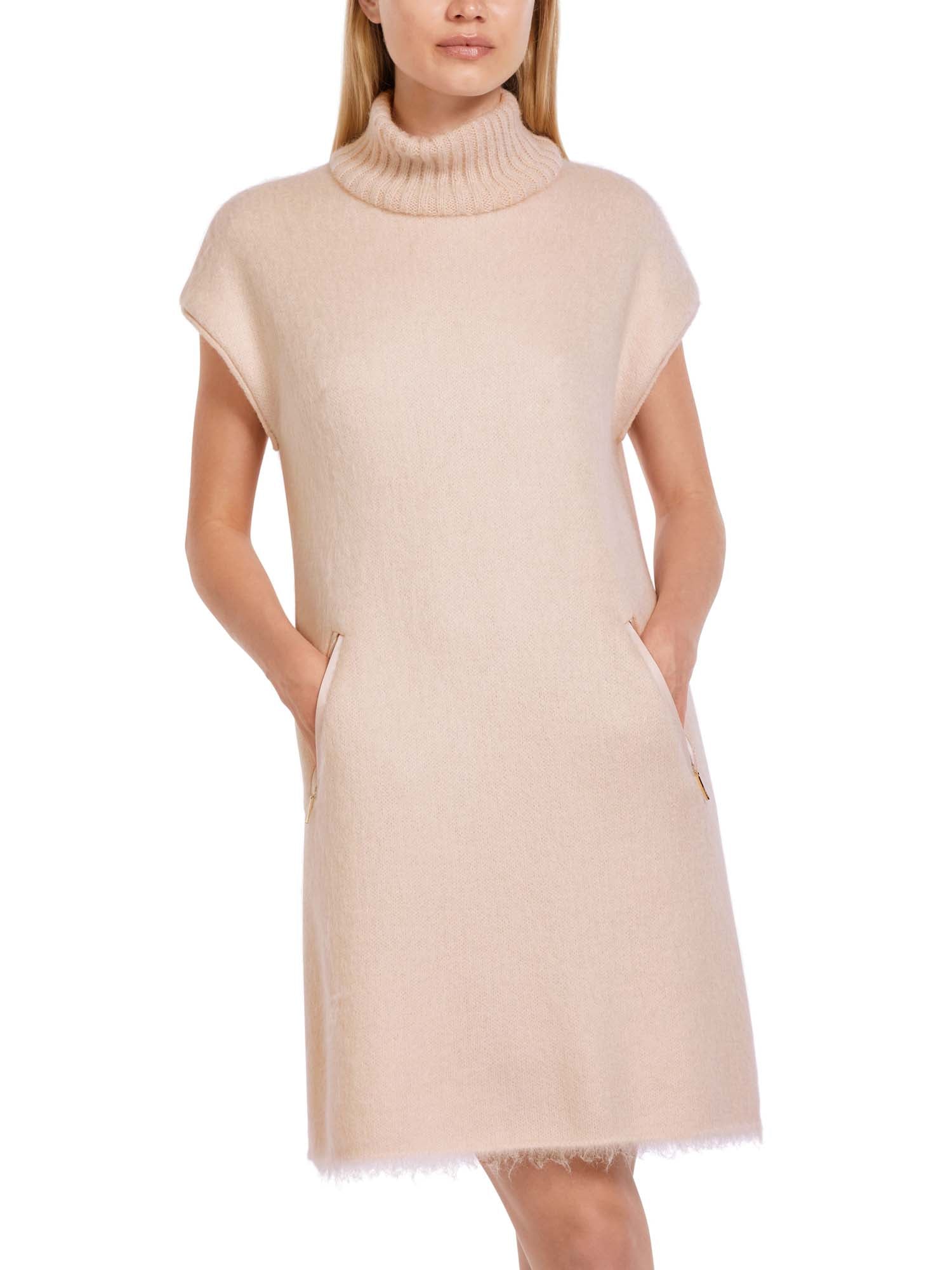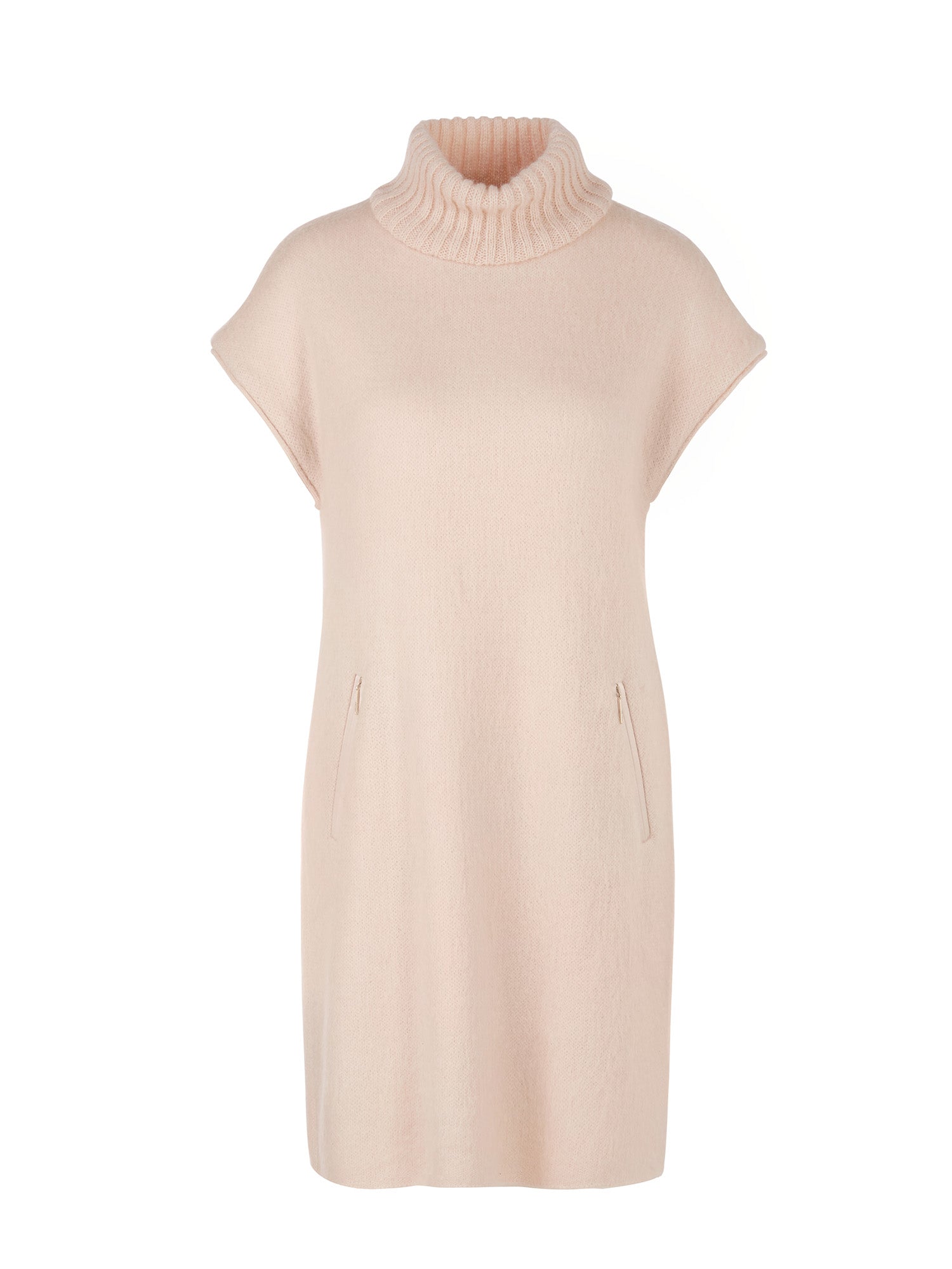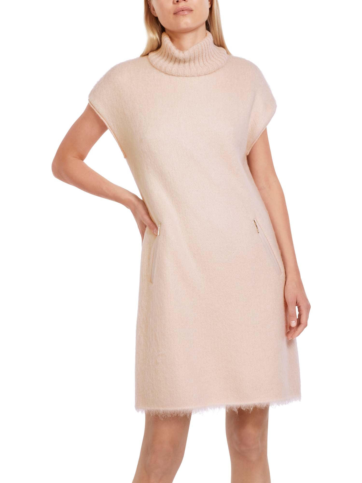 This short sleeve turtleneck dress features a ribbed stand-up collar, zipped side pockets and logo patch at the back of the neck. The cozy piece has a fluffy feel, perfect for the cooler months.