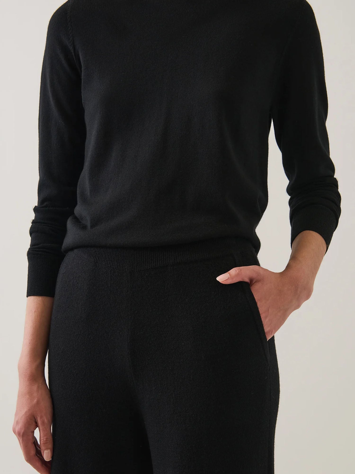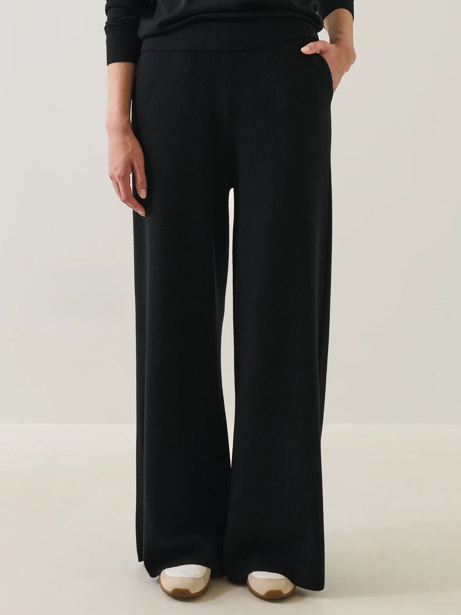 Crafted from premium extra-fine merino yarn in a soft yet compact milano stitch, this pant was designed for a relaxed wide leg fit. Featuring an 26 1/2'' inseam for size small, elasticized waistband and slanted side pockets, this knit pant is a sophisticated and wearable Fall wardrobe staple.