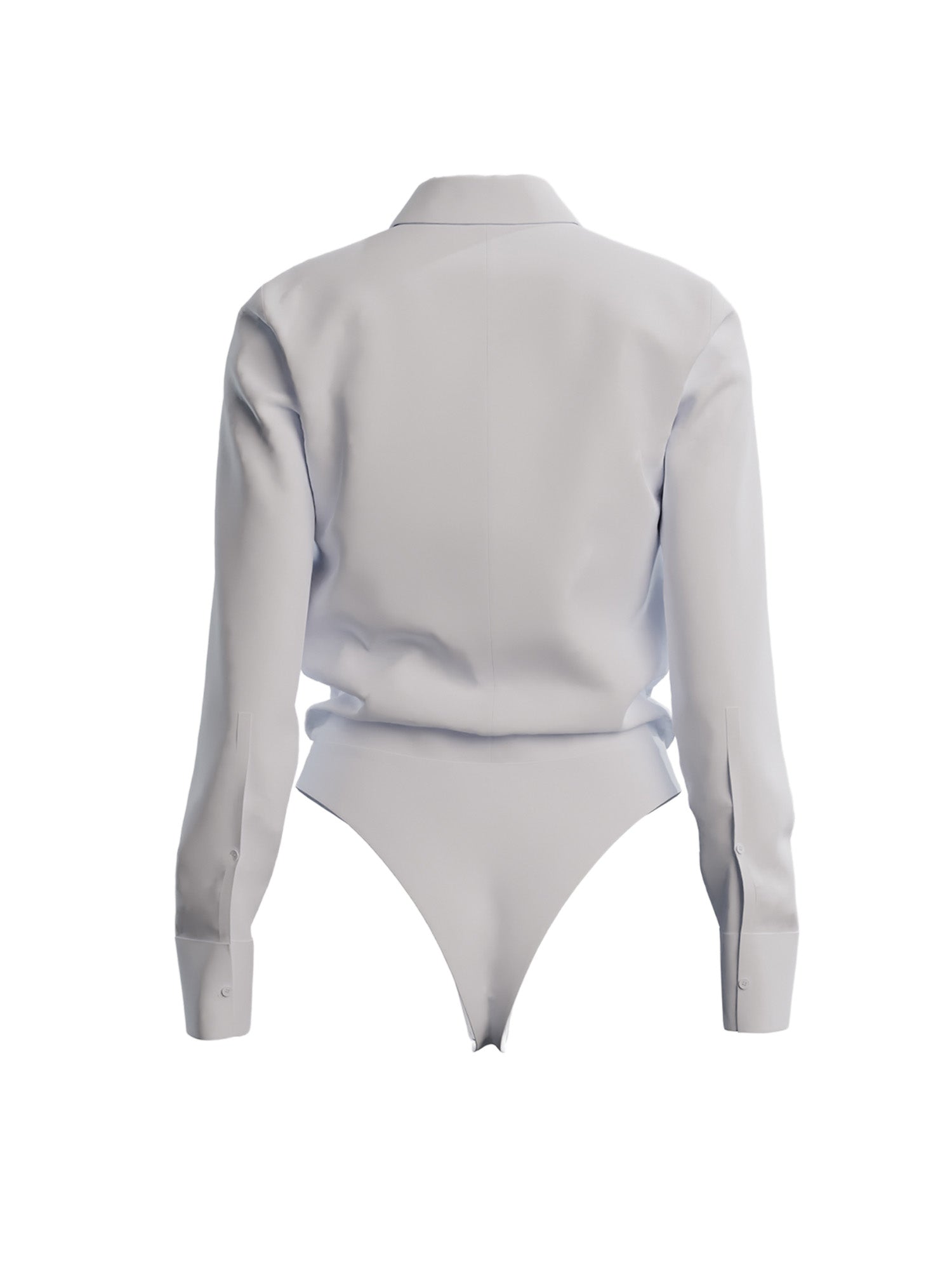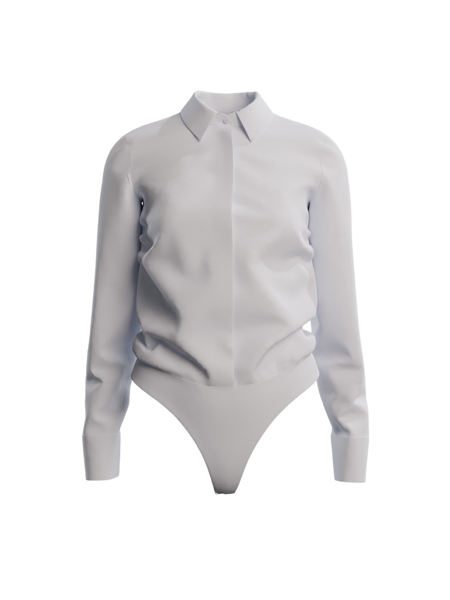 For a look that stays crisply tucked in, this cotton poplin blouse comes with an attached bottom. The collared top features a covered button placket for a sleek silhouette. Slit cuffs with branded buttons complete the design.