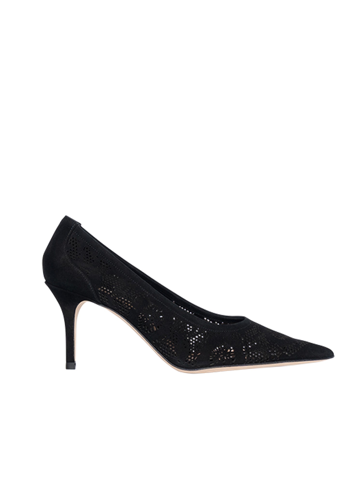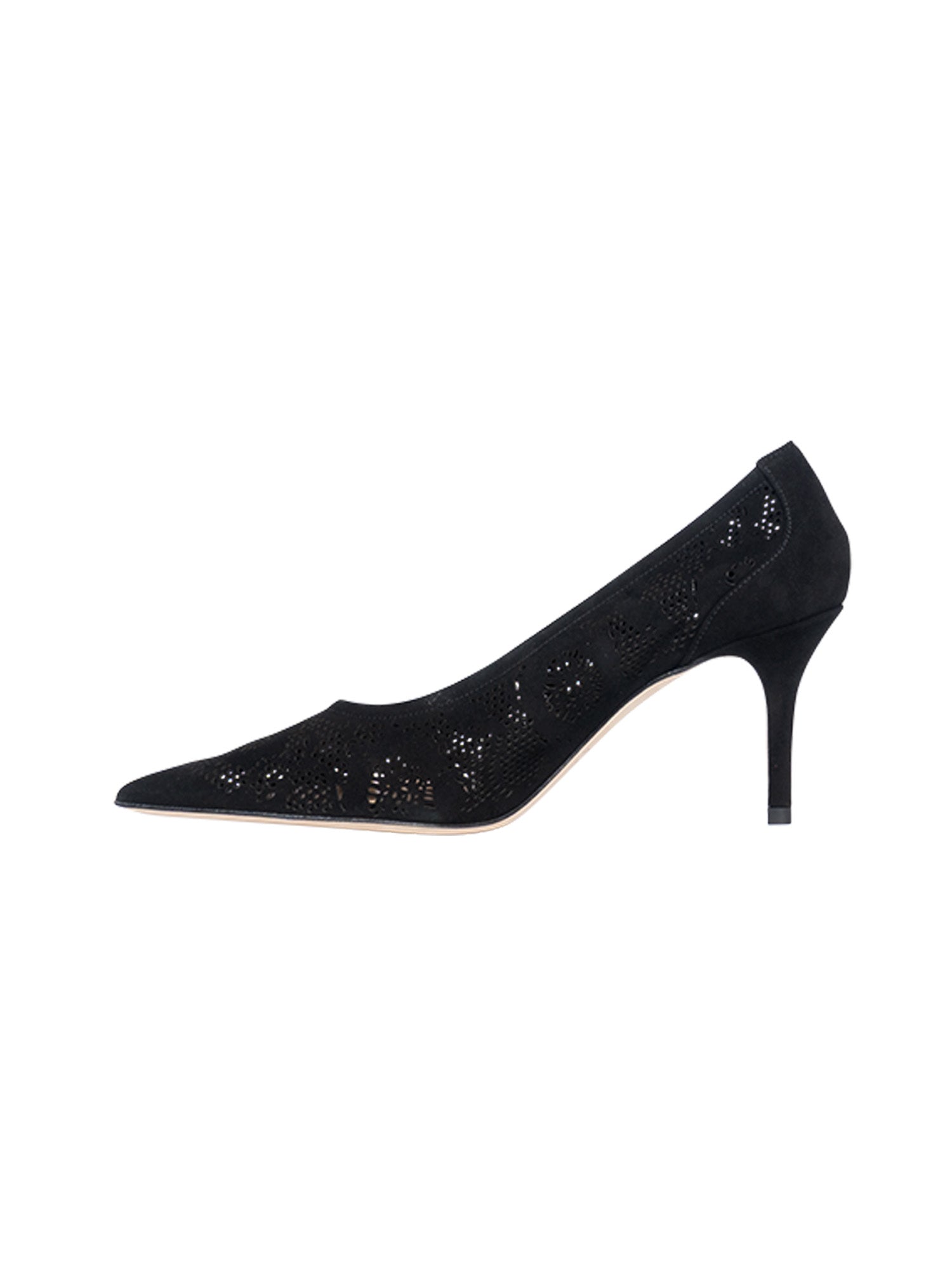 The Thalia 75 Pump Suede pump highlights Italian craftsmanship with a refined suede lace detailing and a leather sole.