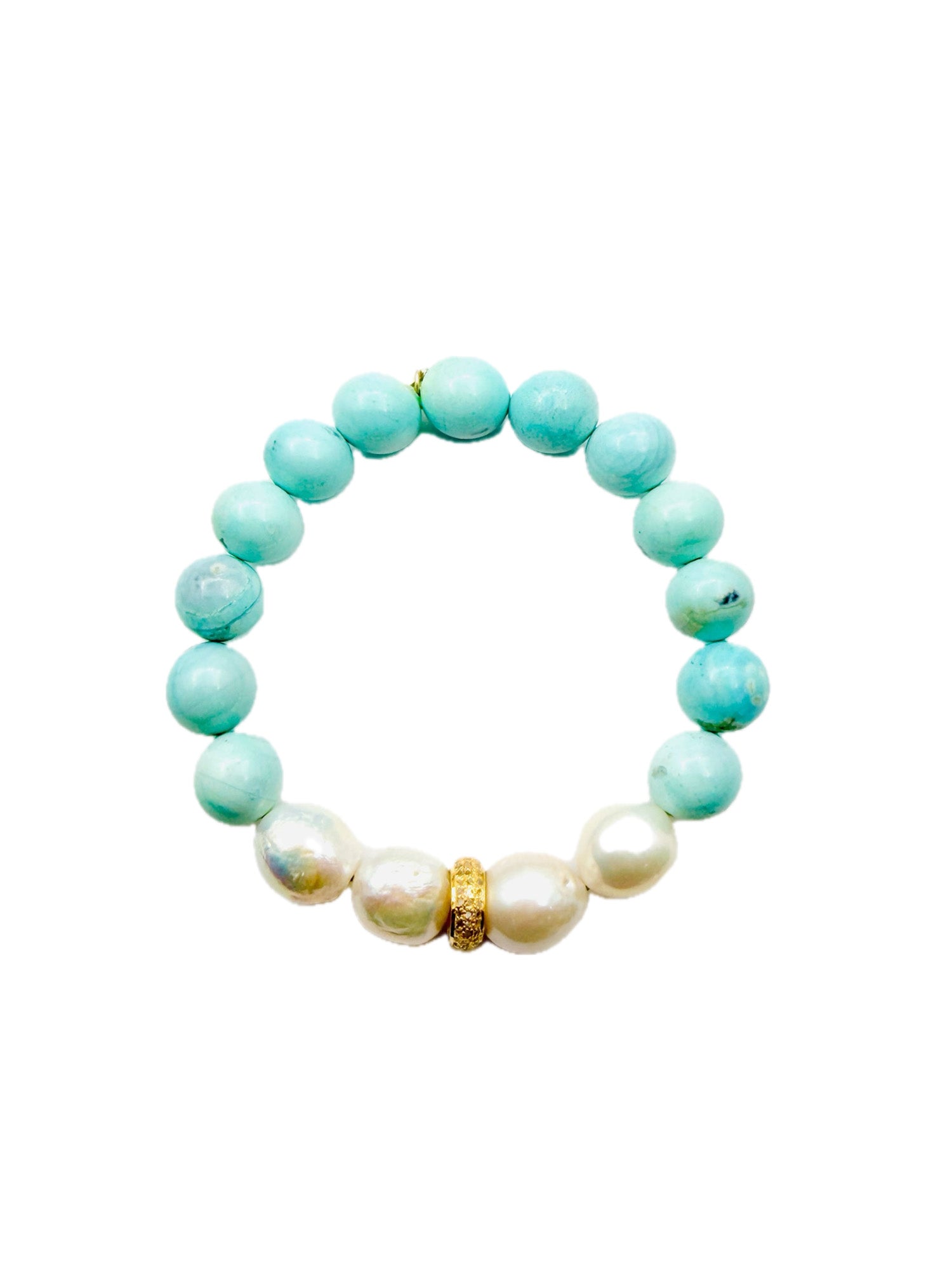 JMNYCAqua Terra Agate Smooth Ball and White Freshwater Pearl Bracelet with Gold Vermeil Diamond Rondelle