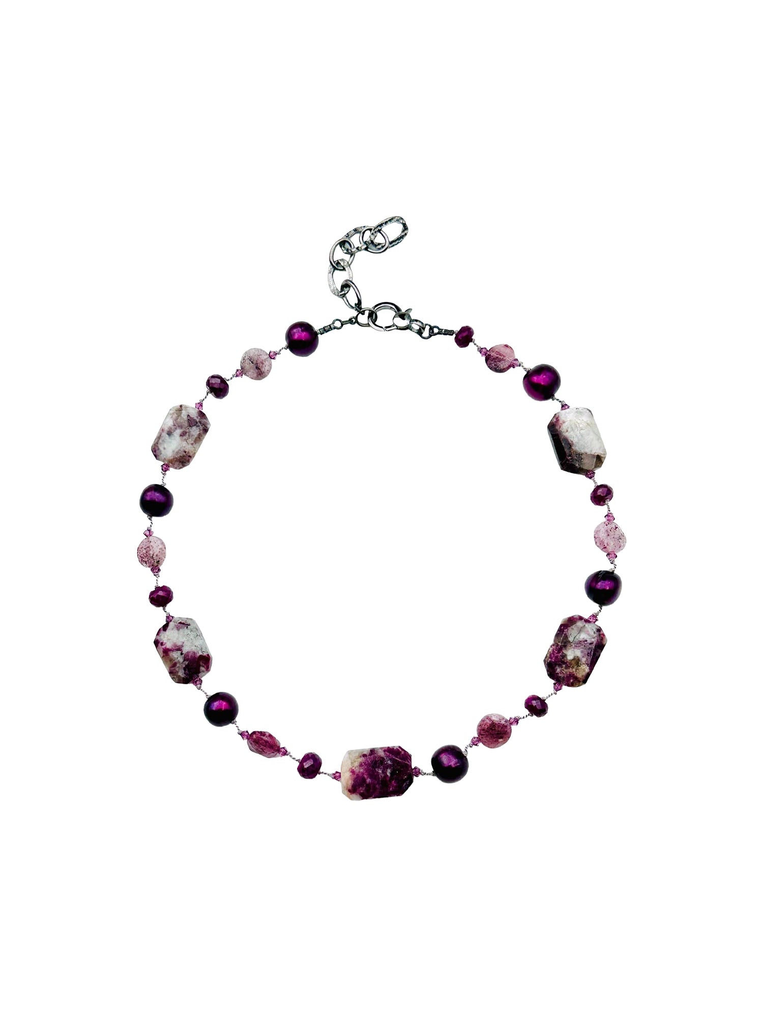 JMNYC Faceted Ruby, Ruby Tourmaline, Strawberry Quartz and Freshwater Pearl Necklace