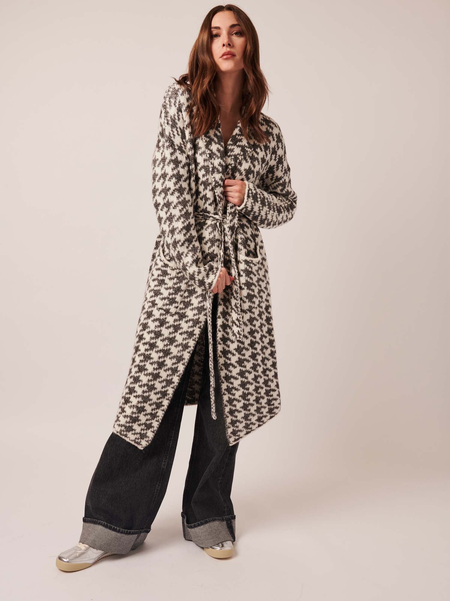 Long knit cardigan.