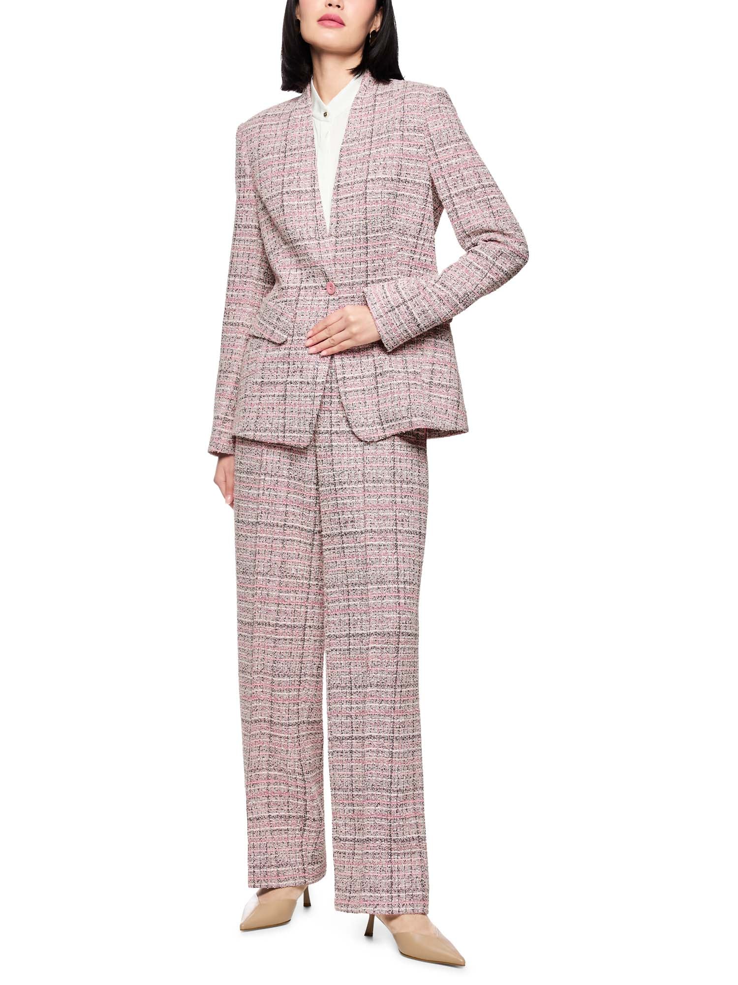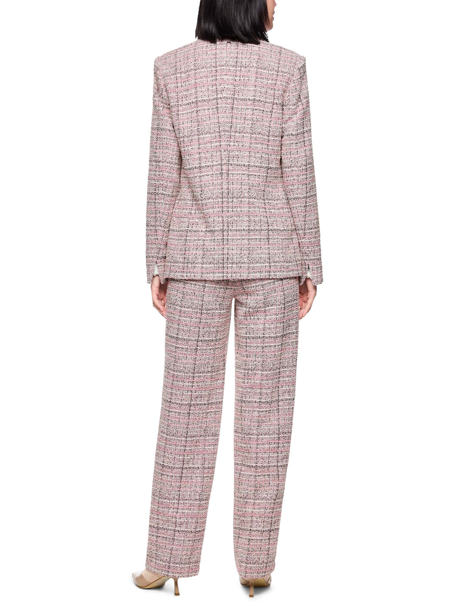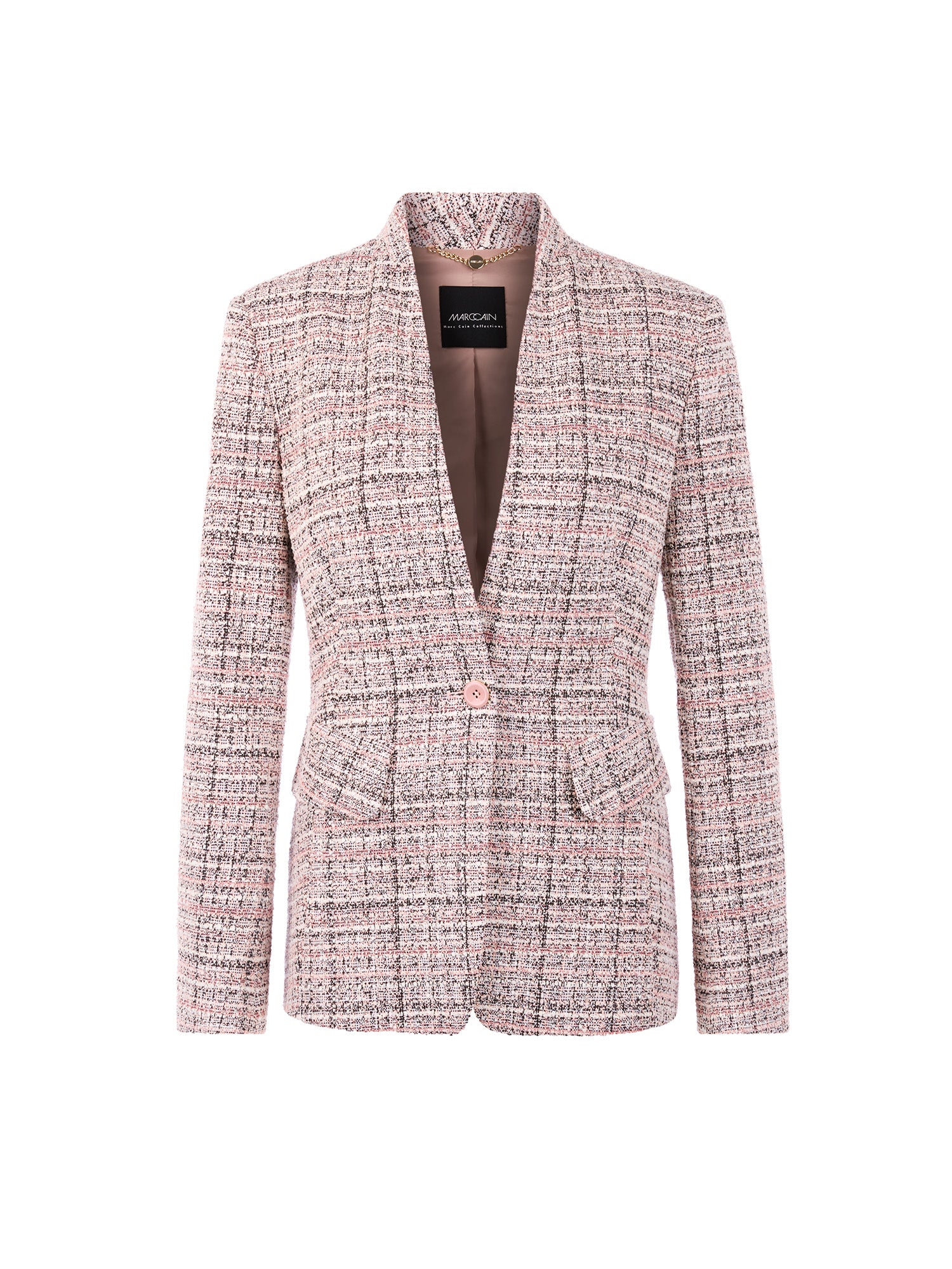 Fitted collarless blazer. The elegant blazer has a more tailored cut and features a small stand-up collar without lapels. It fastens with a button. Made from a high-quality blend of materials with wool content, it has a soft feel and a feminine silhouette. Ideal when teamed with the matching trousers for a complete, stylish look.