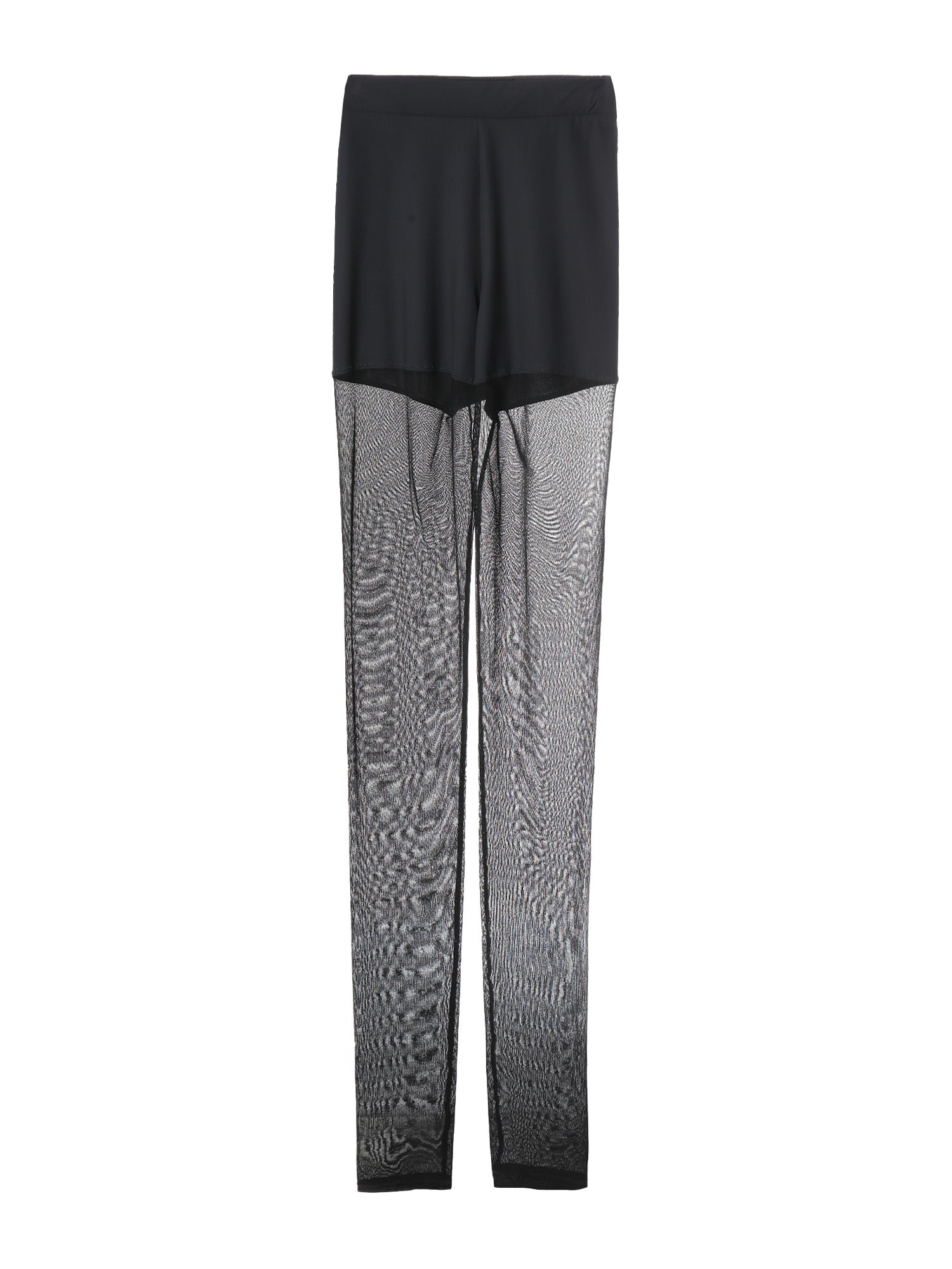 Legging cut in mesh. Integrated short cut in techno jersey. Elasticated reinforced waistband.