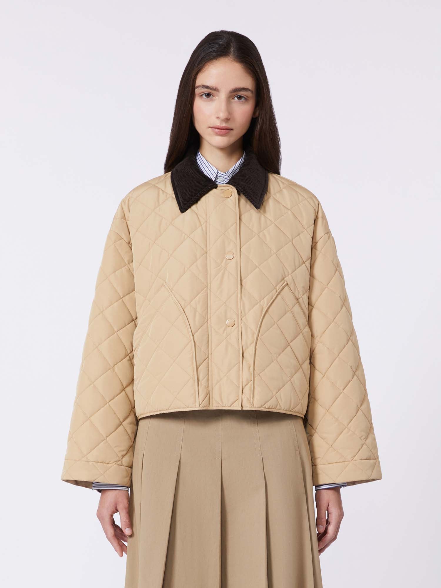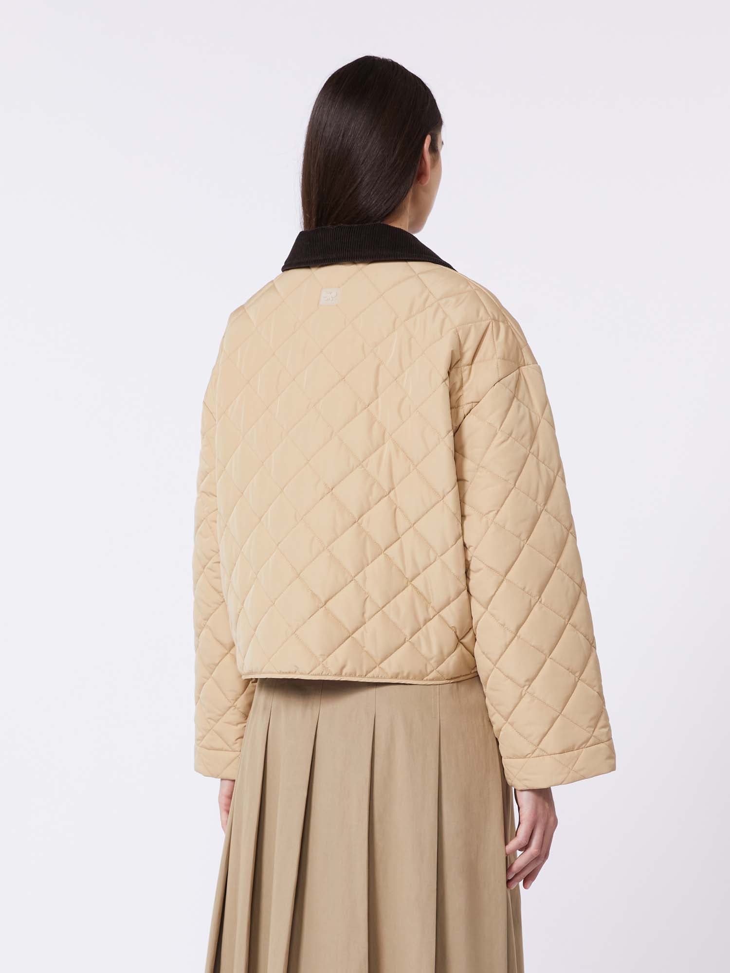 100% polyester; with quilting in 100% polyester; inner fabric 100% polyamide; internal upper part 100% cotton; other parts 65% cotton, 35% polyester.