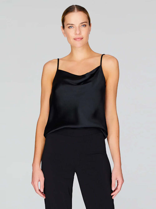 Mi Jong Lee Satin Draped Spaghetti Strap Camisole Top