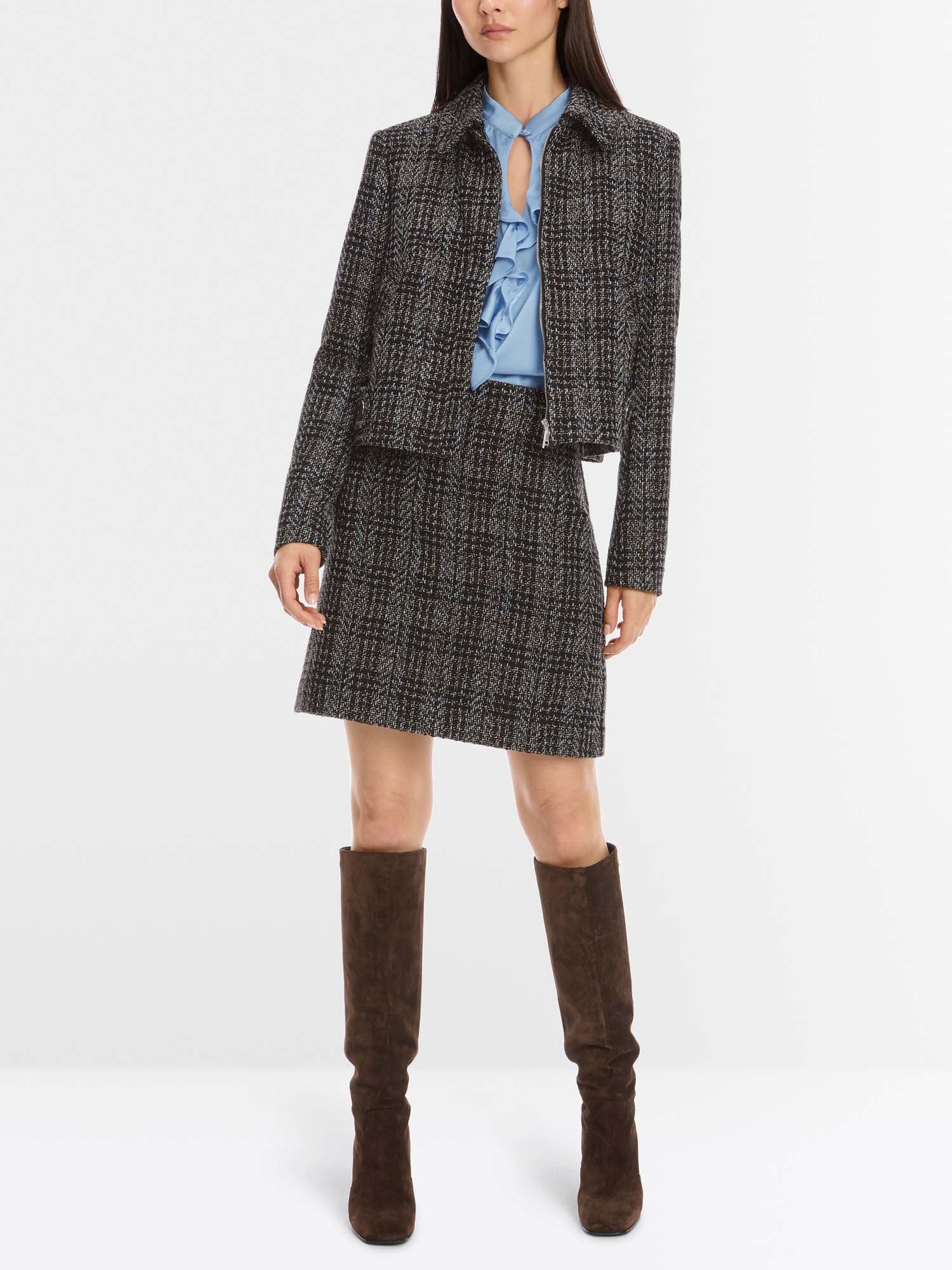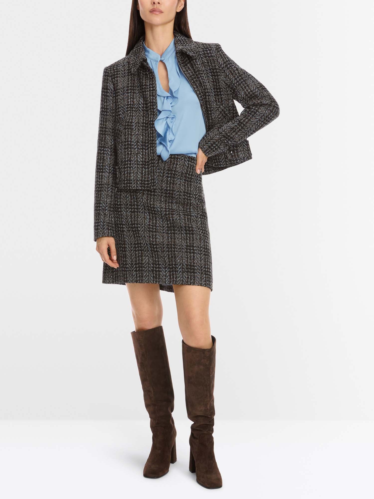 This sixties-style short skirt is an uncomplicated basic for trendy looks. This garment has an inner waistband and a subtle A-line shape. It has a seam zip at the back. The fabric is made from a material blend with cotton. The stretchy lining ensures a harmonious contour and has an excellent rise.