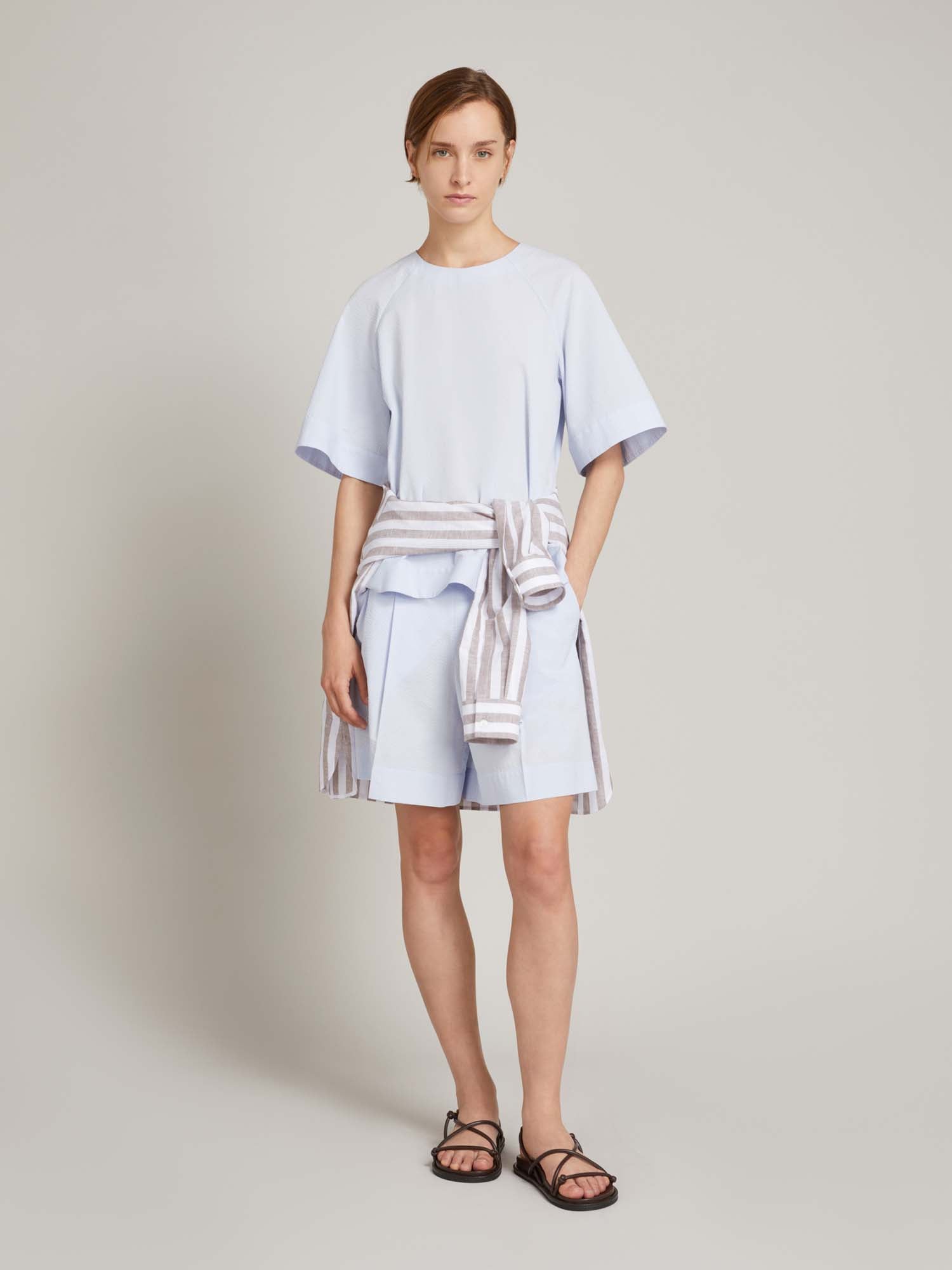 These longer-length shorts from MM by Max Mara are made of 100% cotton. They feature a back elastic waist, front slant pockets, and a hidden side-zip closure.