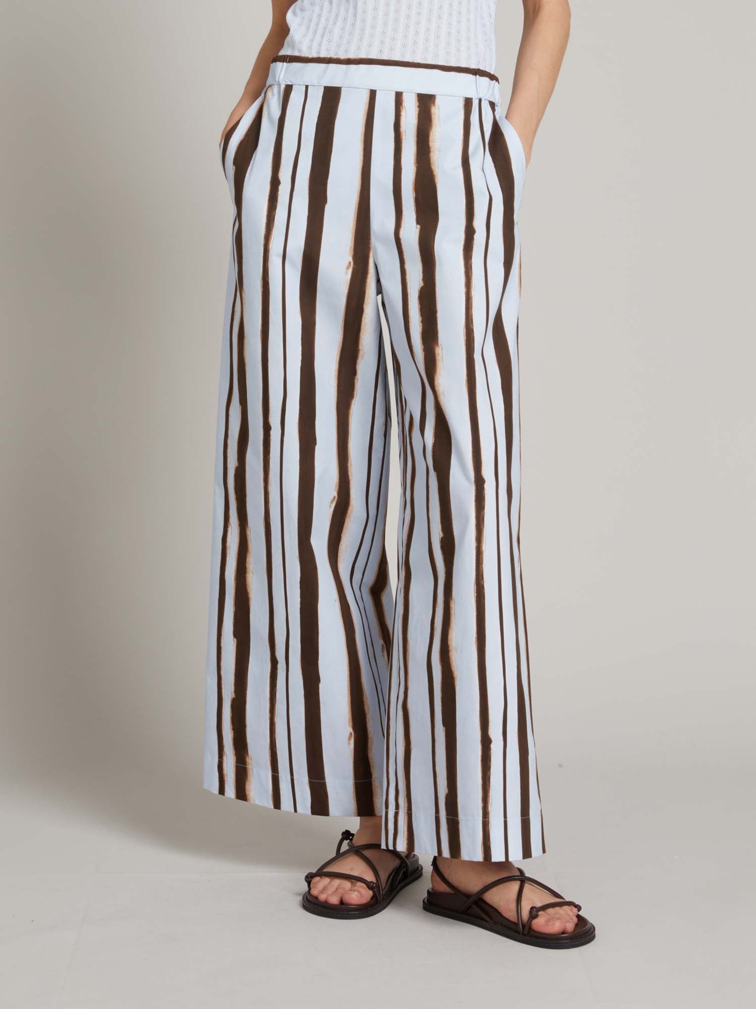 Max Mara Pelota striped trousers in a wide-leg silhouette with all-over signature print. Fluid drape and elongating lines bring a refined, modern finish.