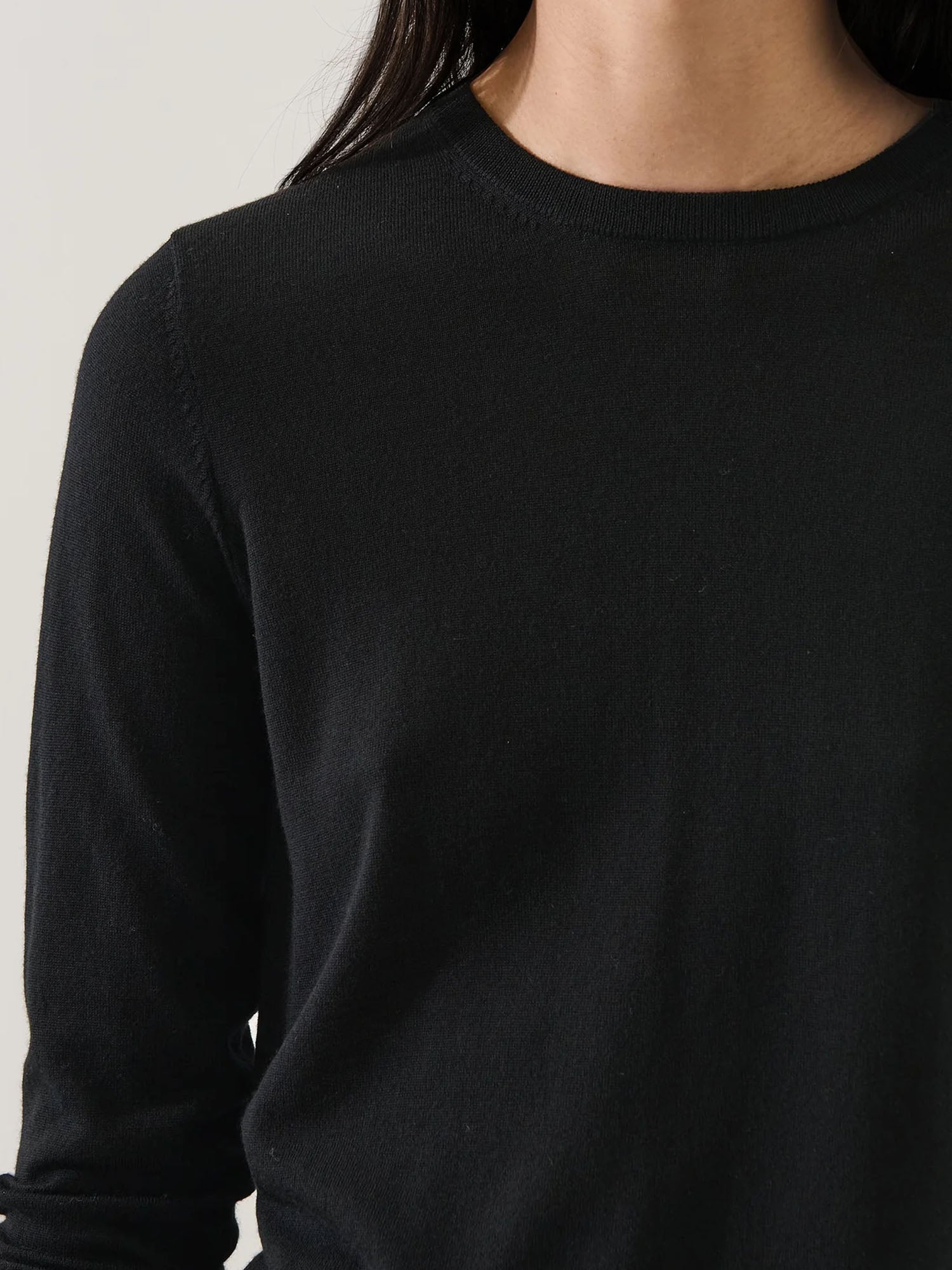 This luxury crew neck is knit in extra-fine 16 gauge merino yarn. This wardrobe staple is cut in a classic fit with ribbed hem and cuffs, is soft to the touch and exemplifies elegance.