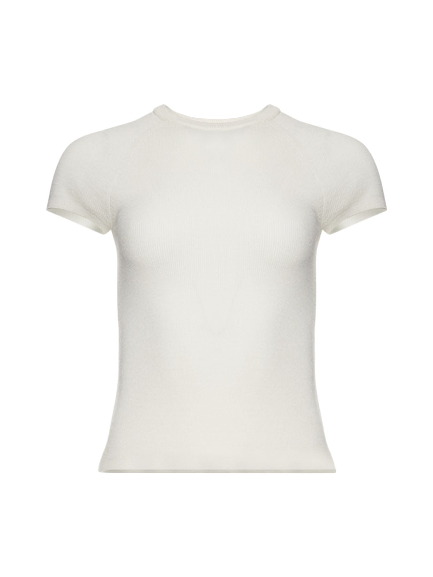 Merino Rib Cap Sleeve Crewneck T-Shirt.