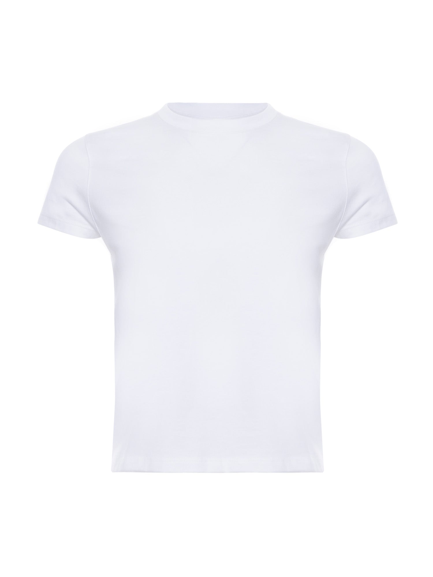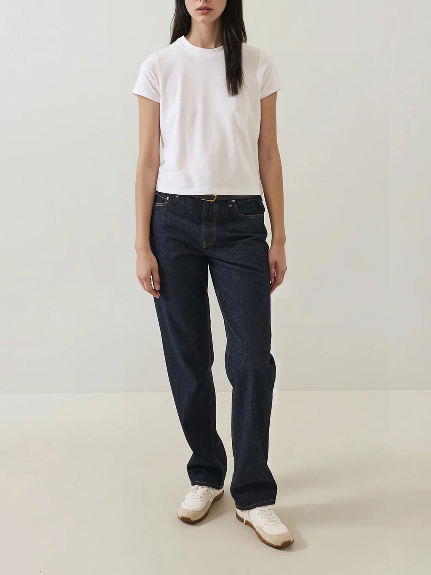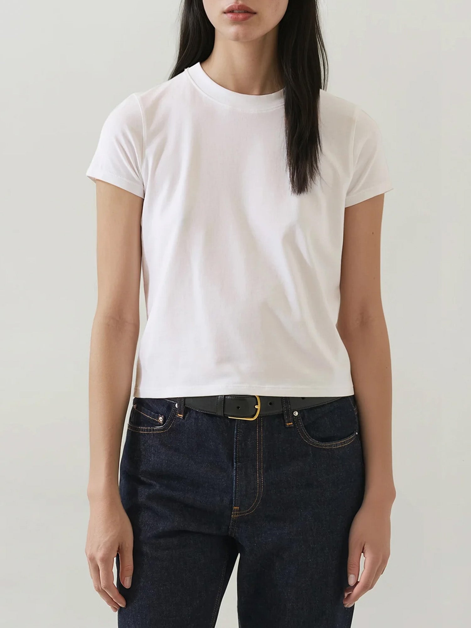 Patrick Assaraf's new baby t-shirt is cut from iconic Peruvian pima cotton stretch jersey and designed in a slightly cropped slim fit. This is the ideal t-shirt to wear with high-rise denim or trousers and is extremely soft and comfortable.