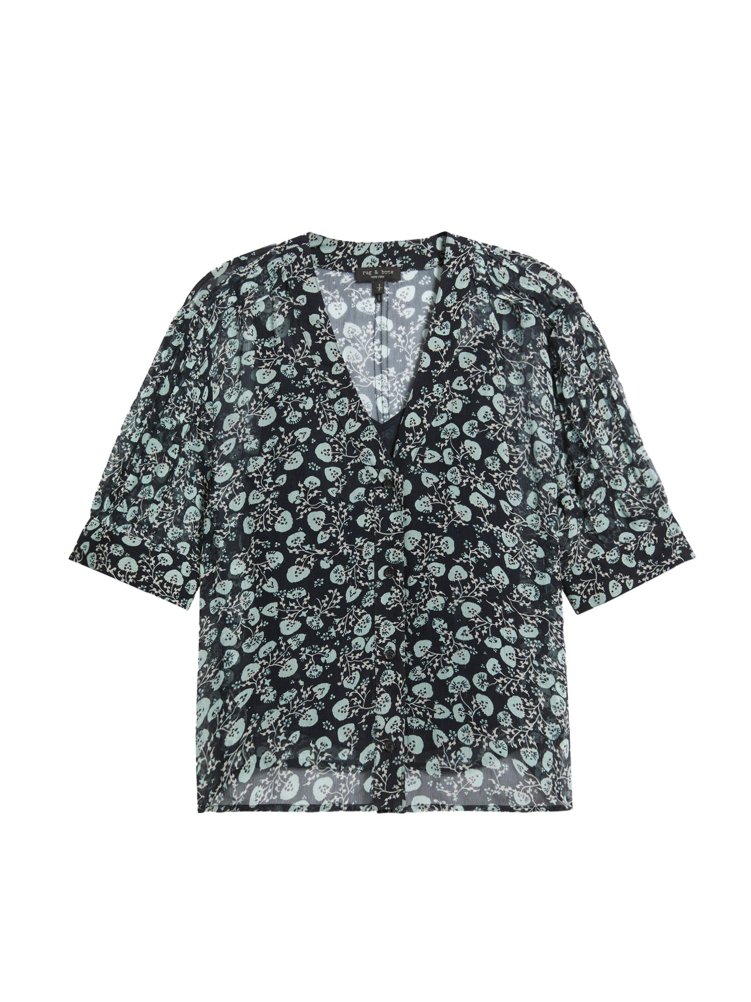 The Taylor sheer shirt from Rag & Bone is designed with a floral print and short puff sleeves.