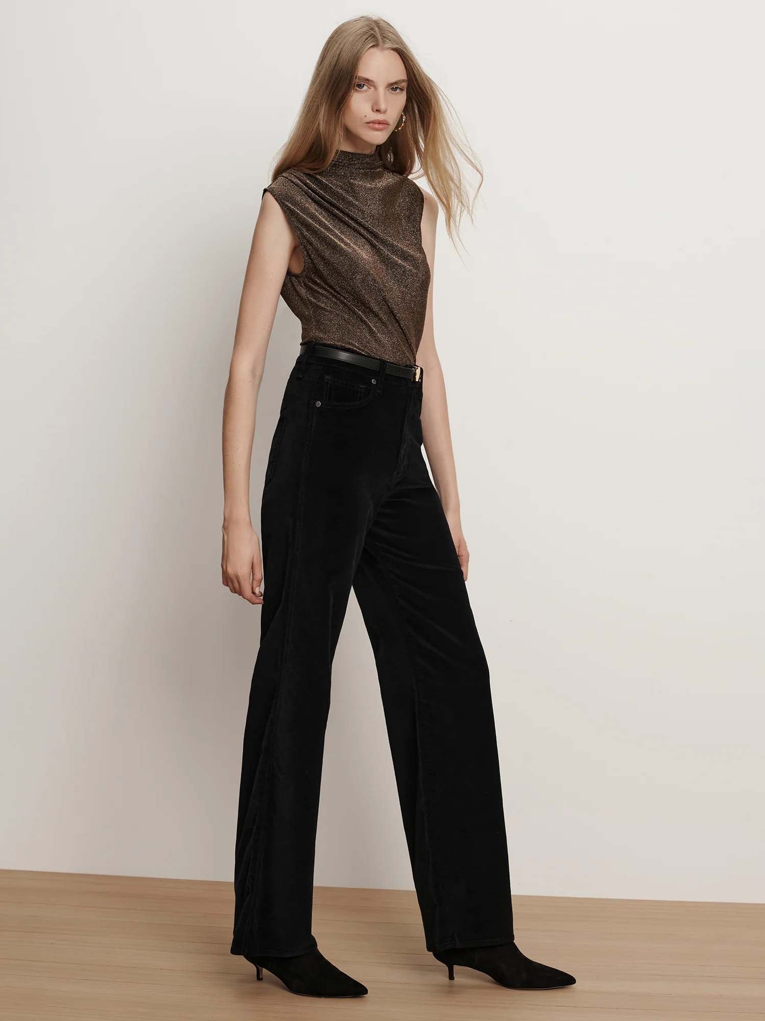 The Taylor you know and love—now in a chic new fabrication. Crafted from stretch black velvet, this high-rise, wide-leg silhouette is a VB favourite. The versatile full-length pairs well with flats and heels, making it perfect for everyday wear or dressing up.