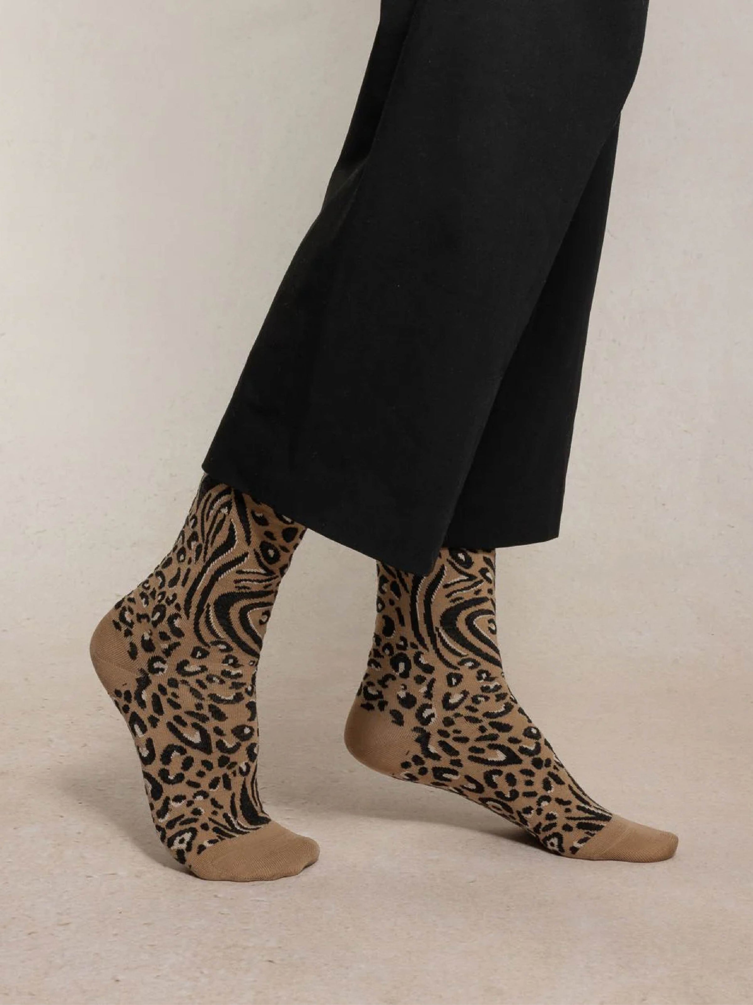 Leopard Socks: 78% Wool, 20% Cotton, 2% Elastane