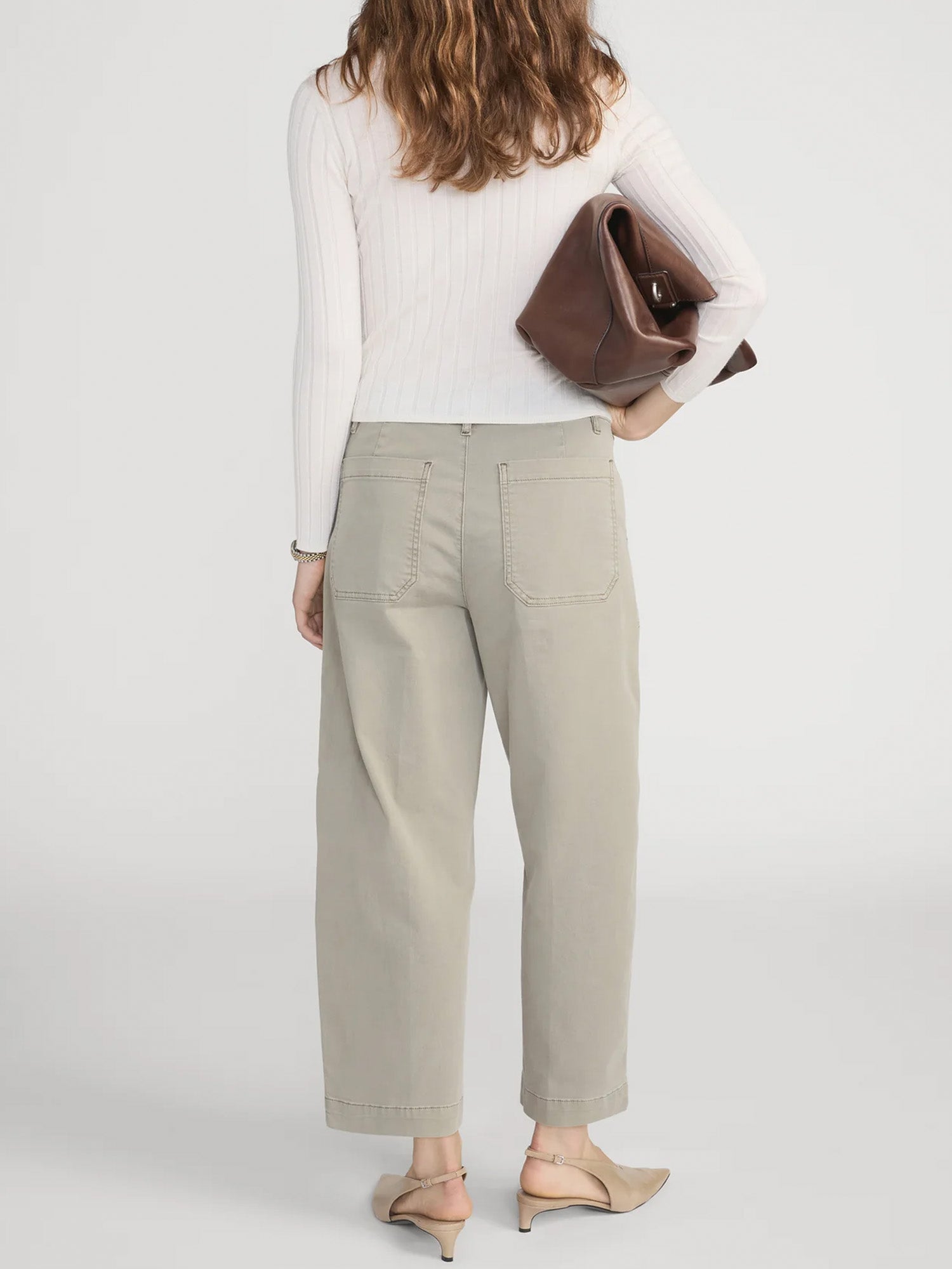 Functional, flattering, and endlessly versatile. This high-rise cropped trouser is crafted in stretch cotton twill and finished with utility pocket detailing.