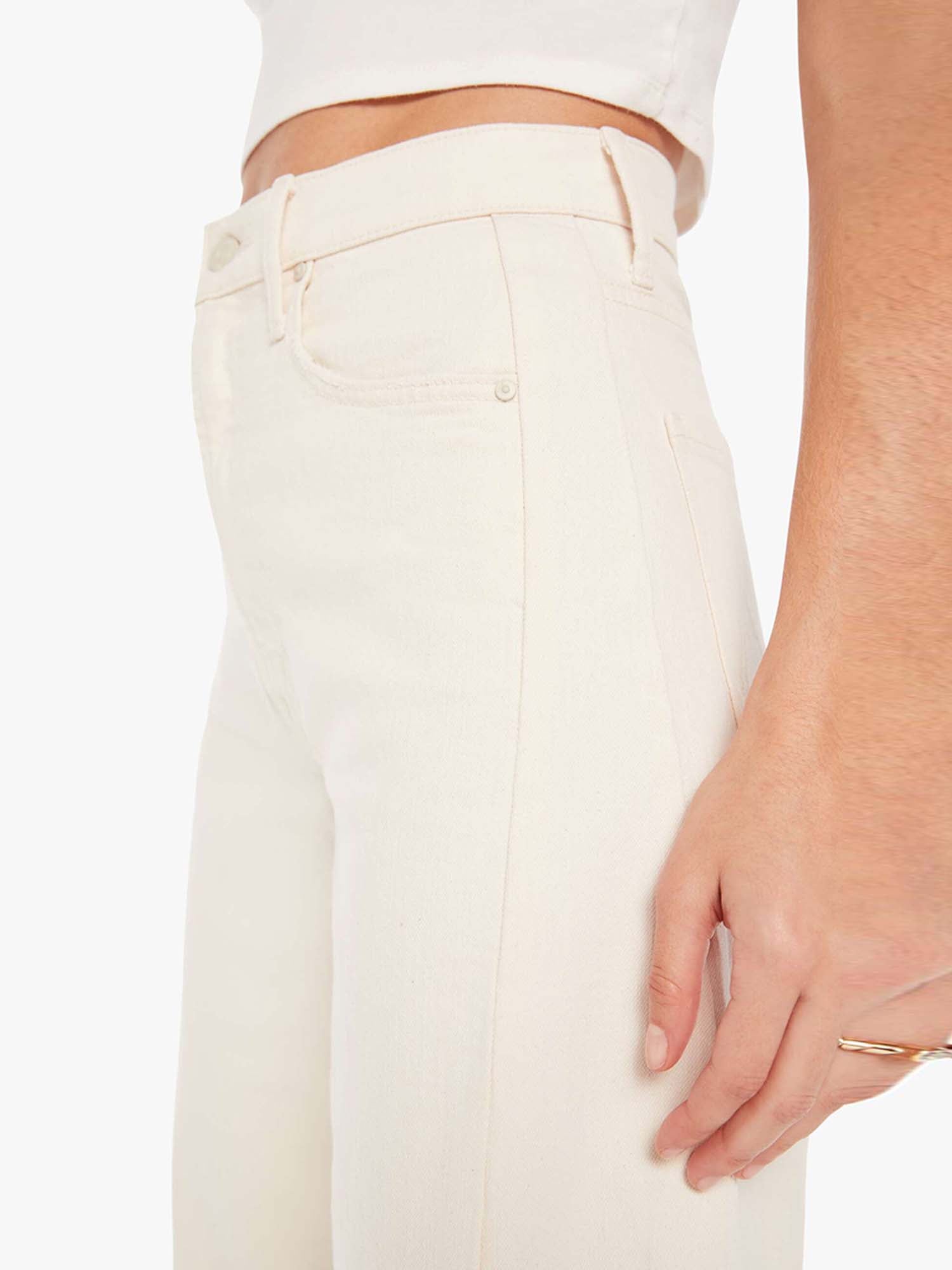 An expanded collection of foundational pieces designed for All Day, Every Day. Created for versatility, layering, and year-round wearability, these are the pieces you will never stop reaching for. A super high-waisted jean with a wide, curved leg, a 29" inseam, and a clean hem. Cut from a SUPERIOR cotton blend with a touch of stretch, Act Natural is a creamy white hue with tonal hardware.