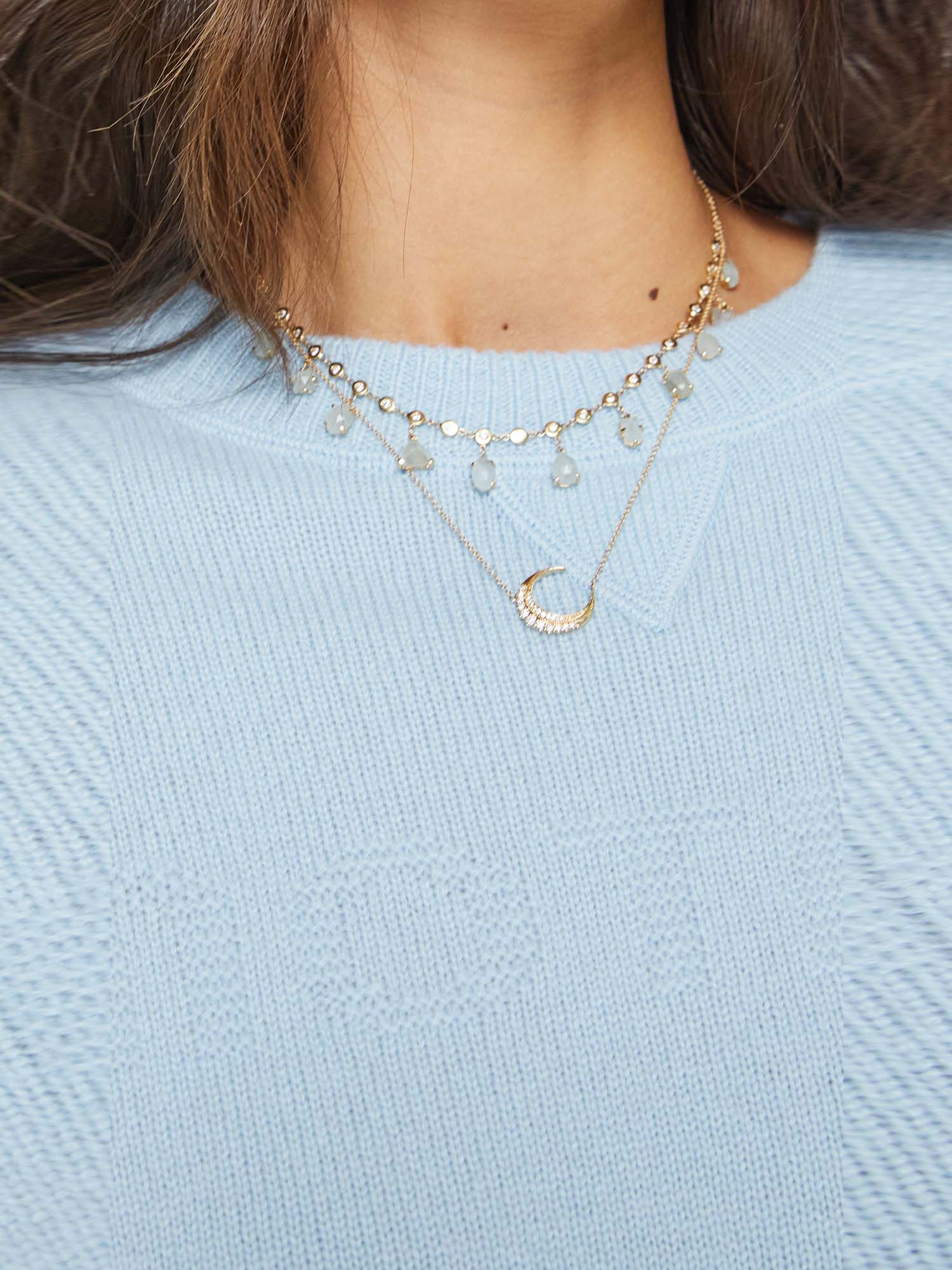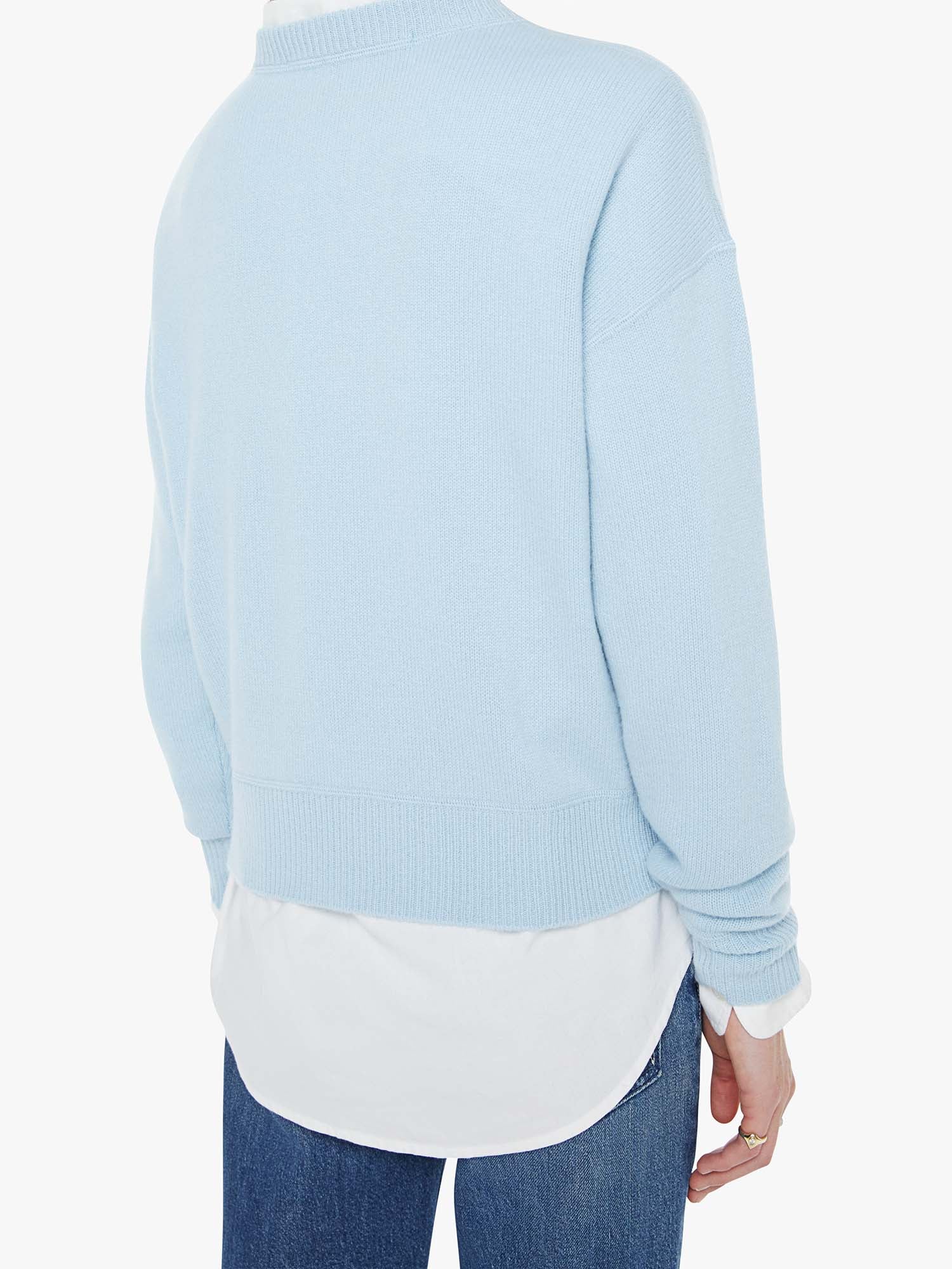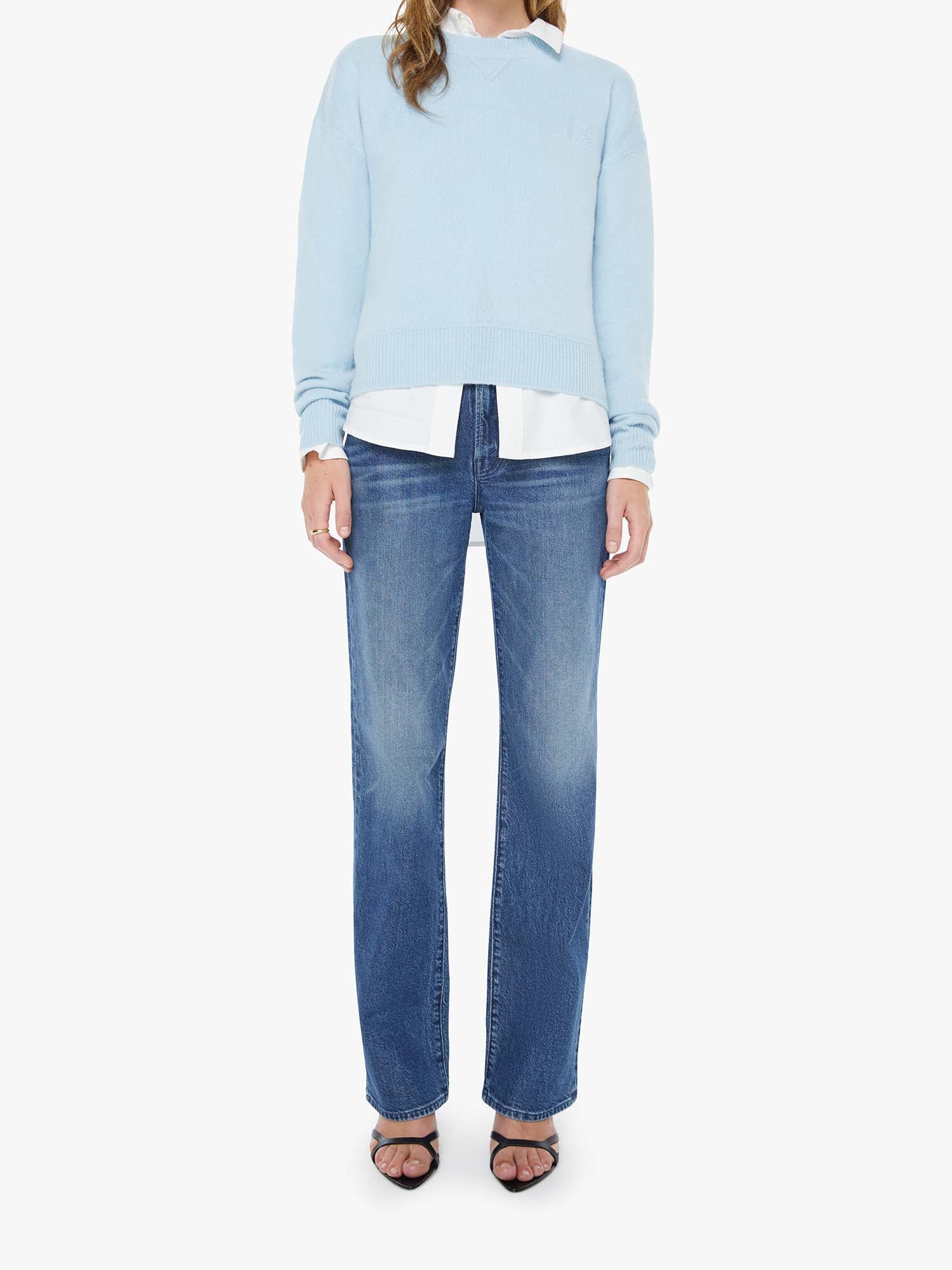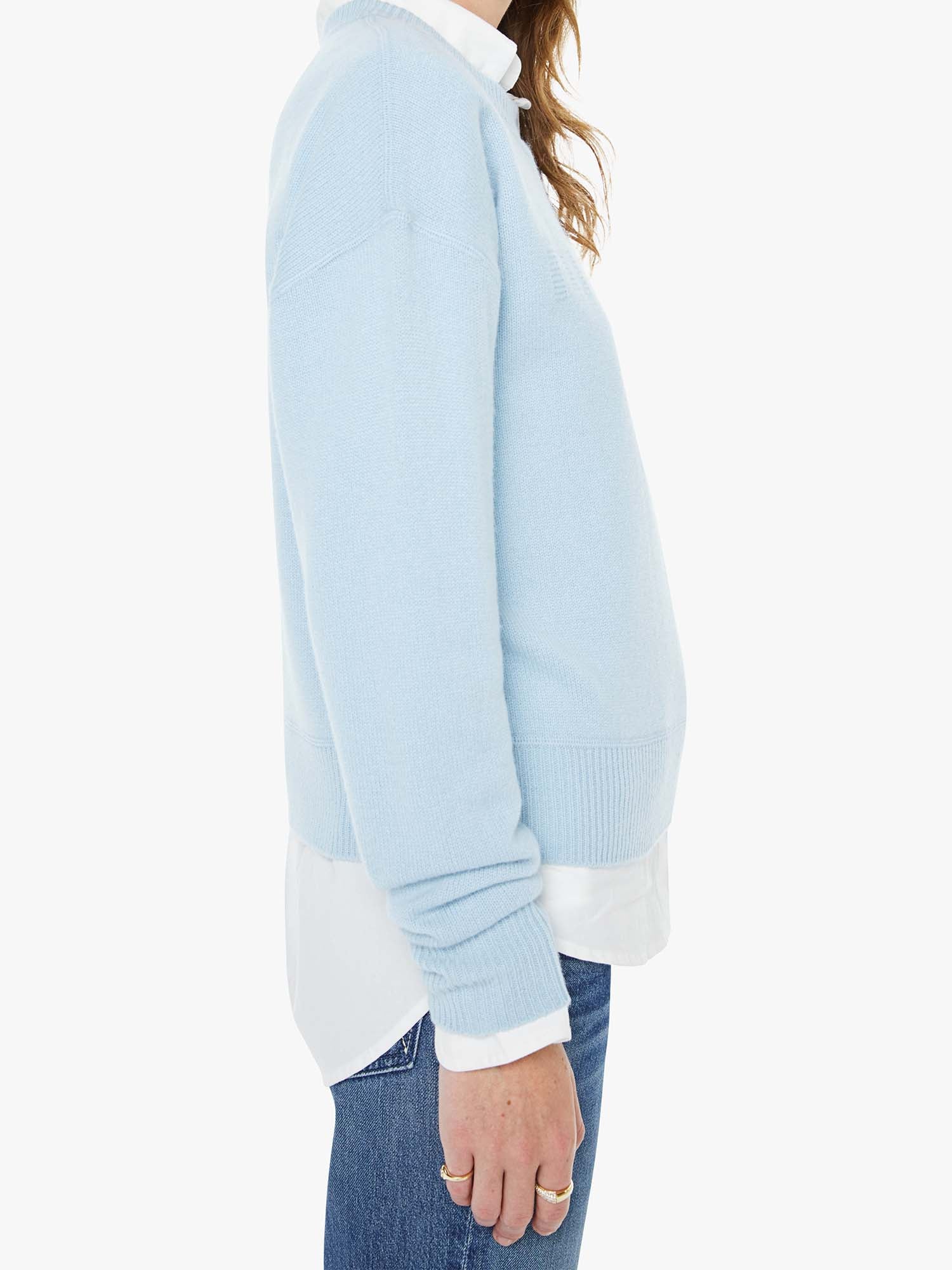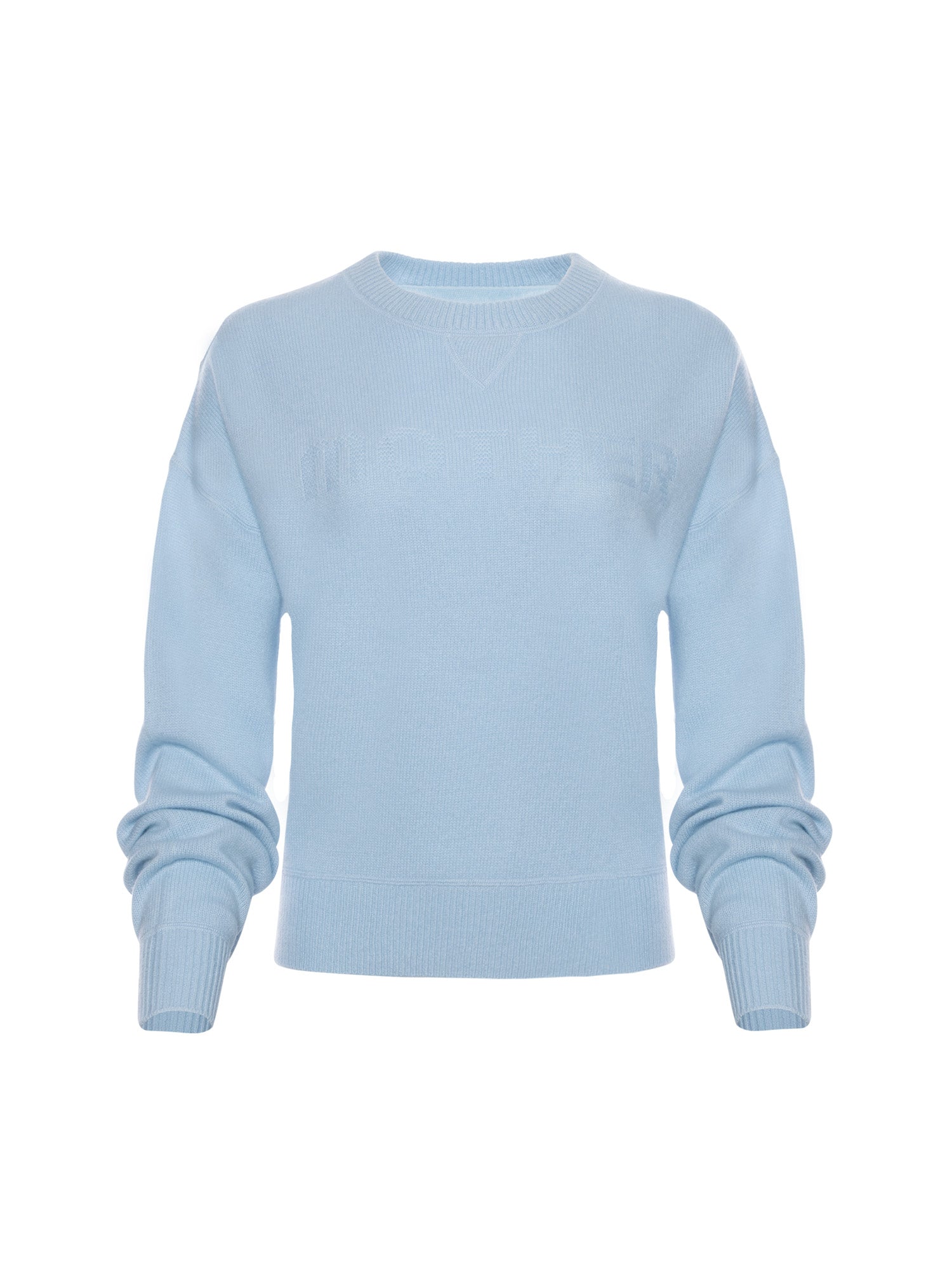 An expanded collection of foundational pieces designed for All Day, Every Day. Created for versatility, layering, and year-round wearability, these are the pieces you will never stop reaching for. A crewneck sweater with drop shoulders, ribbed hems and an oversized fit. The Logo Jumper is made from 100% cashmere in light blue with MOTHER's name across the chest.