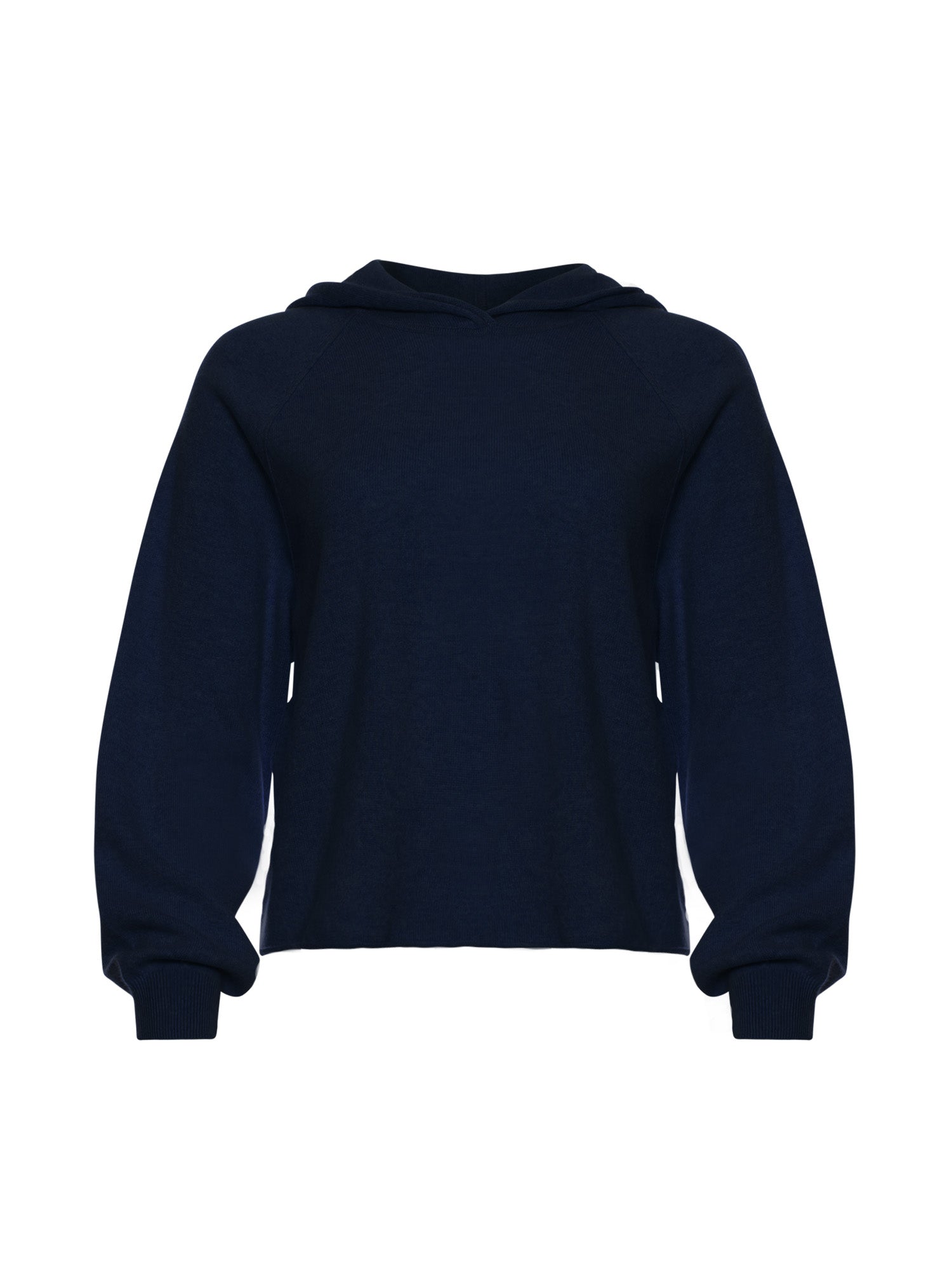 A comfortable and casual V-neck knitted pullover with a hood, crafted in a straight silhouette with long sleeves. Seamlessly knitted as a whole garment for a smooth, refined feel, it is made from 100% GOTS-certified organic cashmere for exceptional softness and natural luxury.