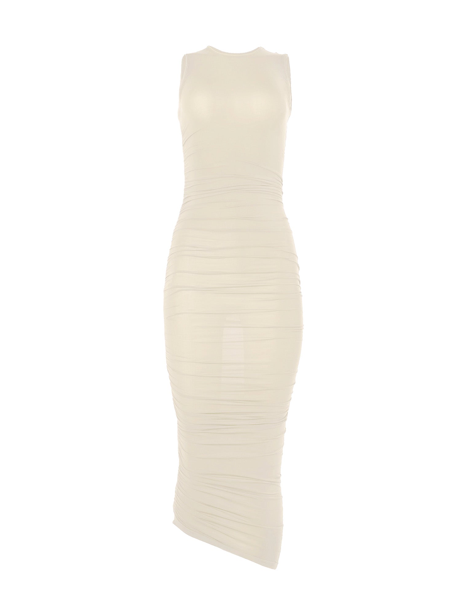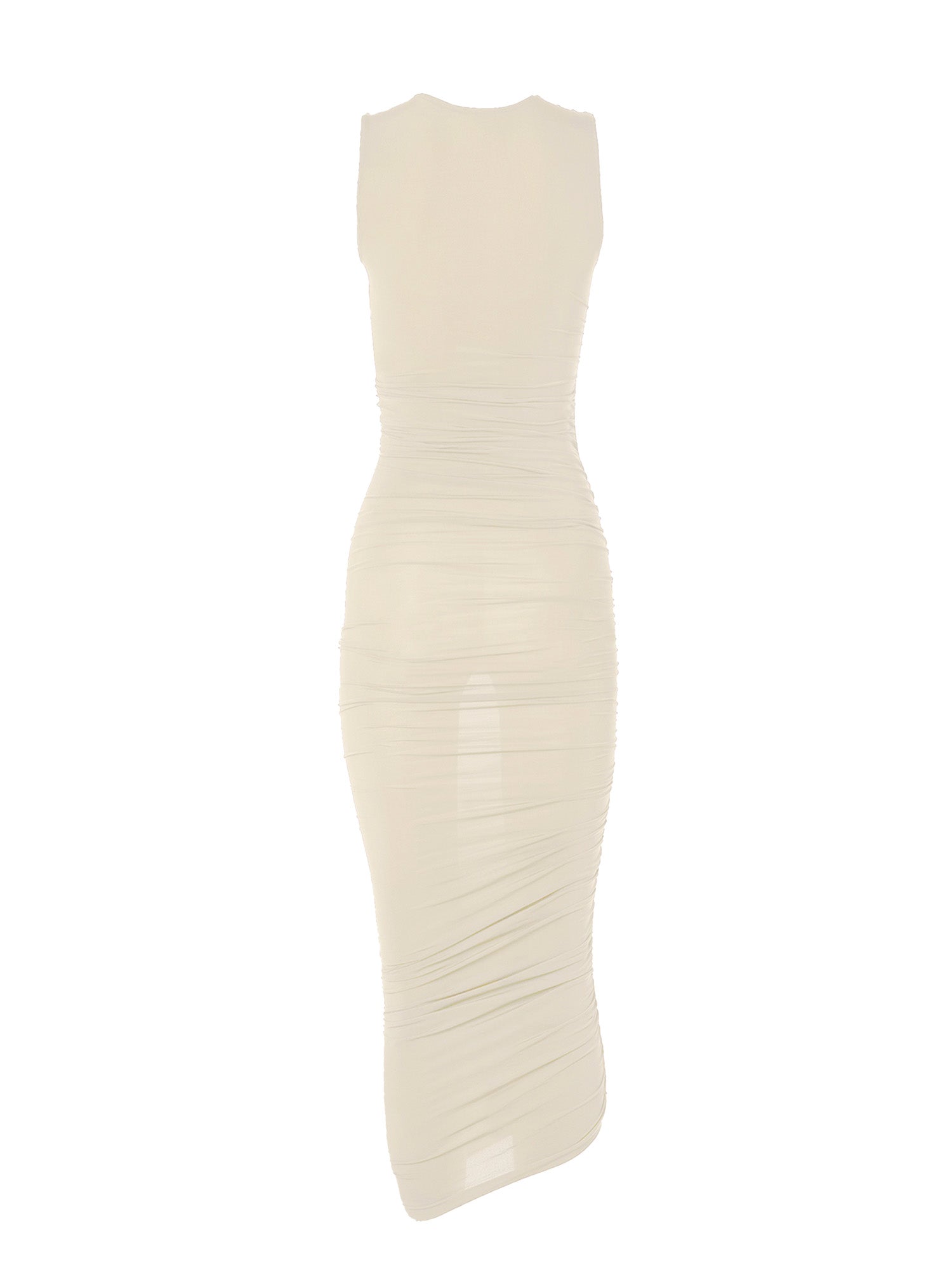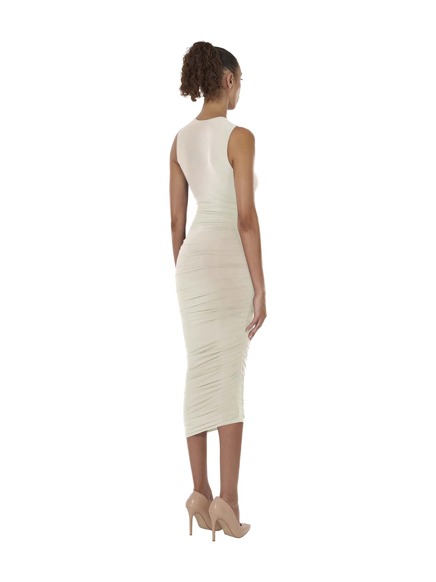 Sheer textures and artful draping are fast becoming Wolford's signatures, and this sleeveless midi dress proves it. It's crafted from the brand's iconic Individual Skin material – lightweight, silky, and subtly luminous – and detailed with knitted-in edges for a seamless finish. The asymmetric draping effect offers versatility, allowing you to adjust the dress length to your preference.
