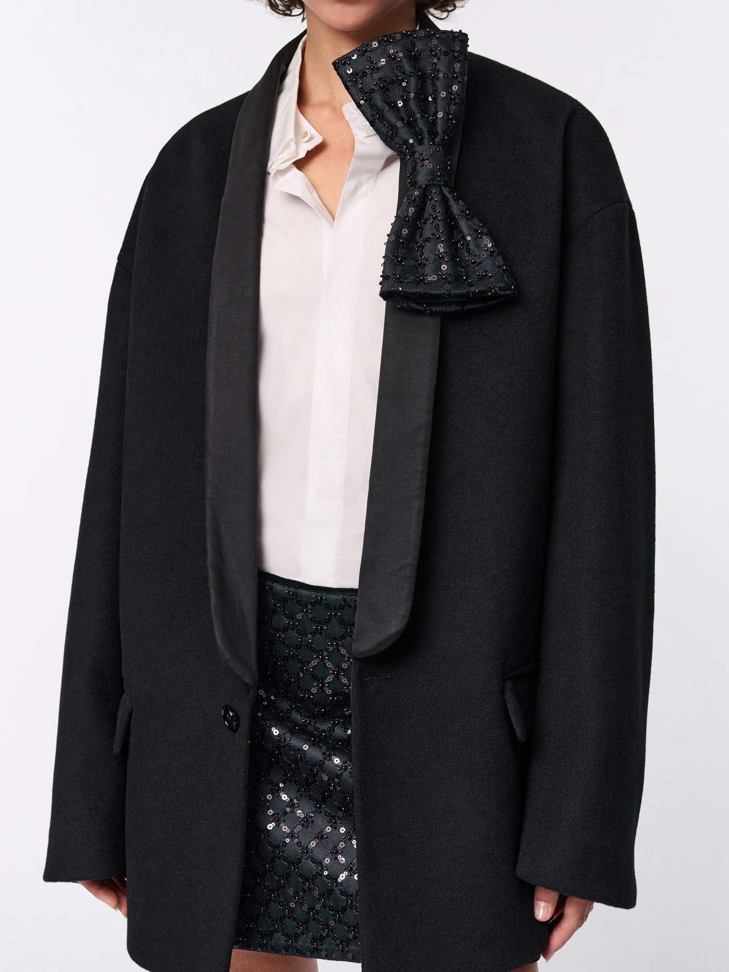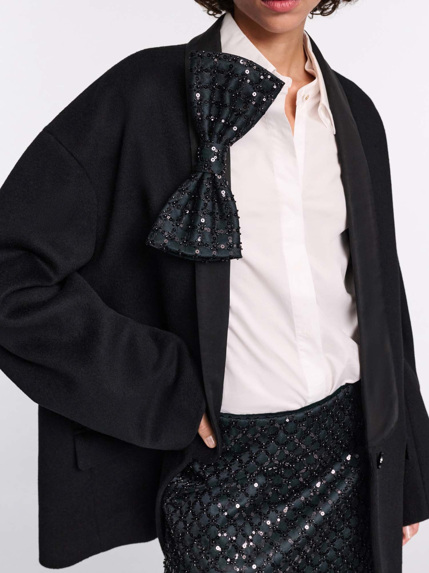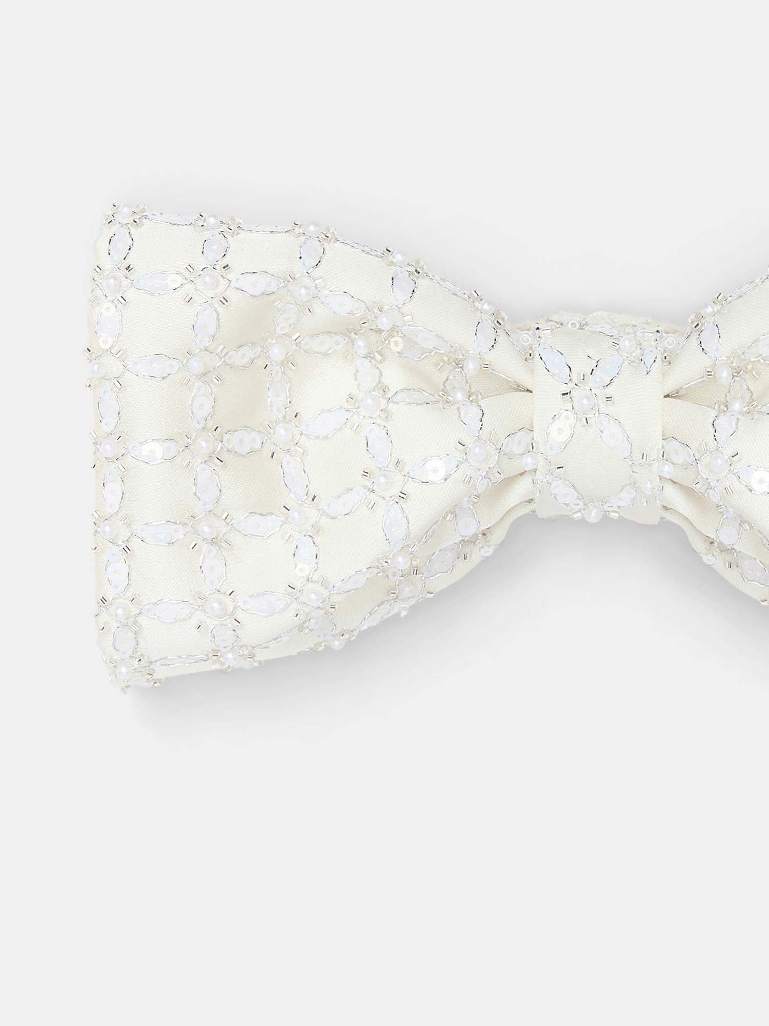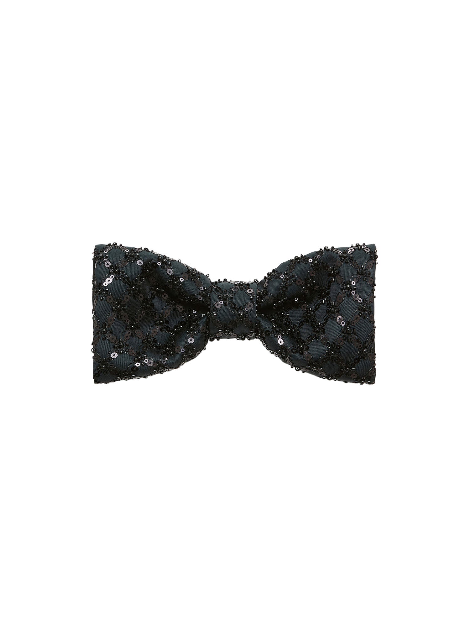 All dressed up: The Duchesse bow brooch is intricately embellished with sequins and has a pin closure.
