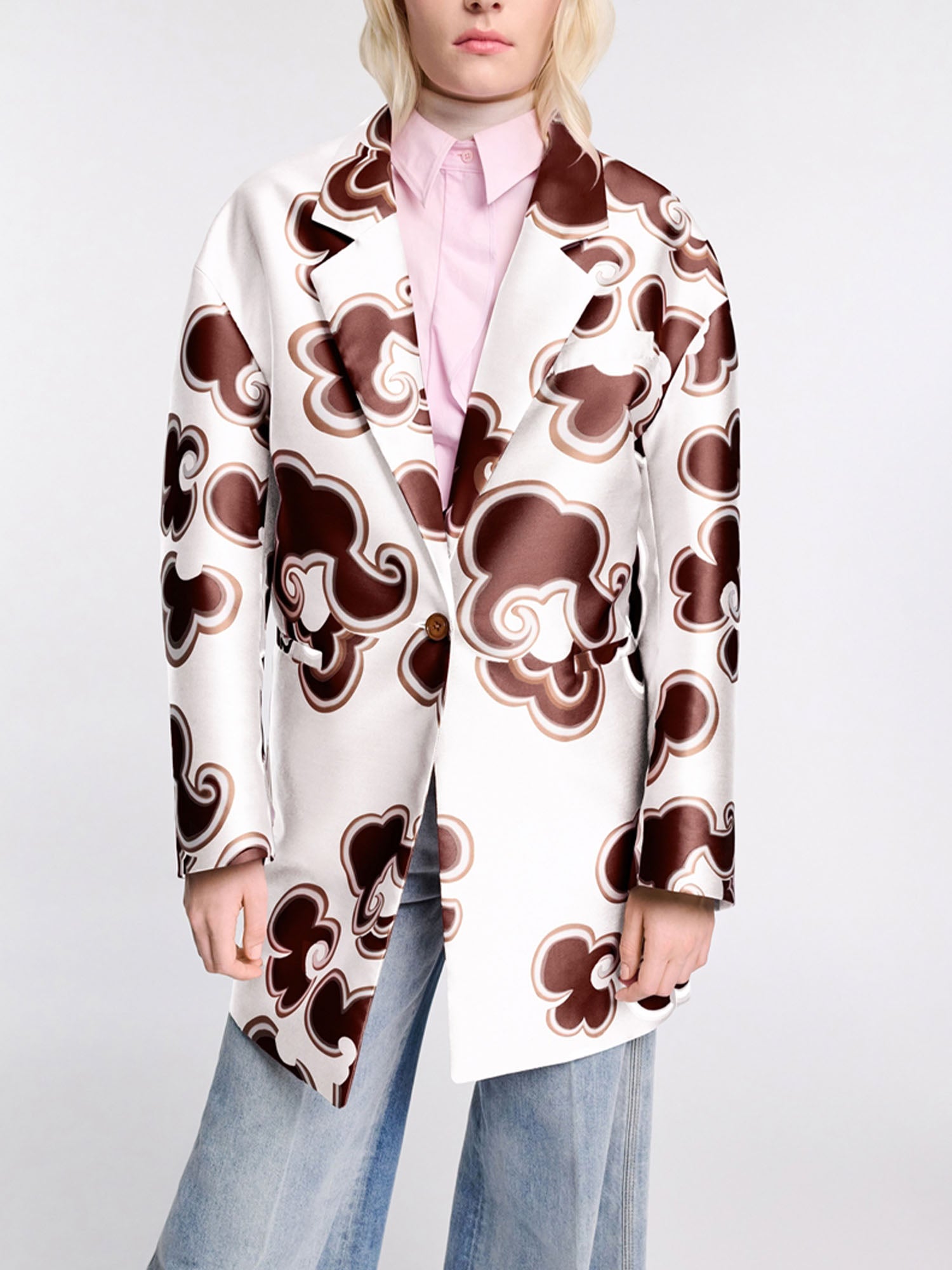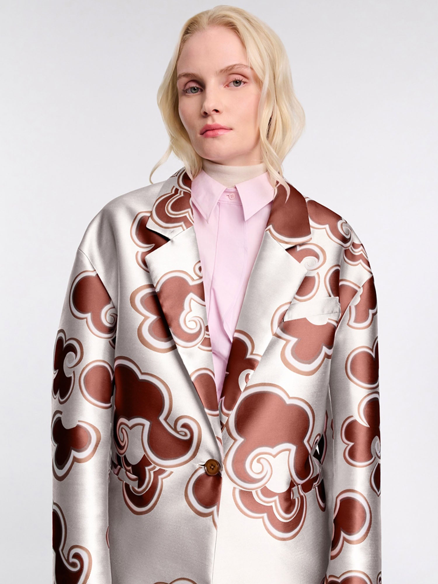 Featuring Dorothee's signature Key Print of the collection, the short coat is made from duchesse twill and has an oversized silhouette.