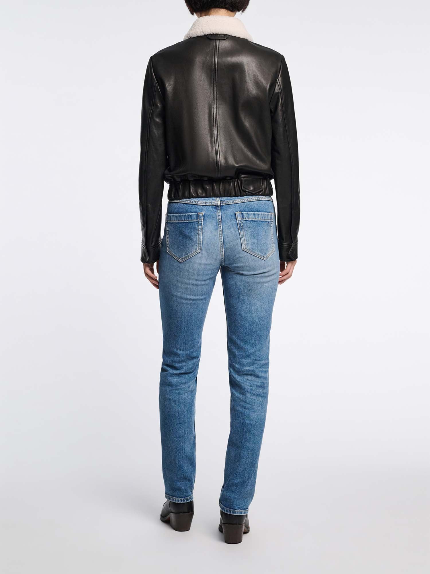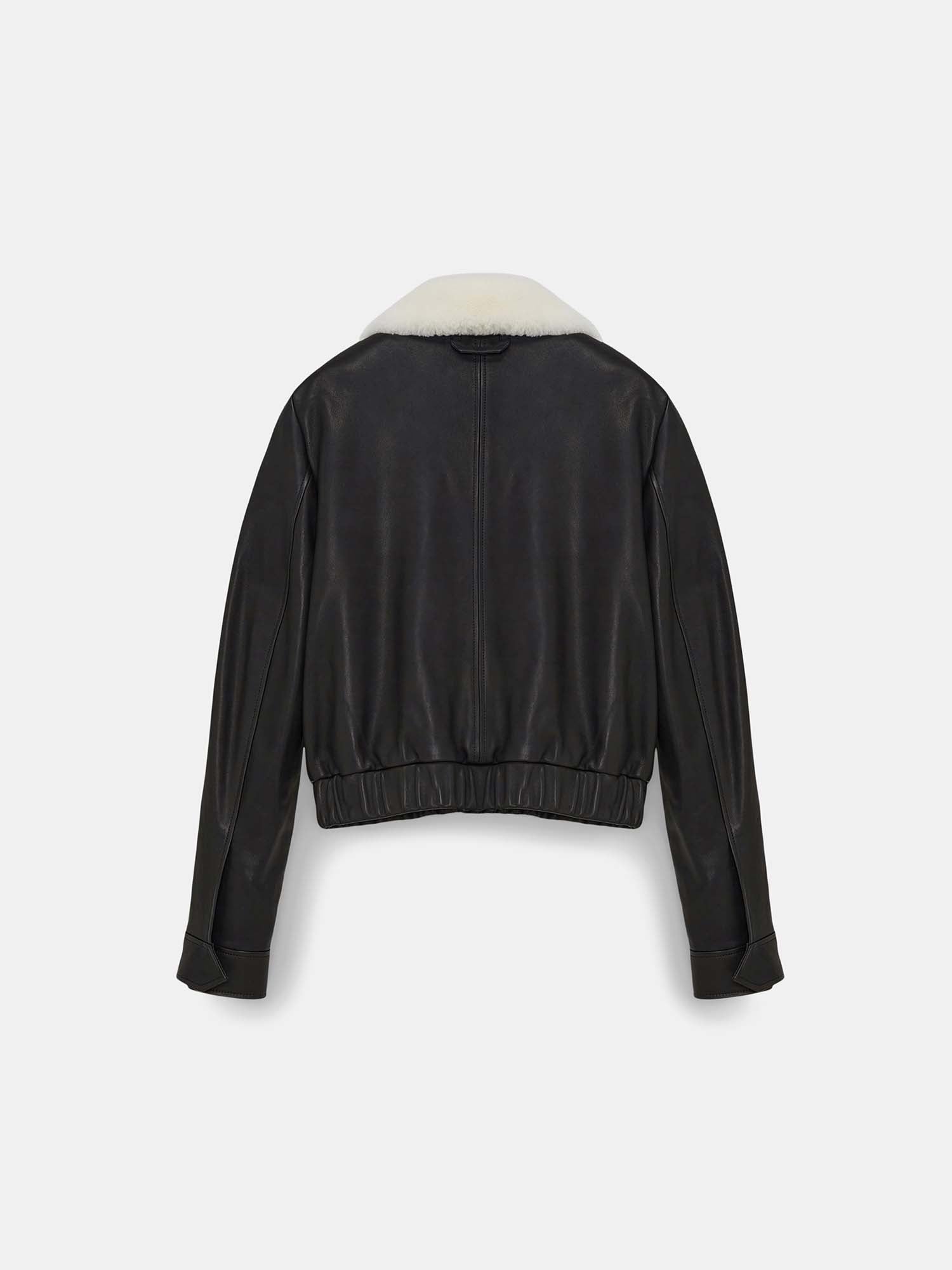 Leather jacket with shearling collar