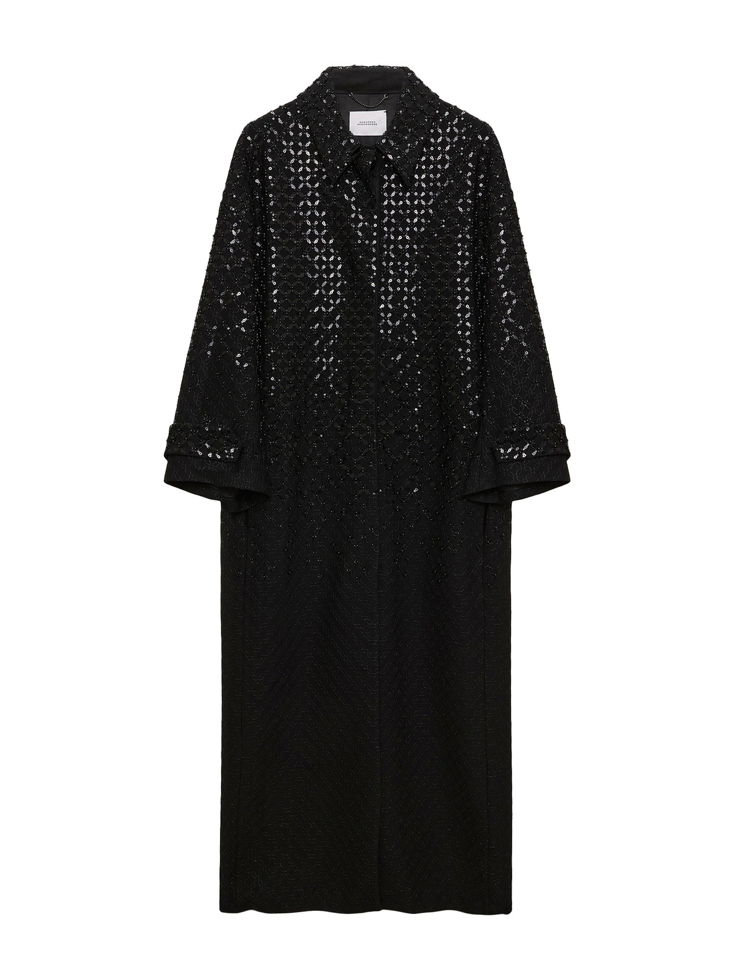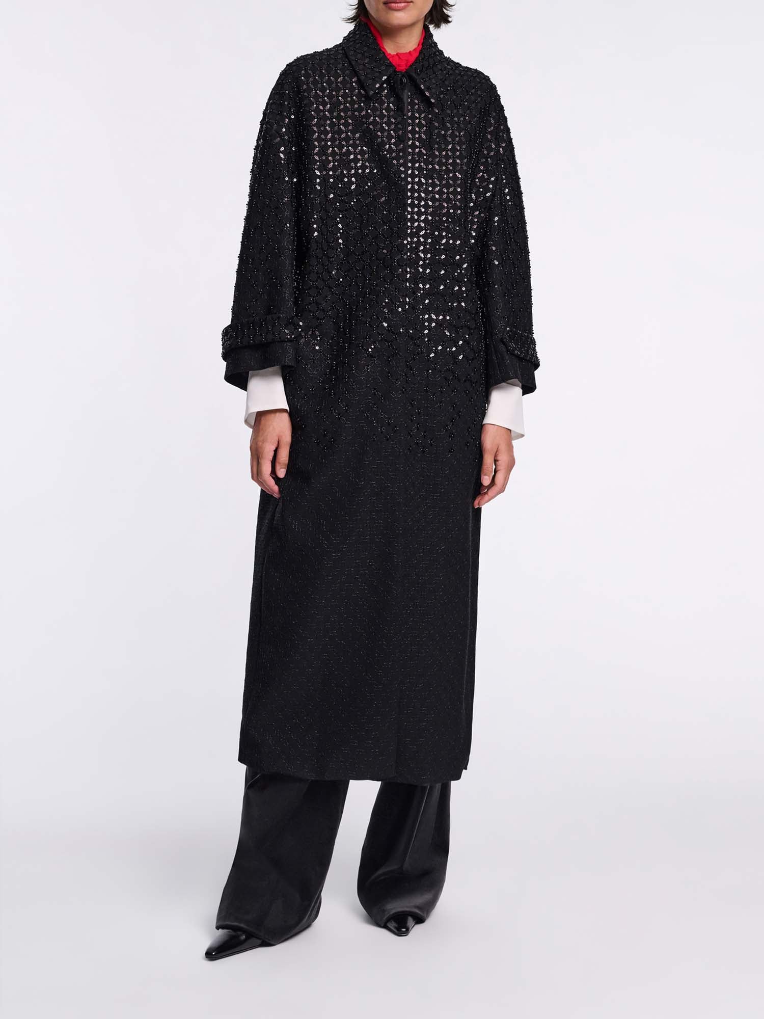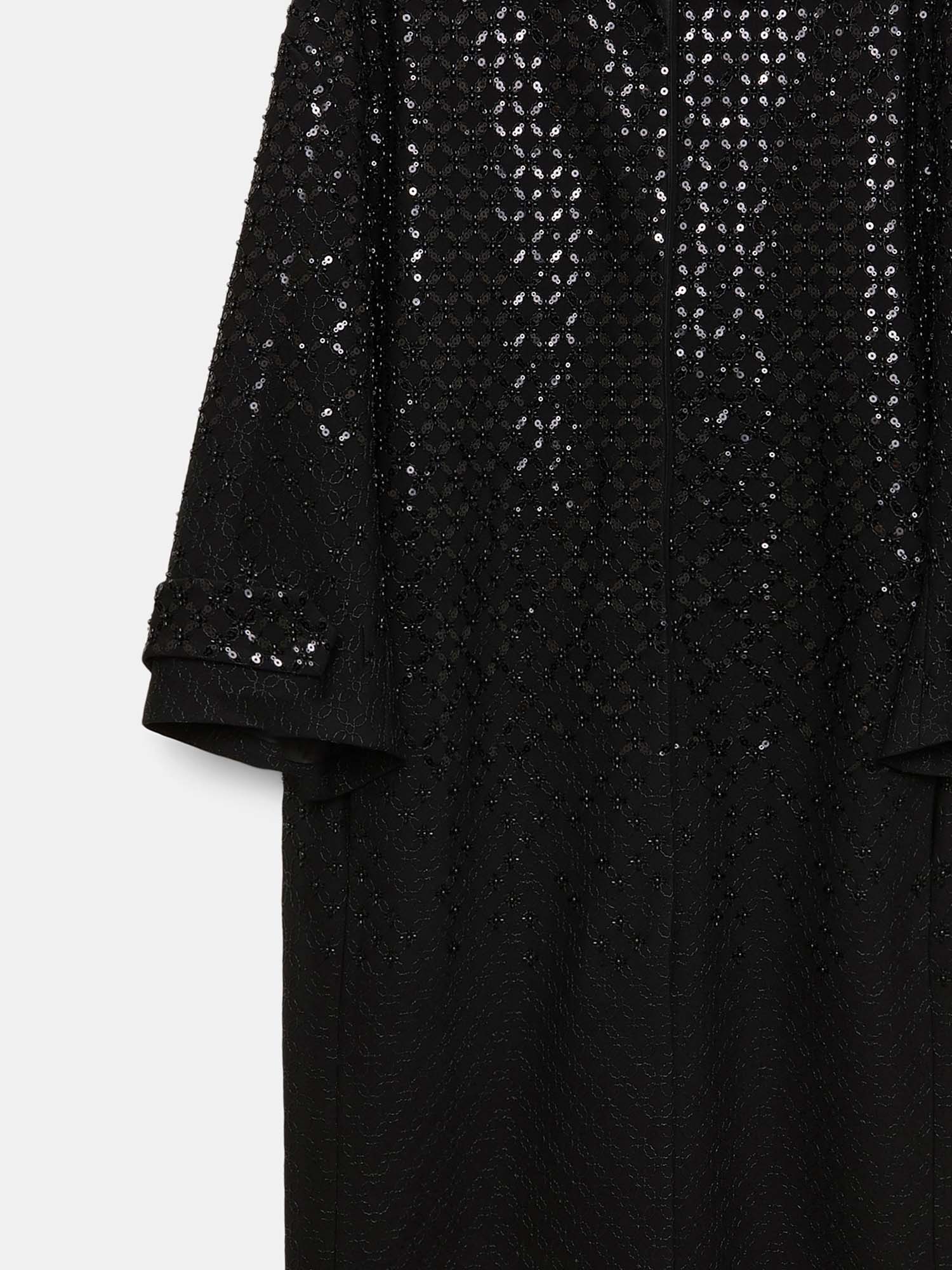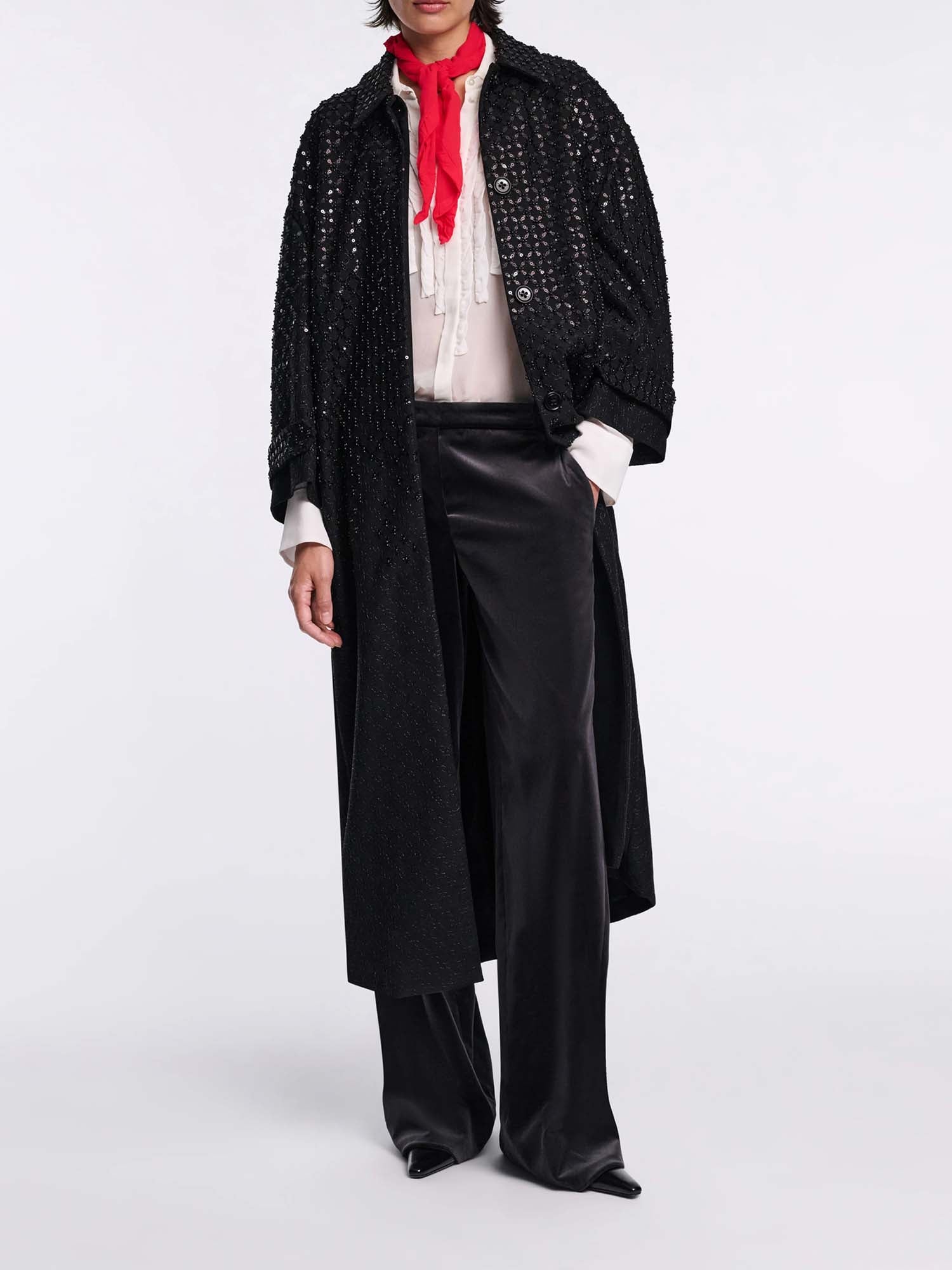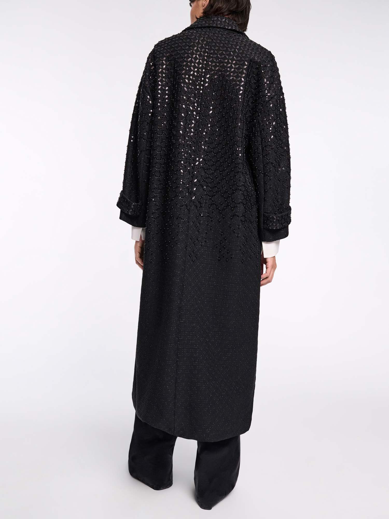 All dressed up - in Punto Milano: The coat is made from Punto Milano and is embellished with floral sequin patterning. The slightly oversized silhouette has hidden button closures.