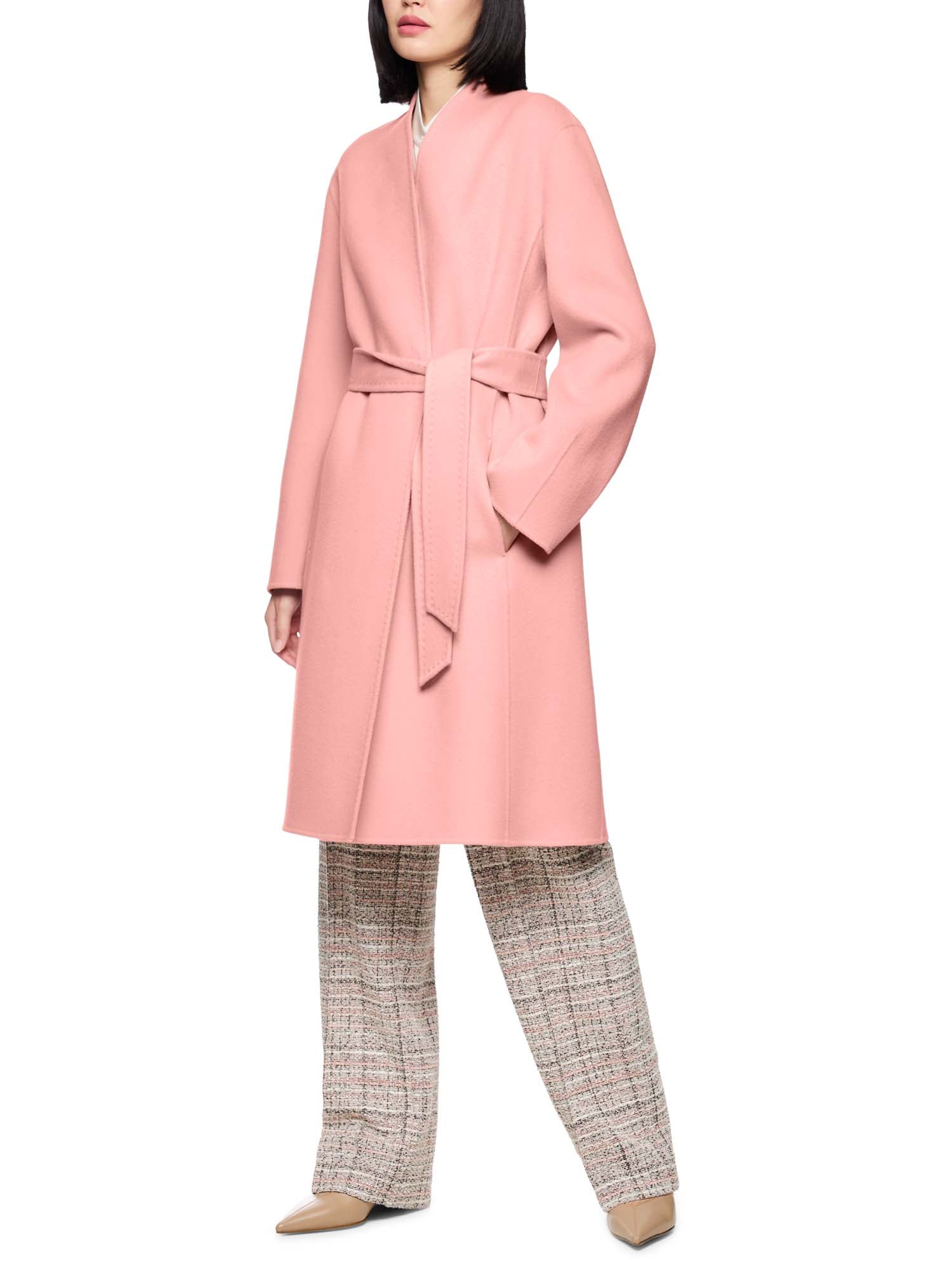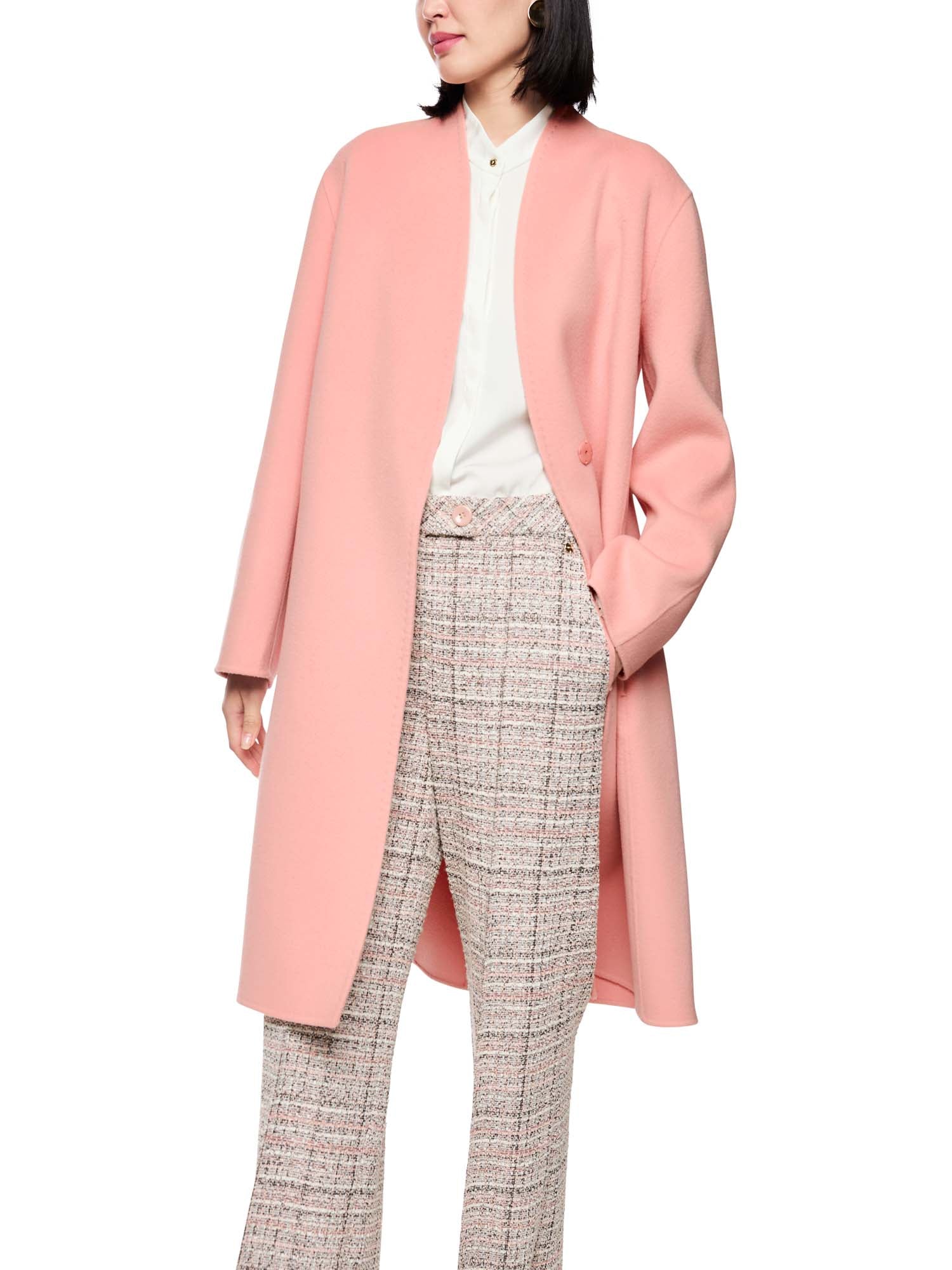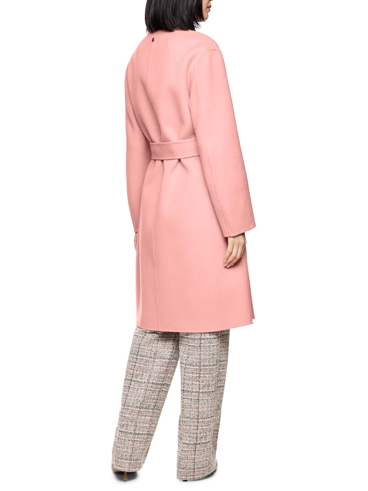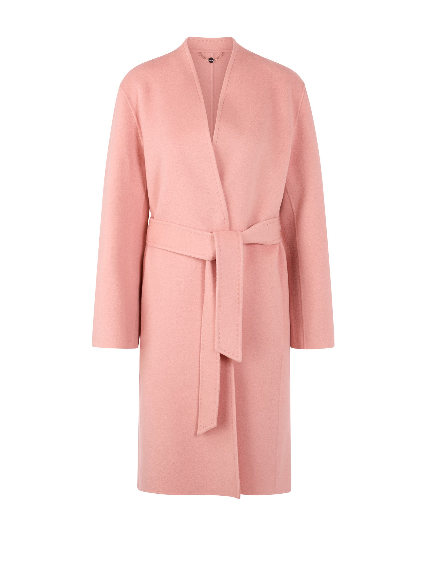 Elegant coat made of pure wool. This coat is made from high-quality pure wool and features a clear silhouette and a knee-length cut. A tie belt at the waist emphasises the feminine silhouette, while the discreet slit pockets in the panel seam ensure functionality and a clean look. The coat fastens with a concealed press stud. Its fine wool quality gives this coat a soft feel and makes it a stylish companion for the transitional season.