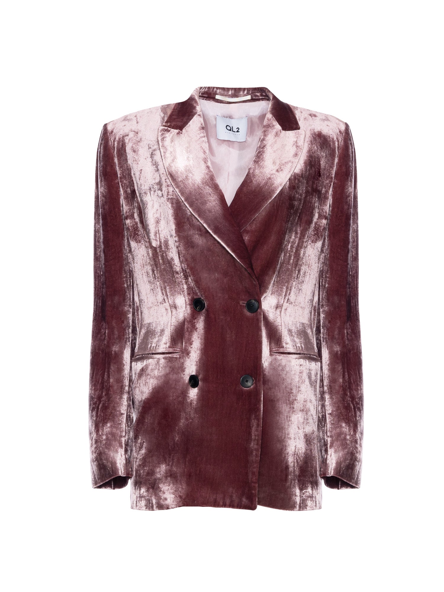 Hip-Length Double-Breasted Slim-Fit Velvet Jacket.