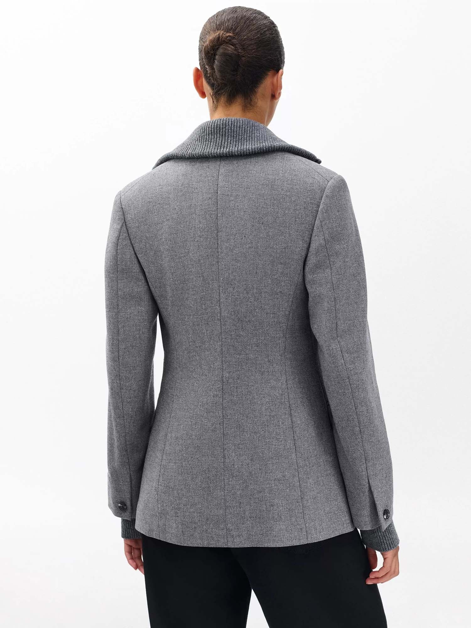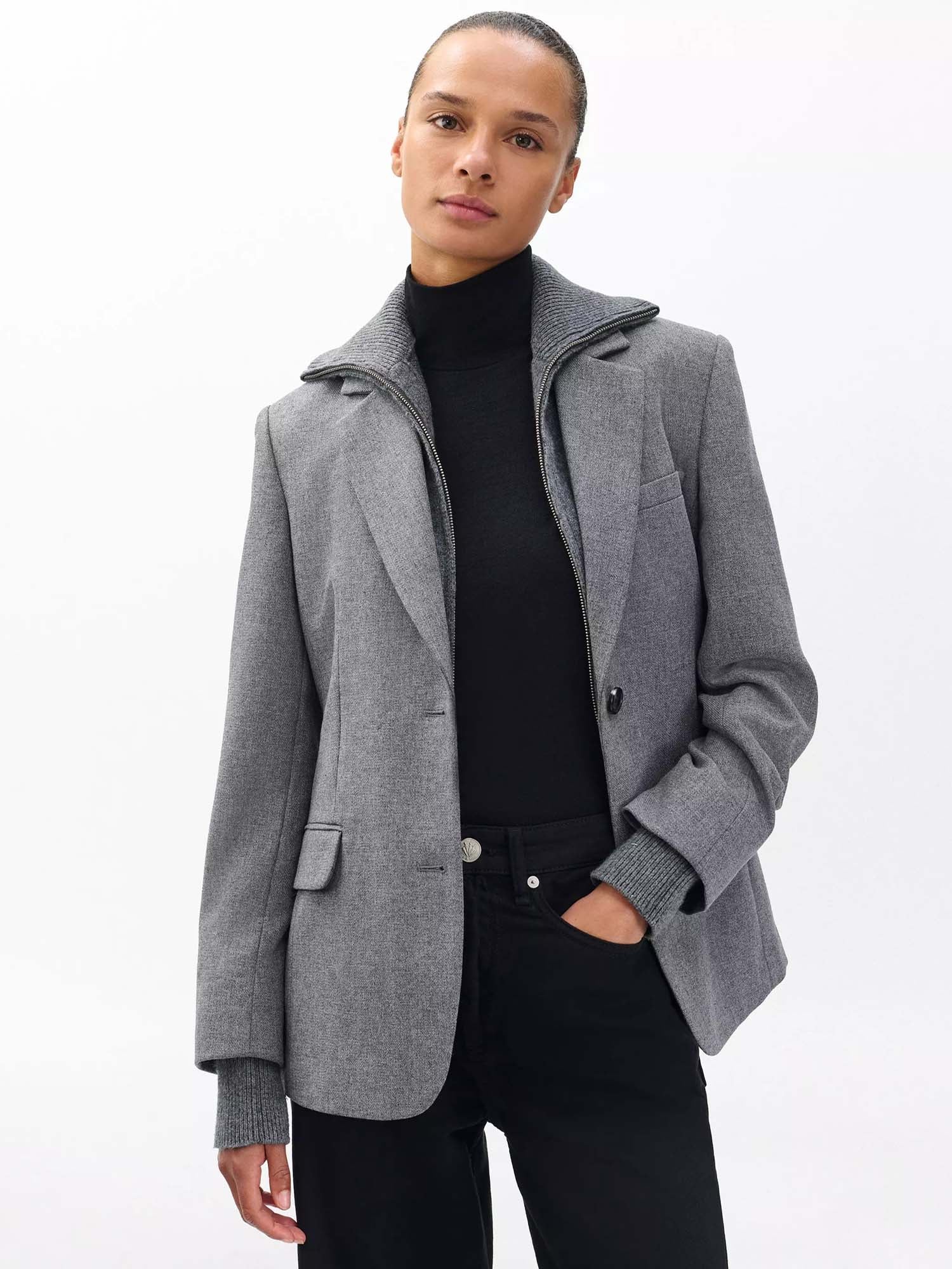 Suit yourself. This two-button blazer has a cinched waist and falls below the hip. Crafted from a wool blend with a satin lining, it pairs a soft feel with a structured look. An accompanying sweater inlay can be zipped in or out to whenever you want to create a cool layered look.